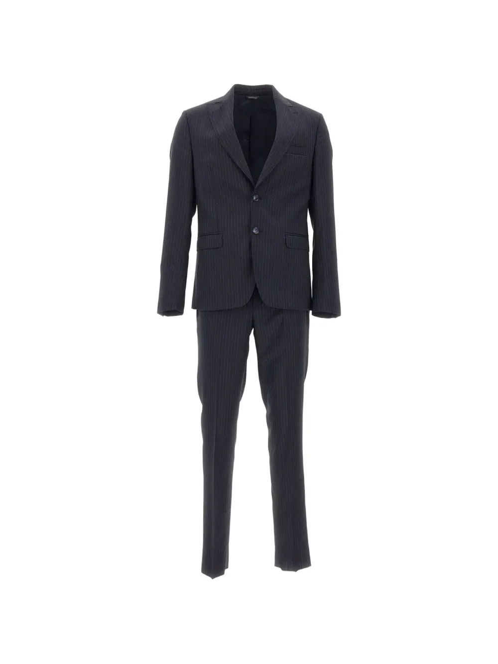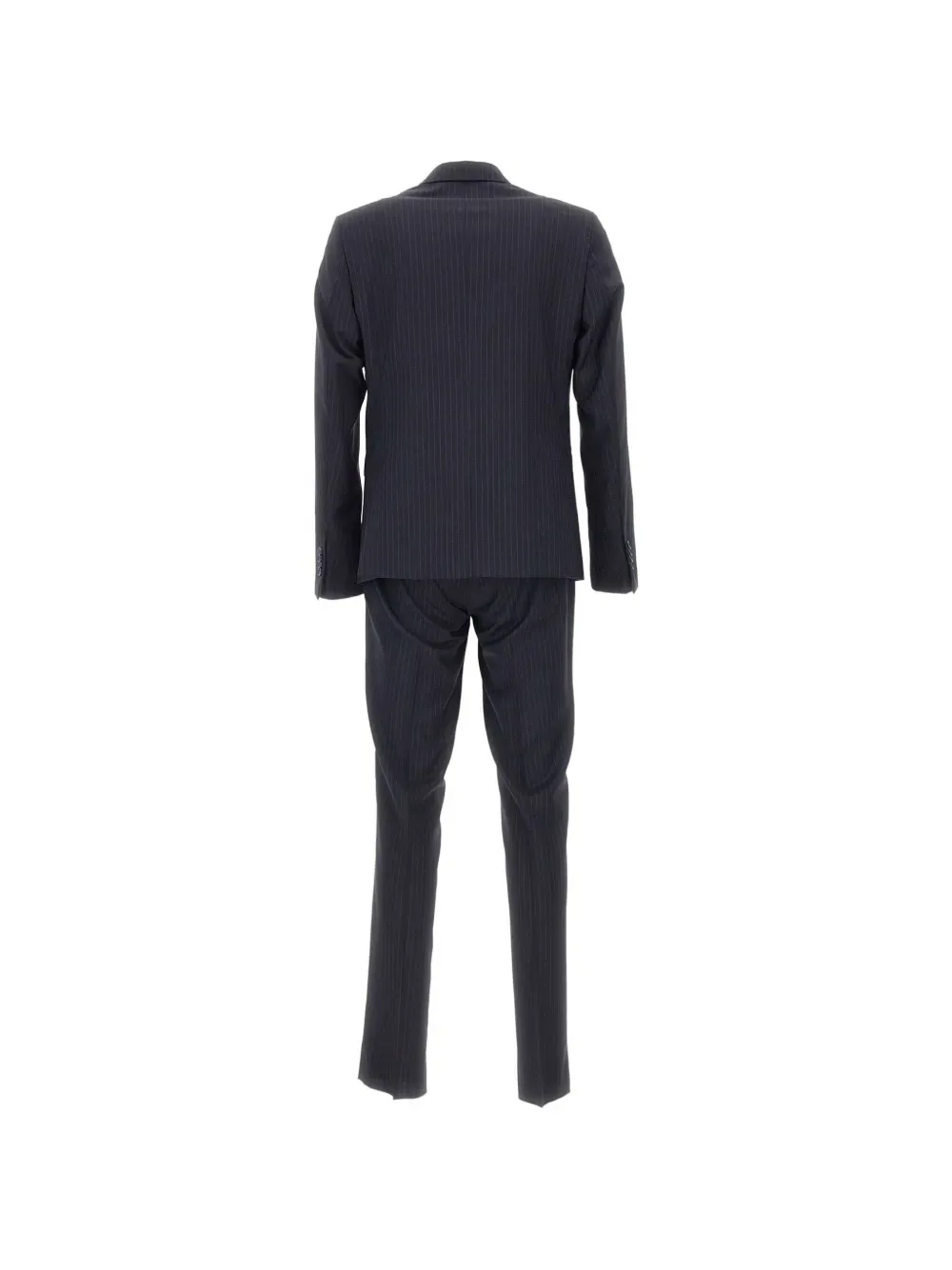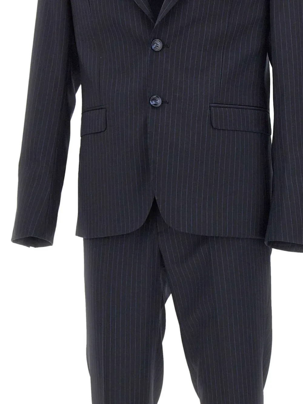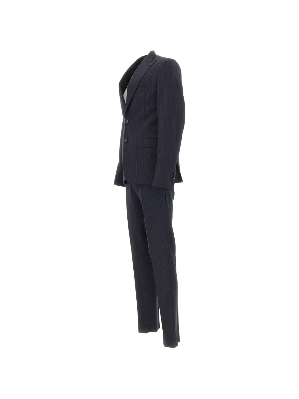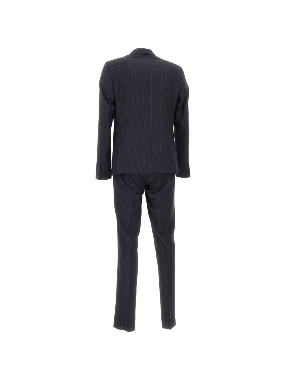 Темно-синий костюм из чистой шерсти с полосатым узором, лацканы с острыми концами, передние клапанные карманы, застежка на пуговицы