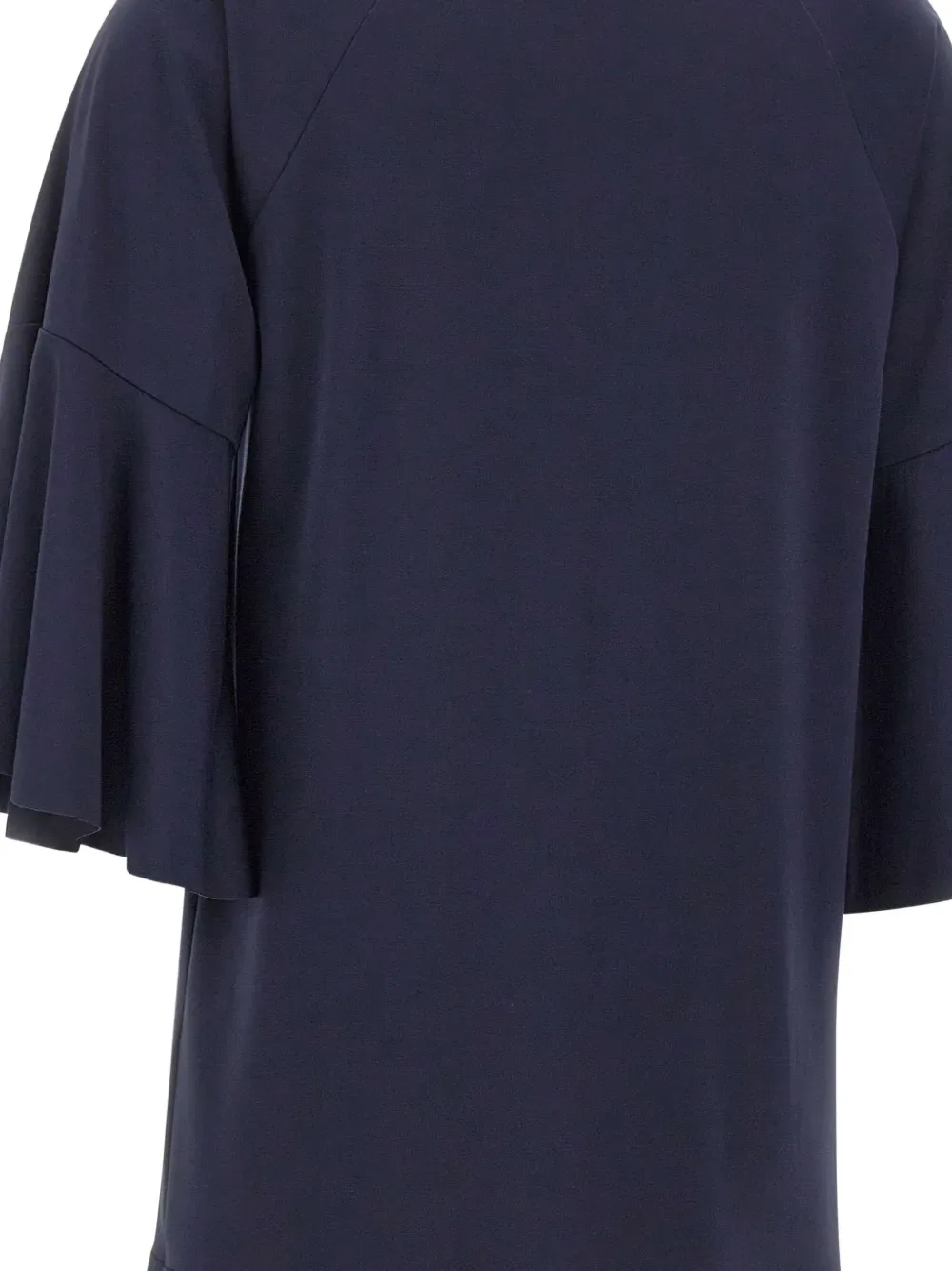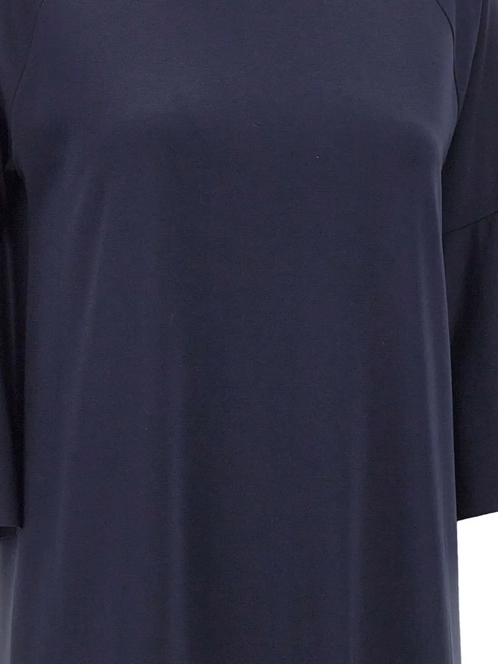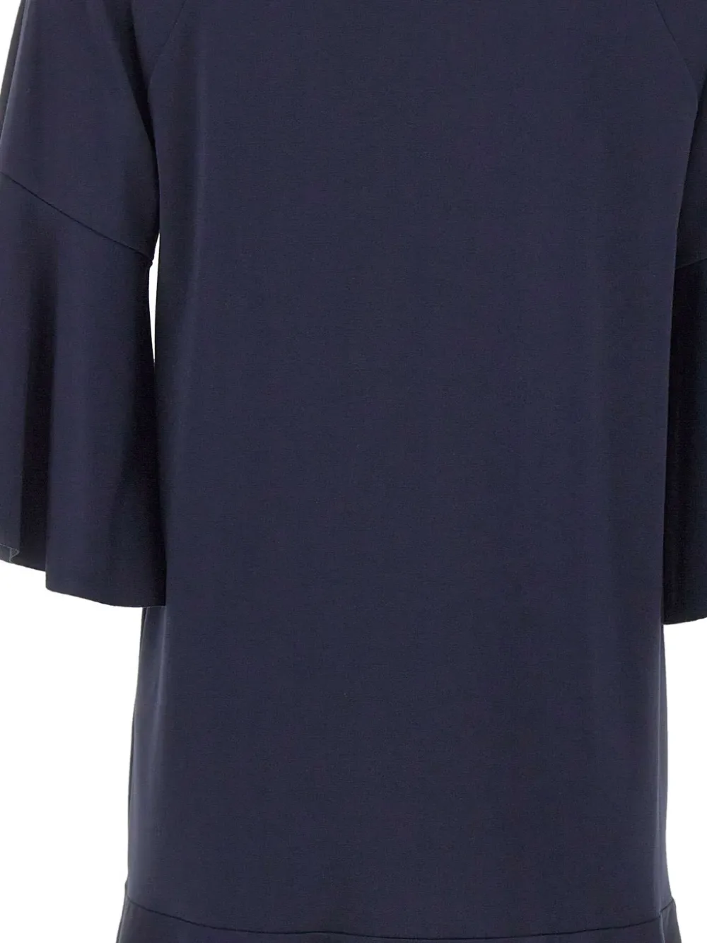 Синий, круглый вырез, рукава три четверти, расклешенный фасон