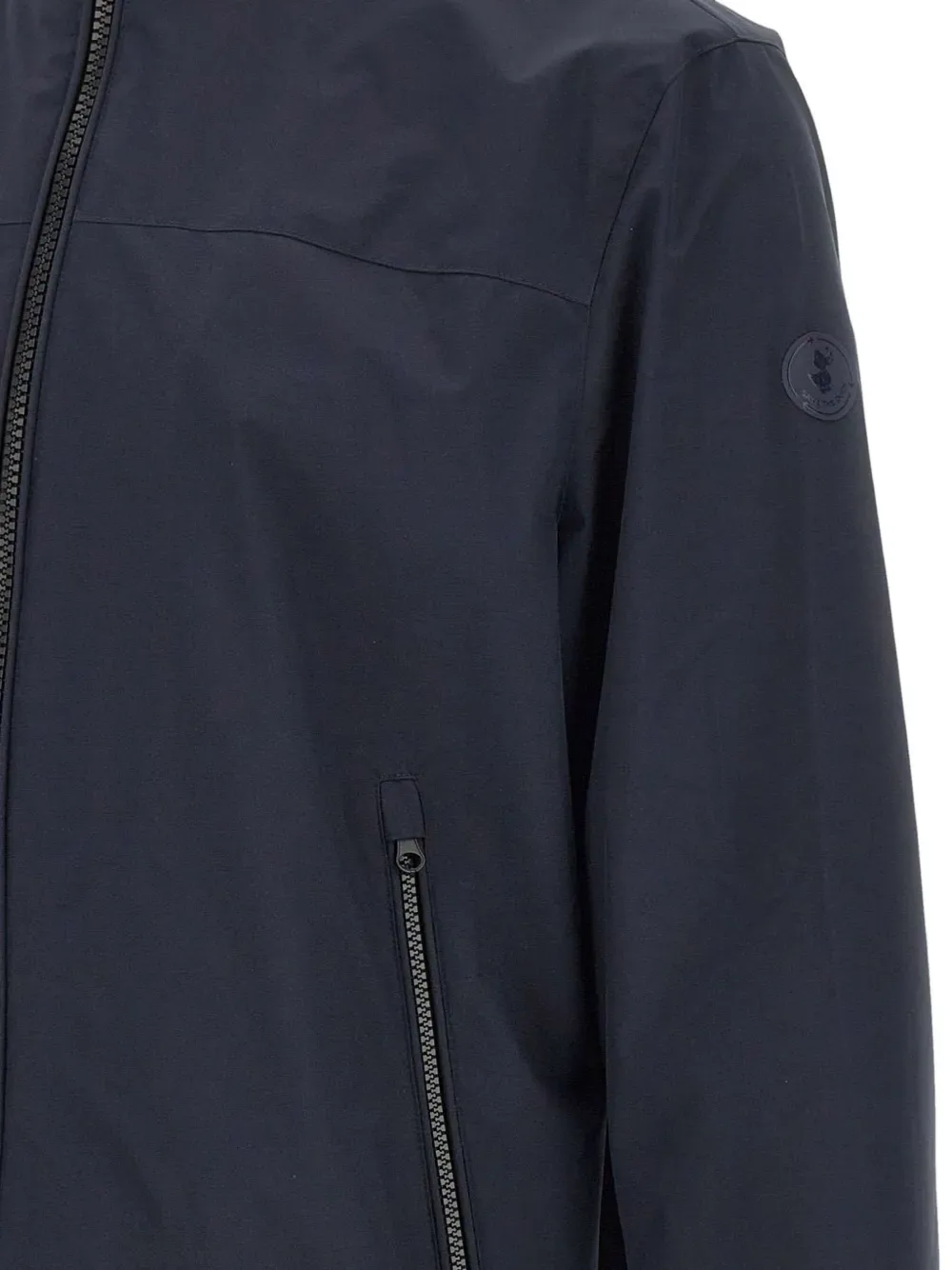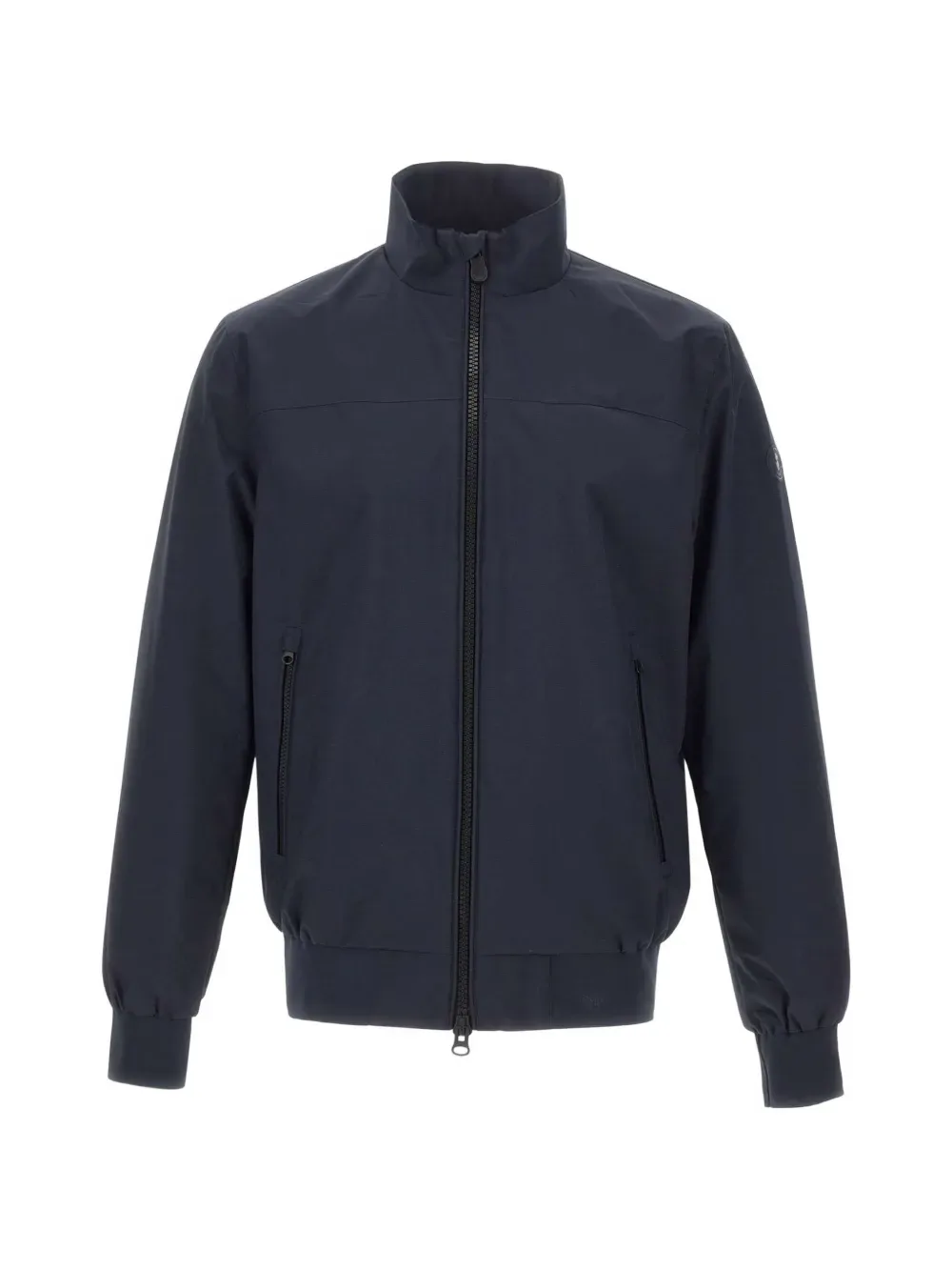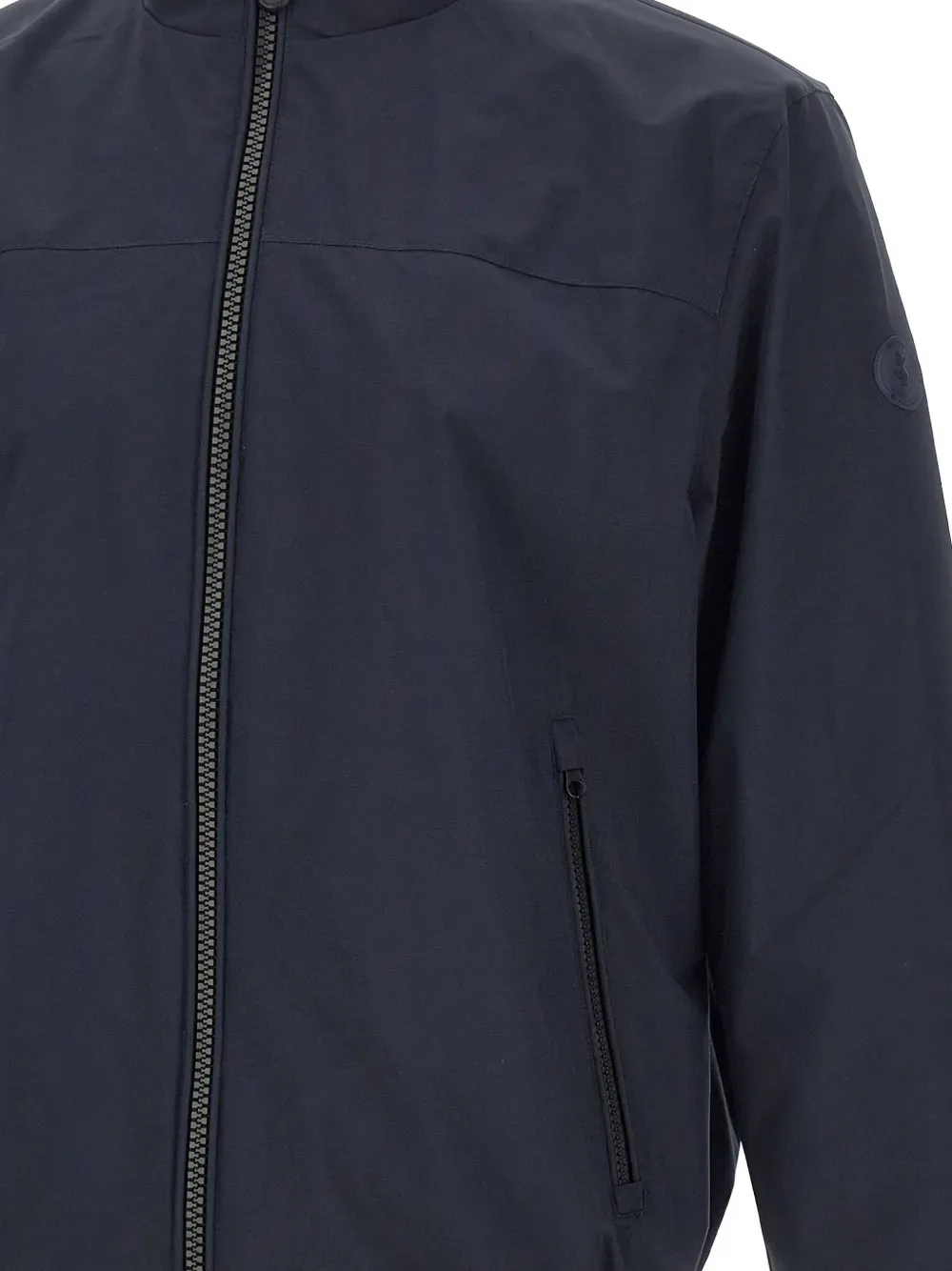 Темно-синий, водоотталкивающий, ветрозащитный, двухсторонняя застежка-молния, боковые карманы на молнии, эластичные манжеты