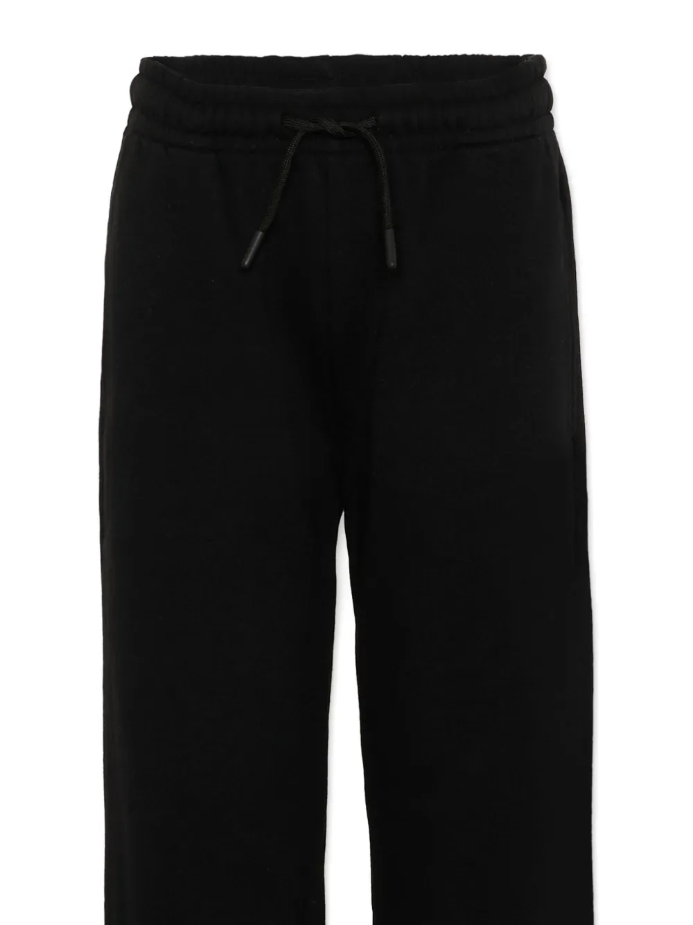 Черные хлопковые брюки с кулиской на талии, накладным задним карманом и принтом-логотипом
