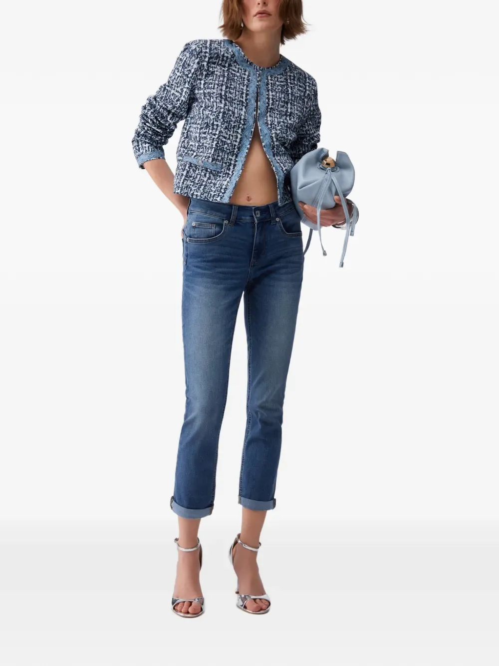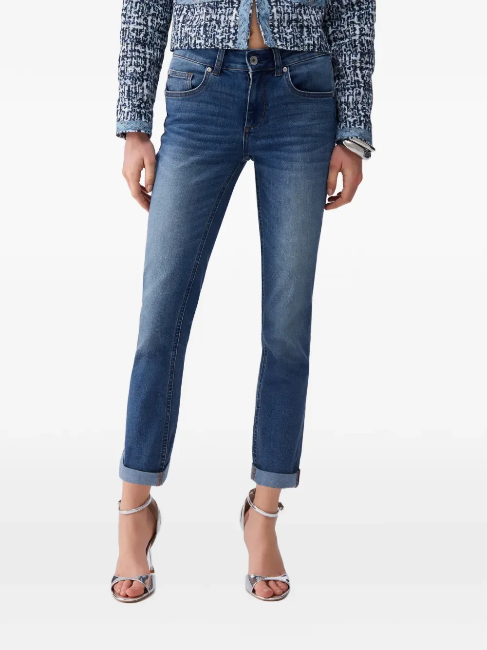 Синий цвет, стандартная посадка, шлевки для ремня, пять карманов, подогнутые края, длина выше щиколотки