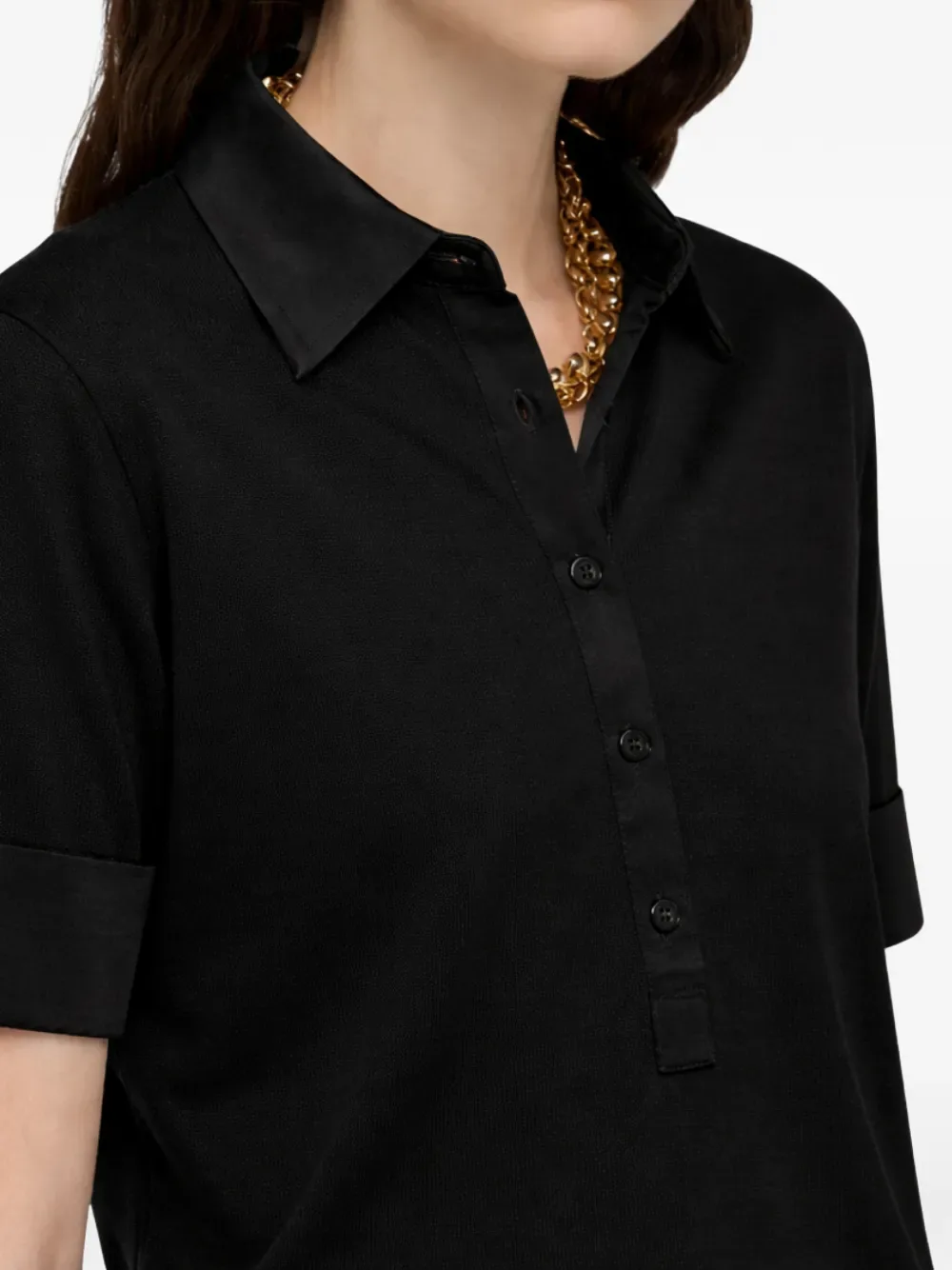 Черная рубашка-поло на пуговицах с короткими рукавами и воротником