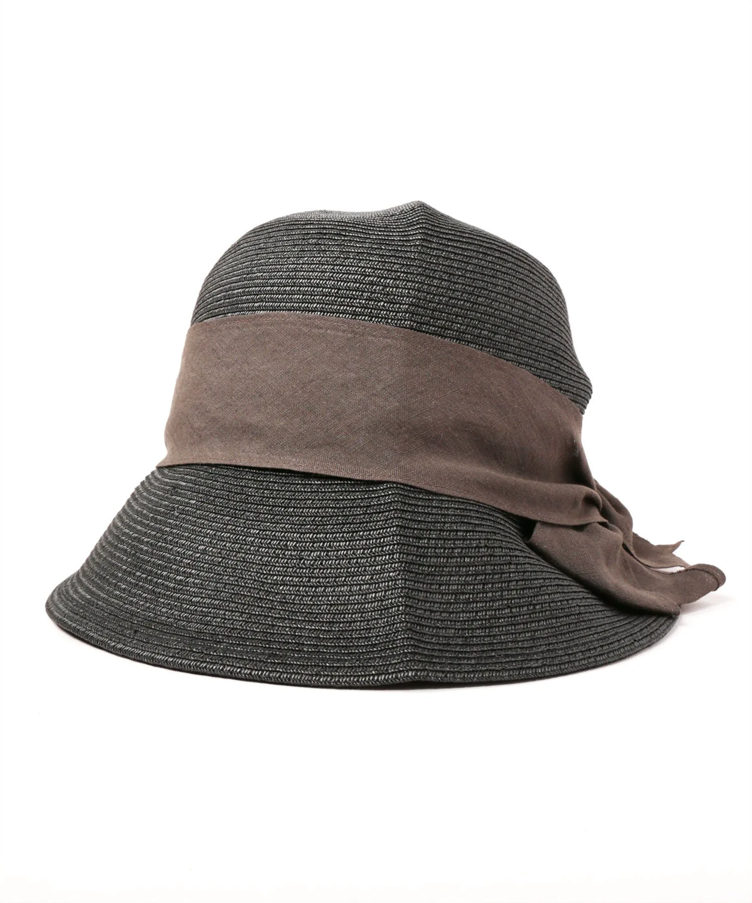 Льняная лента обвивает шляпу, создавая изысканный, но не слишком повседневный вид. Ее можно свернуть по краю для удобного хранения и компактной переноски.