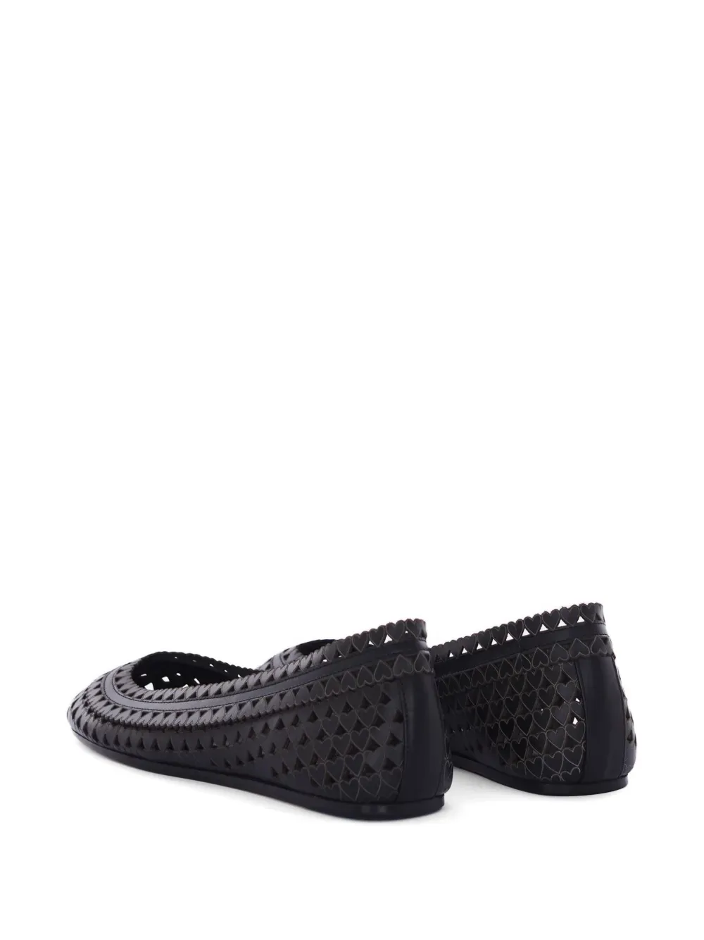 Черная кожаная обувь с вырезами в виде сердца и кожаной подошвой
