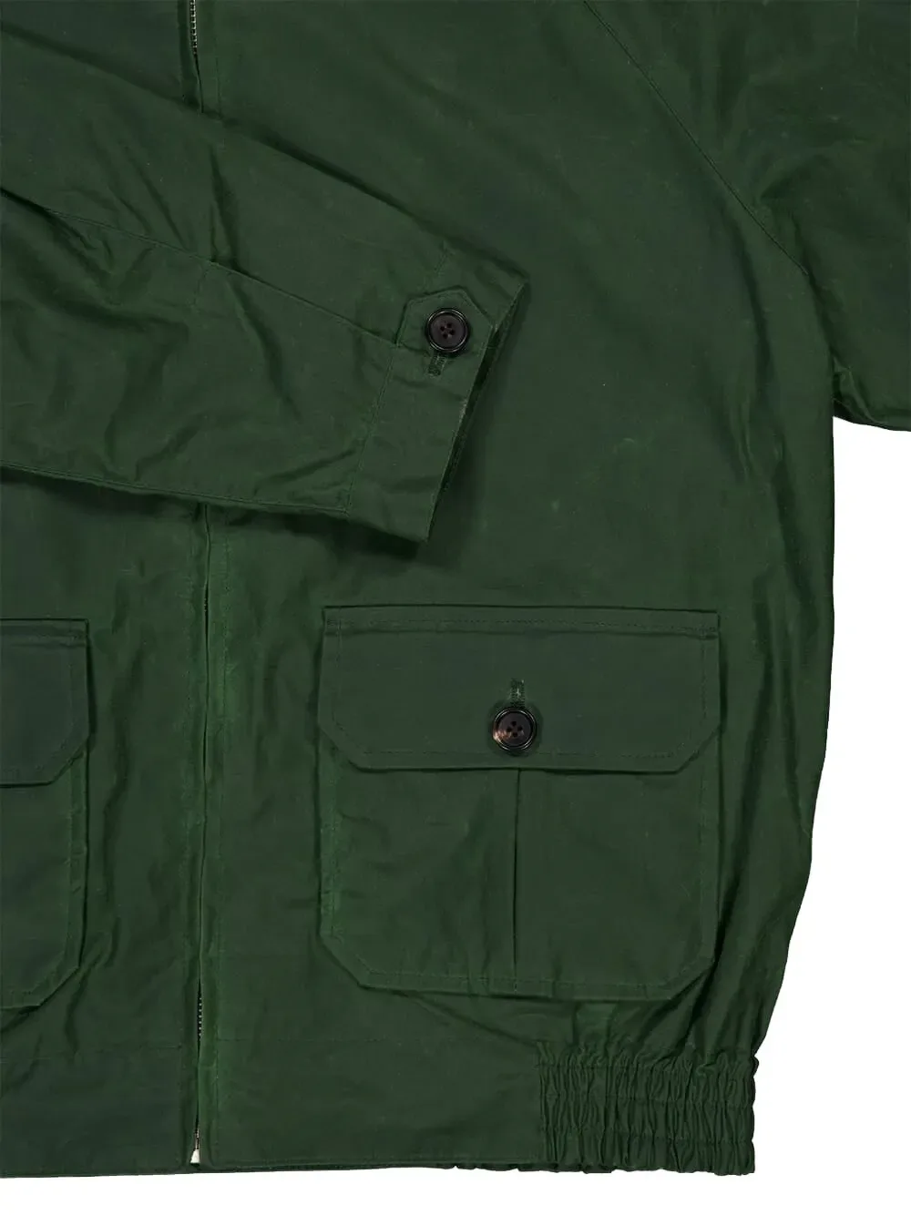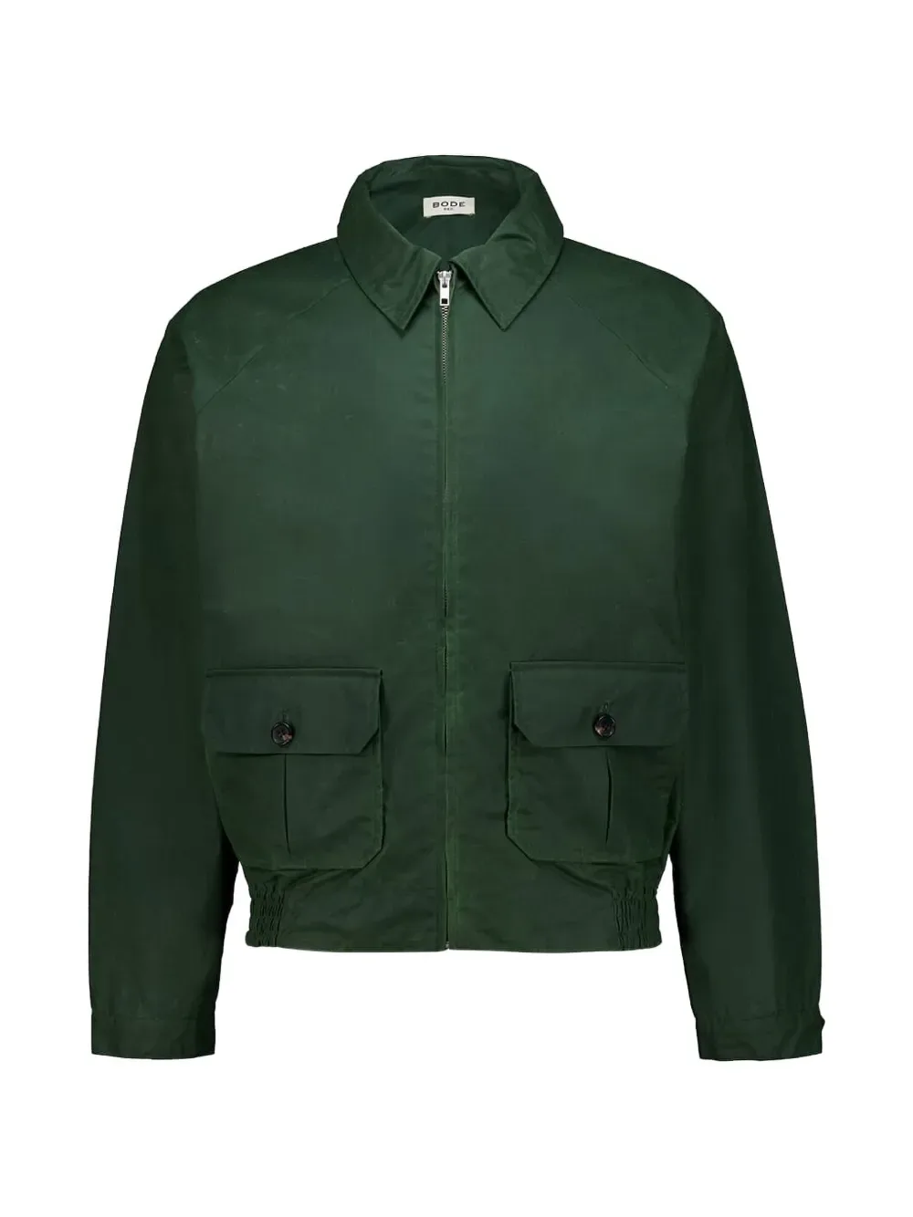 Зеленая хлопковая куртка с застежкой-молнией, воротником, накладными карманами с клапанами на пуговицах и эластичным поясом