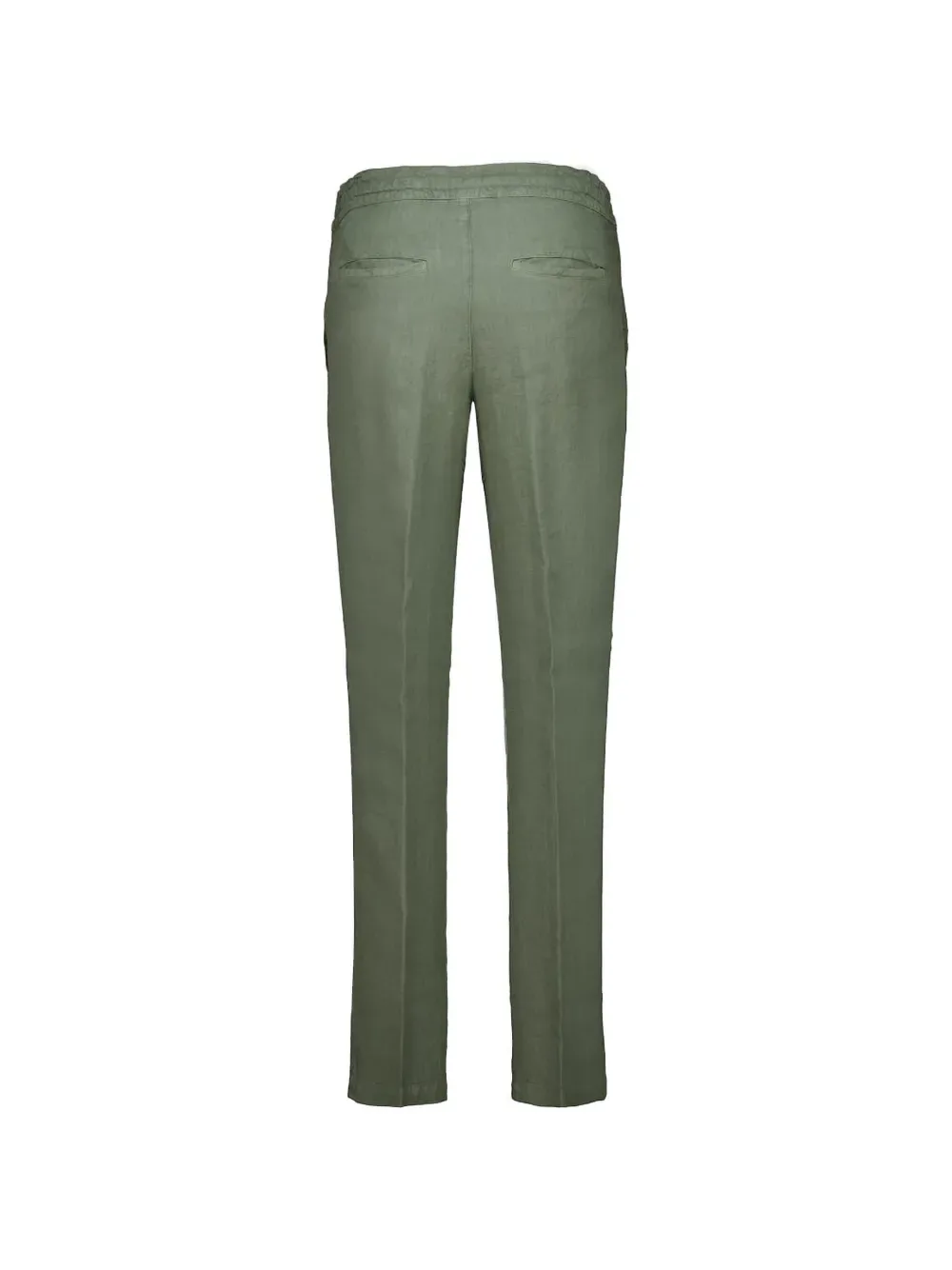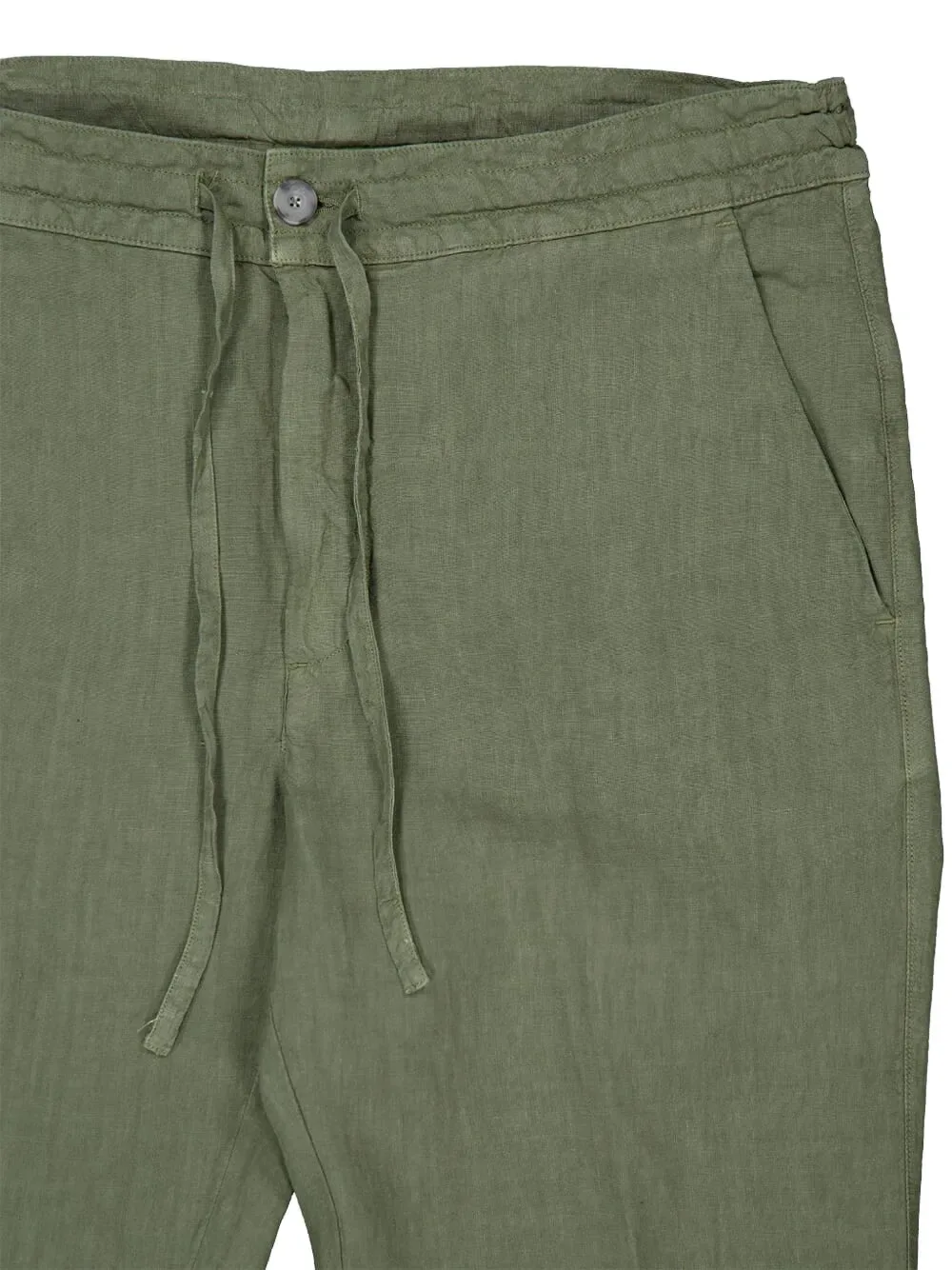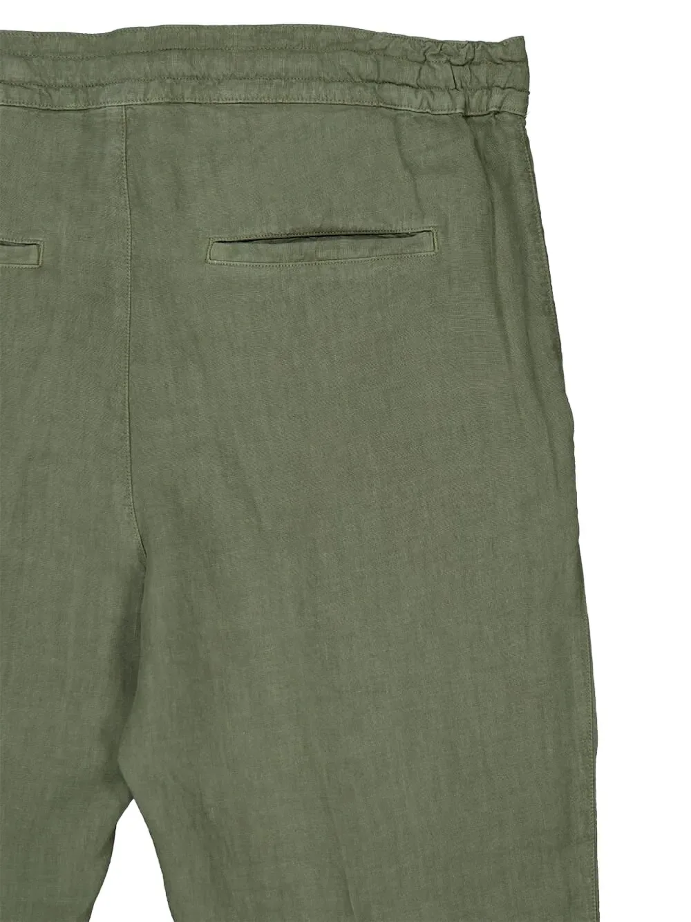 Хаки льняные брюки с завязкой, пуговичной ширинкой, эластичным поясом и задними карманами