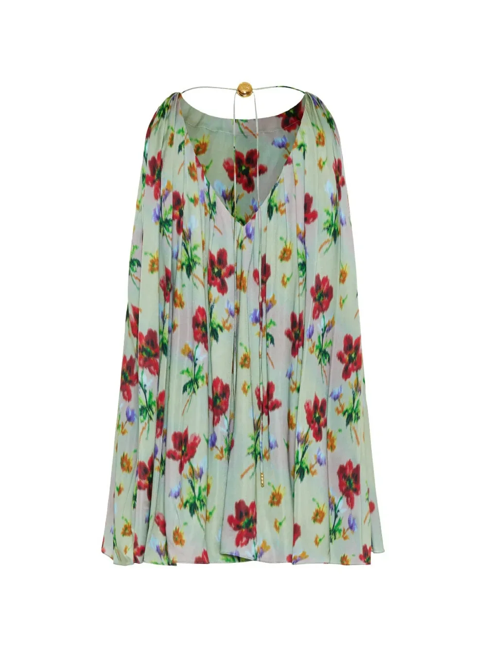 Бледно-зеленый с цветочным принтом, сборками, регулируемыми бретелями и открытой спиной