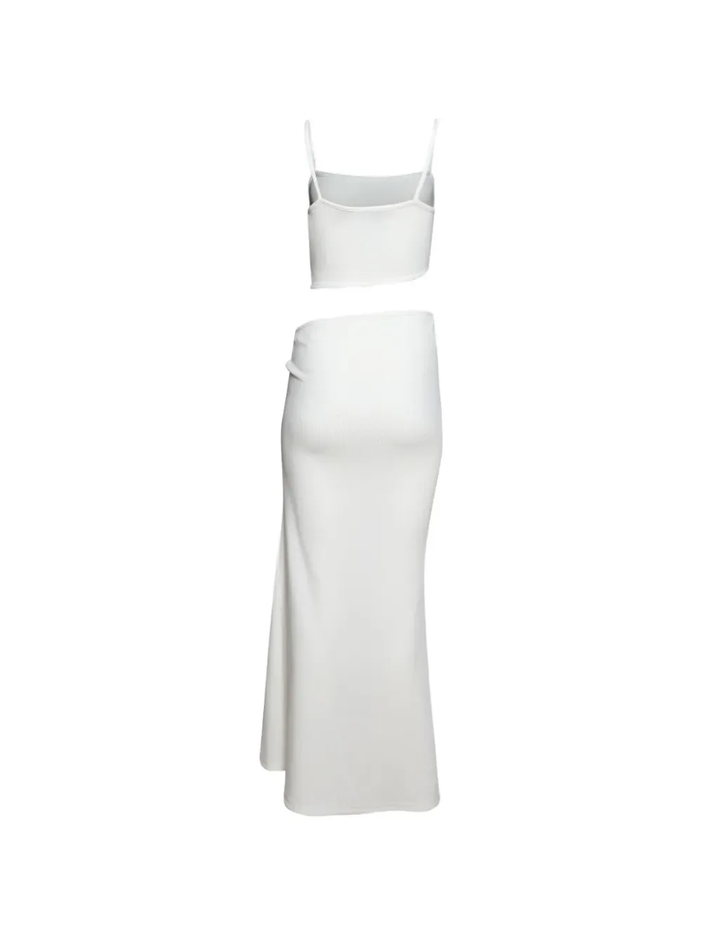 Белый топ на тонких лямках с декоративными вырезами, отделкой и фактурной вязкой, без рукавов