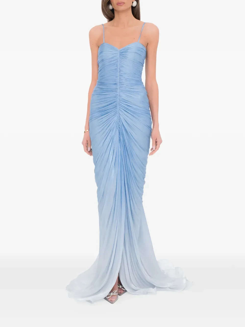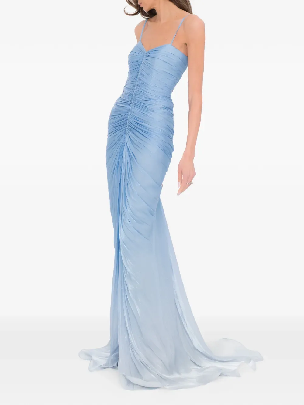 Светло-голубое платье с драпировкой и тонкими бретельками