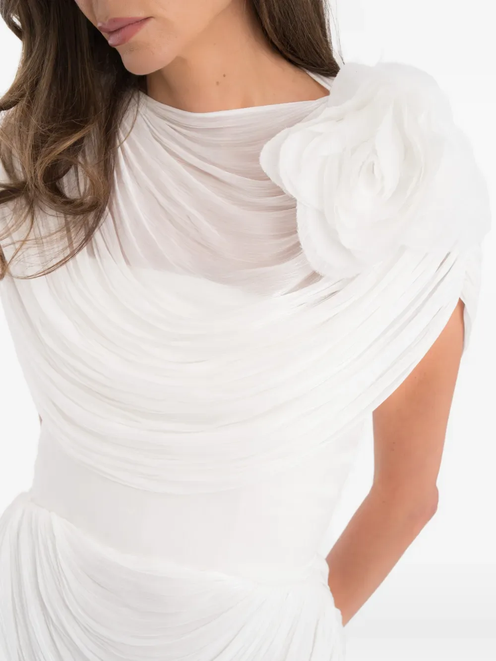 Мини-платье белого цвета с цветочным декором и разрезом сбоку