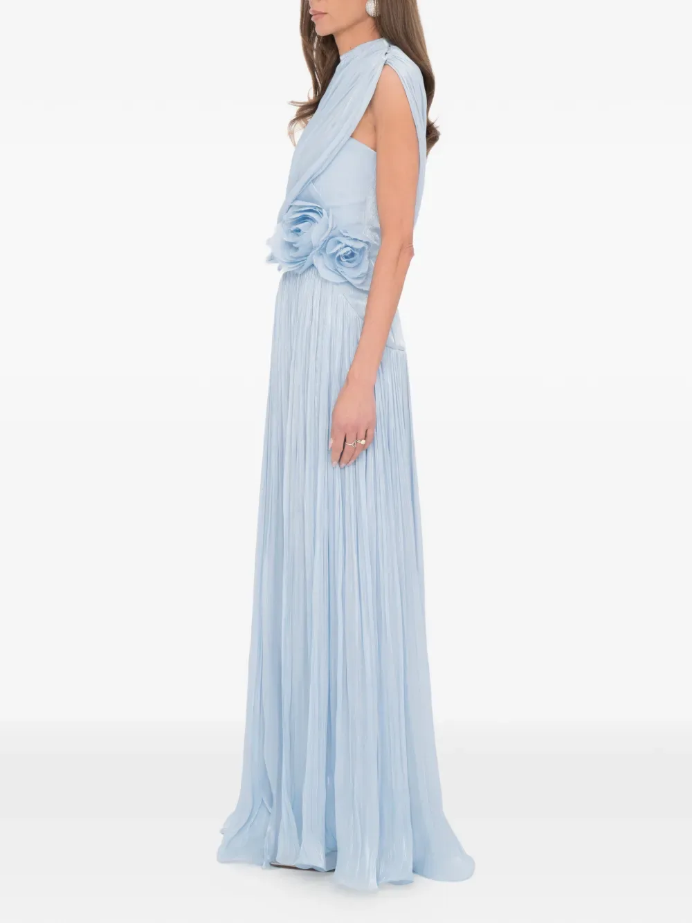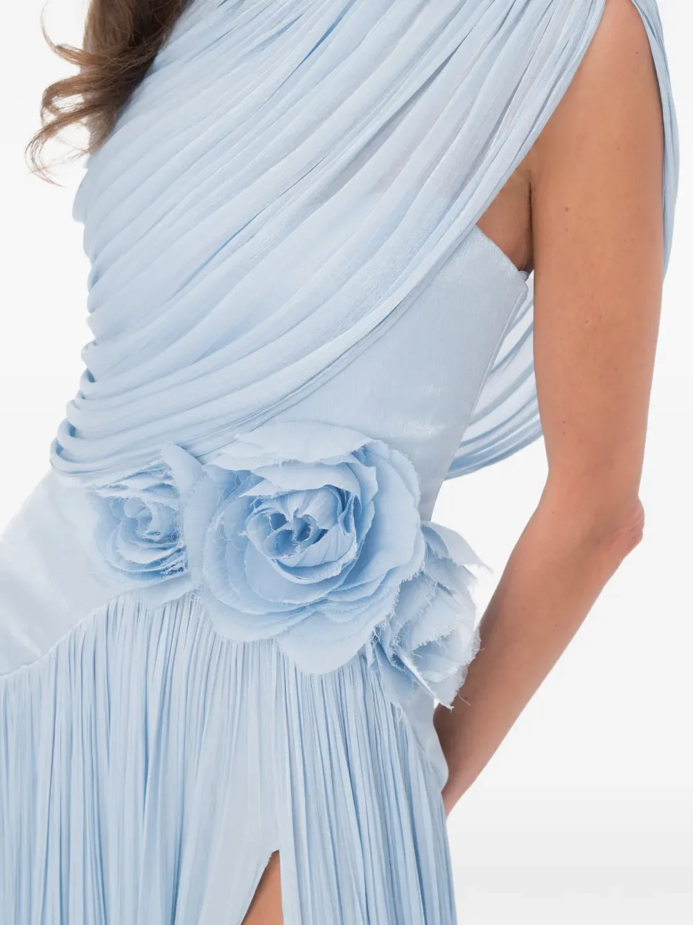 Синий асимметричный топ на одно плечо с лепестками и разрезом на подоле