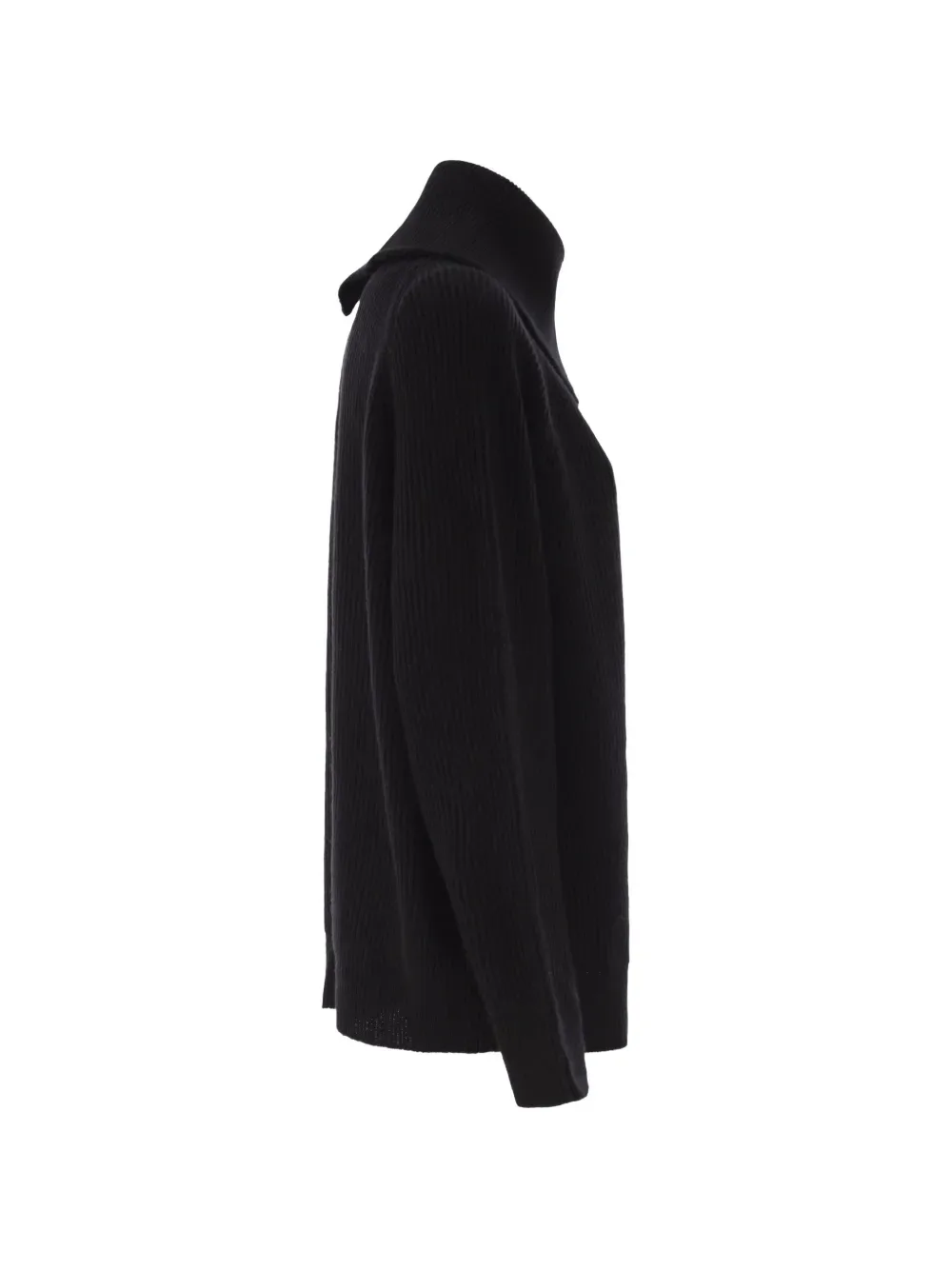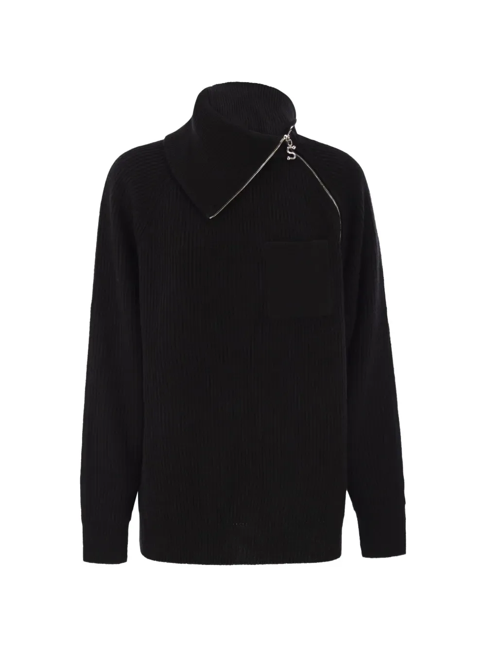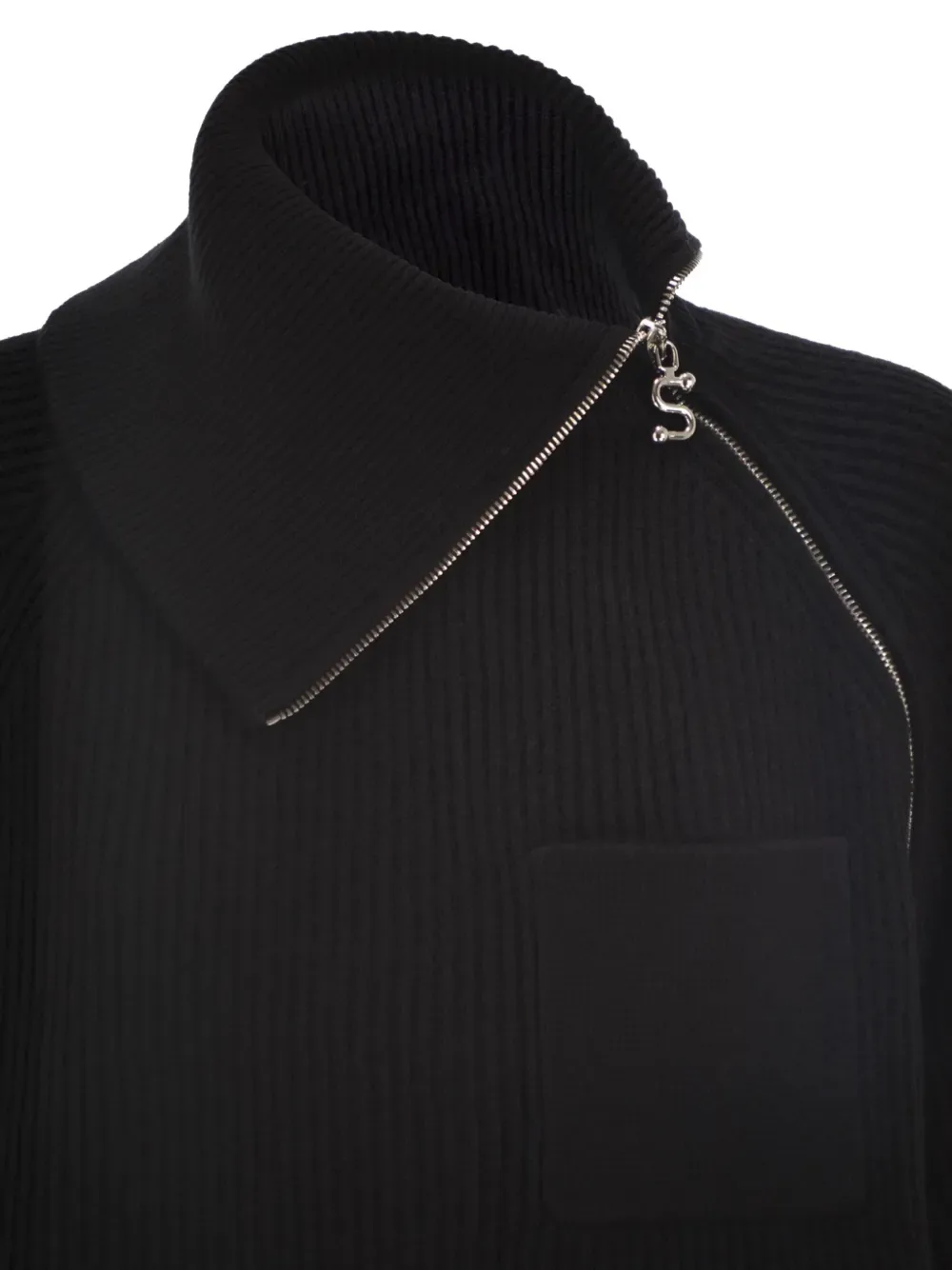 Черная водолазка с диагональной молнией и рубчатой вязкой