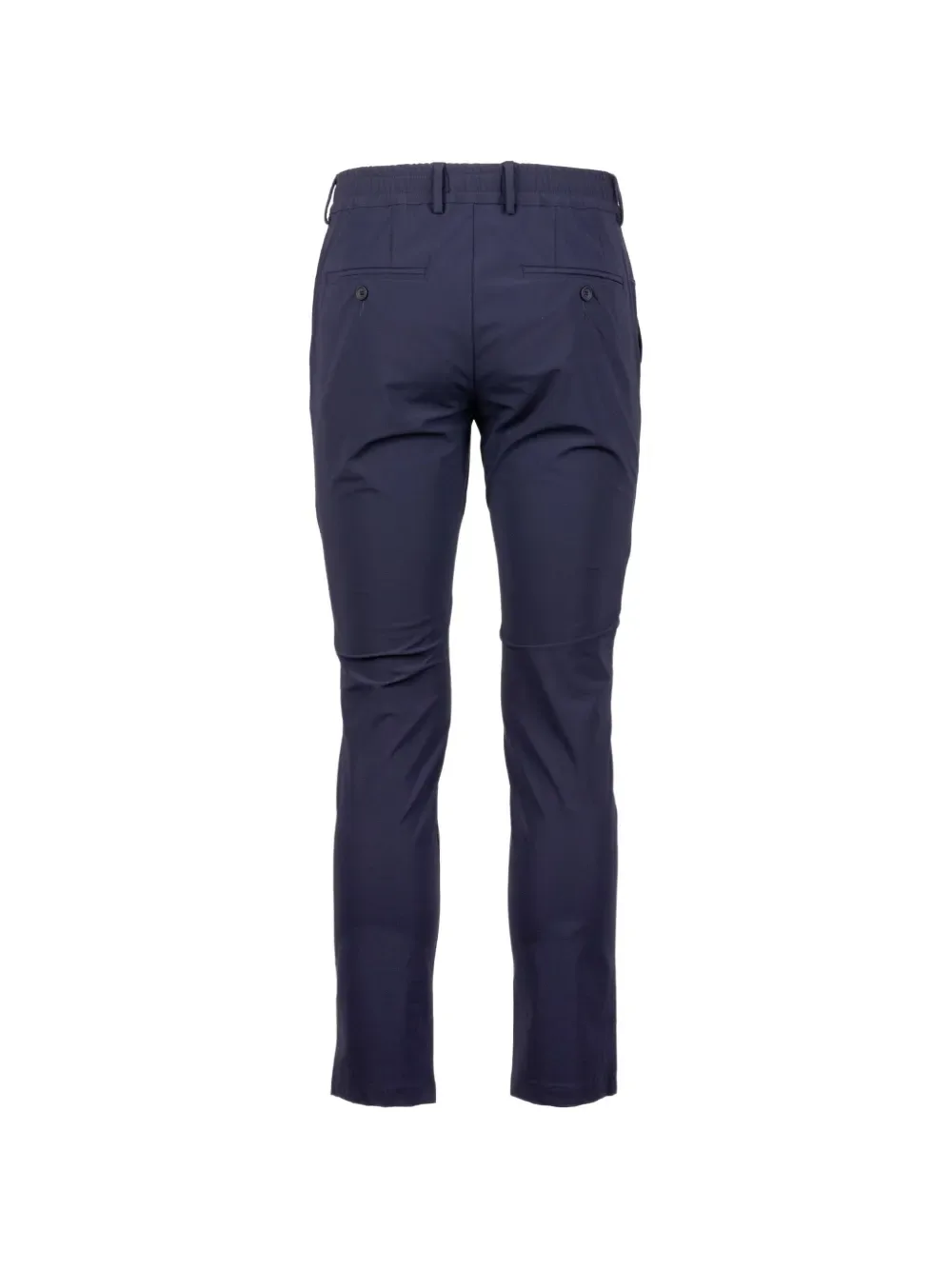 Синий цвет, эластичный пояс, застежка на пуговицу, шлевки для ремня, задние прорезные карманы