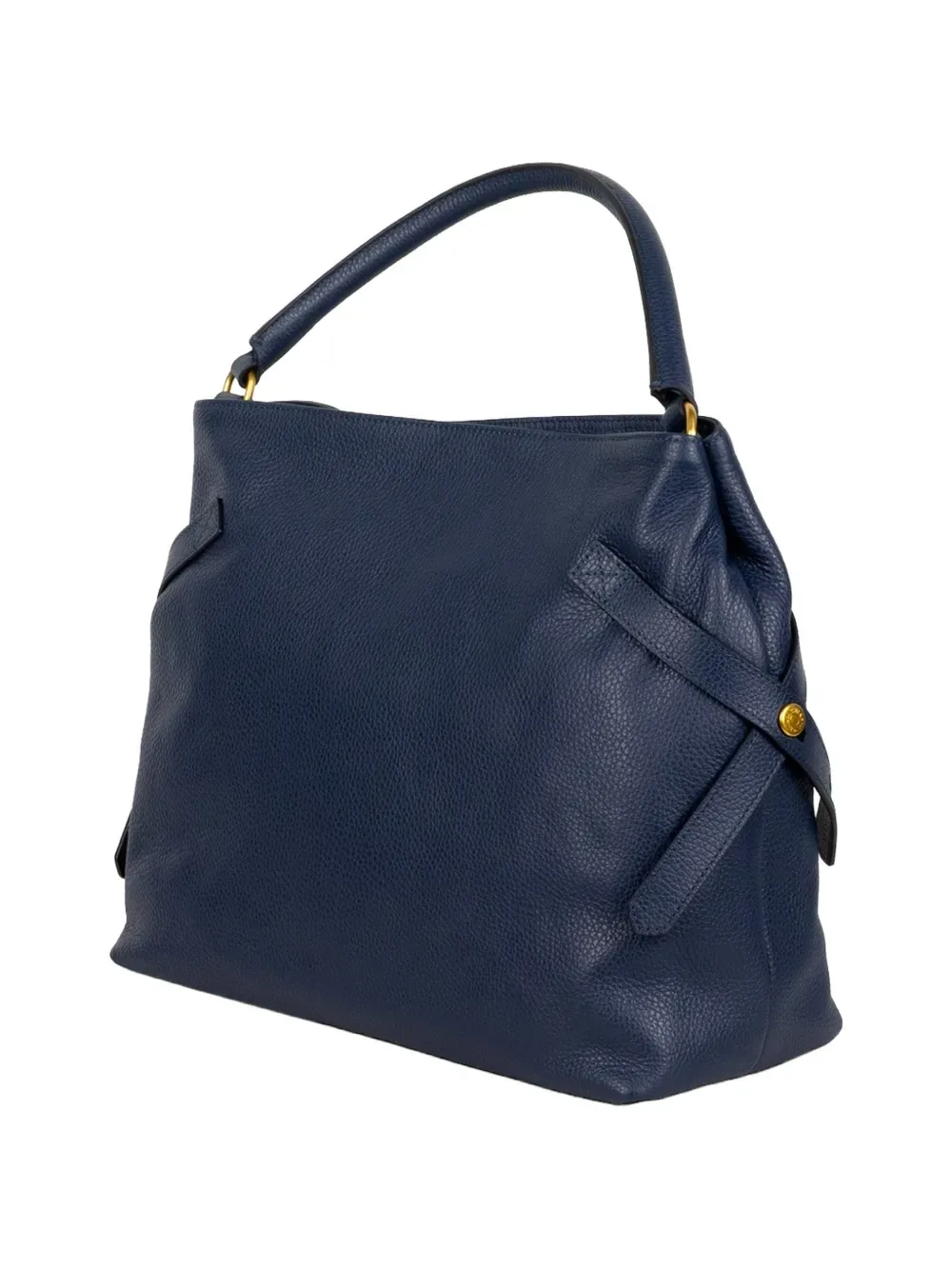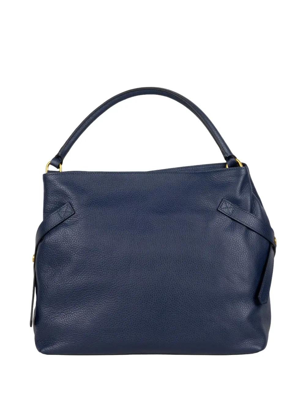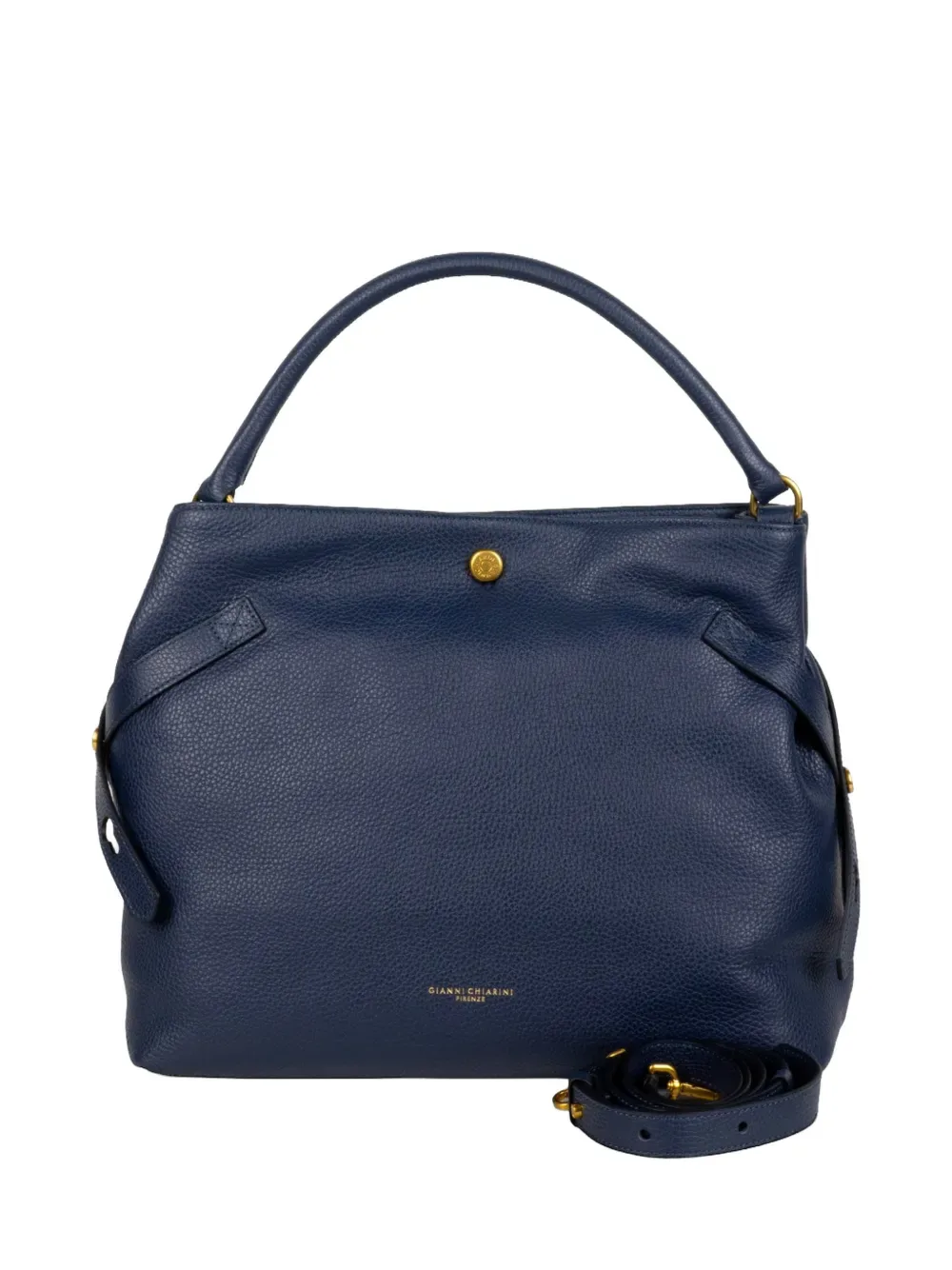 Синяя сумка с верхней ручкой, съемным ремнем и фурнитурой цвета золота