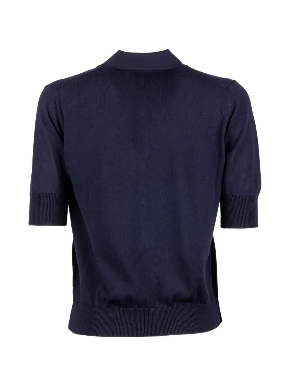 Синее поло с застежкой на пуговицы спереди, короткими рукавами, воротником-поло и ребристым подолом