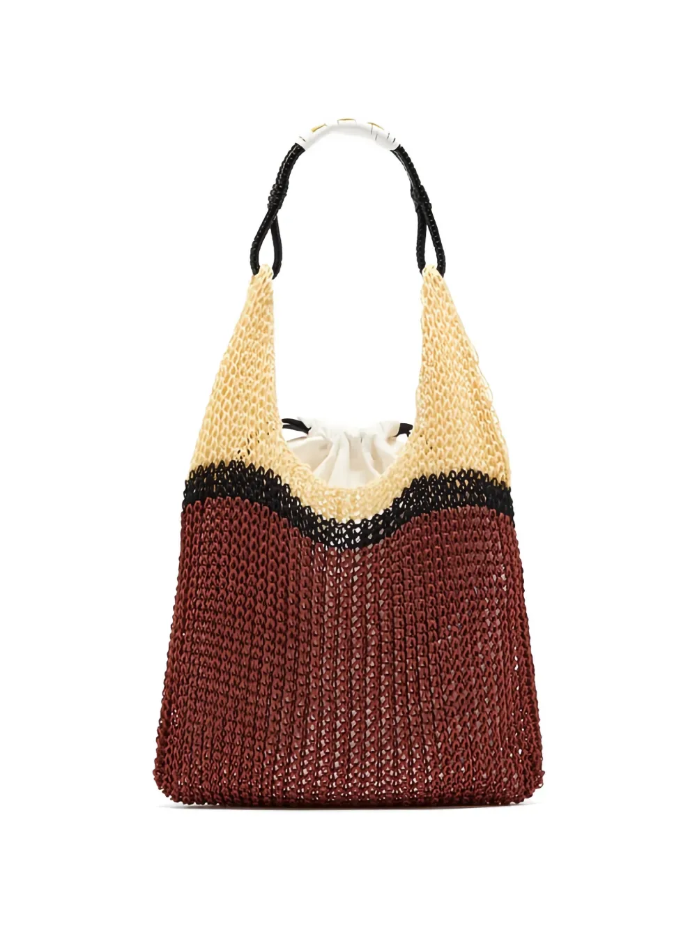 Коричневая с черной отделкой, застежкой-кулиской, сетчатым дизайном, верхней ручкой, внутренней этикеткой