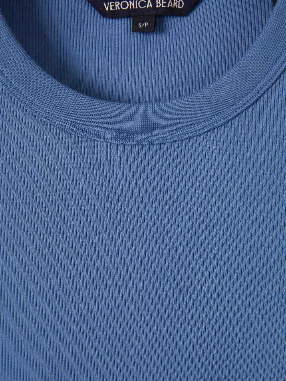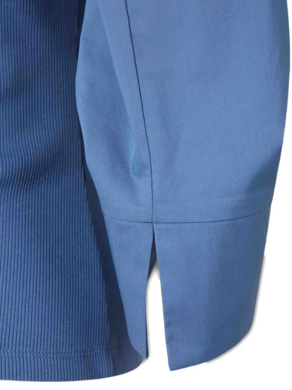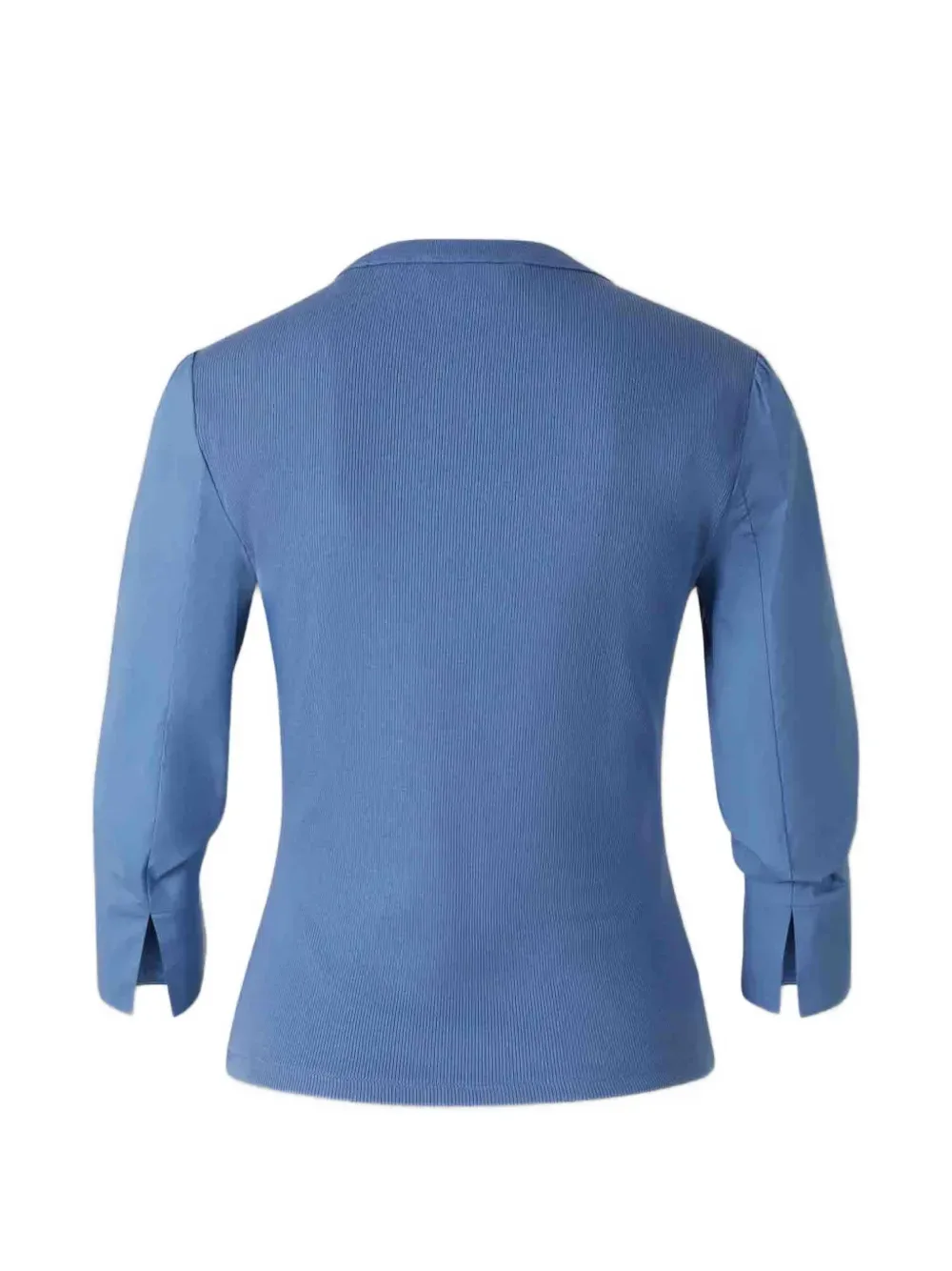 Синий в рубчик с круглым вырезом, длинные рукава, манжеты с разрезами