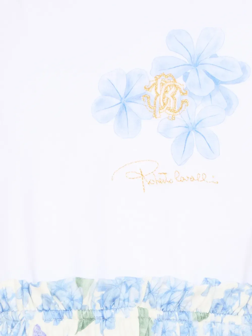 Платье с цветочным принтом Roberto Cavalli Junior, белый
