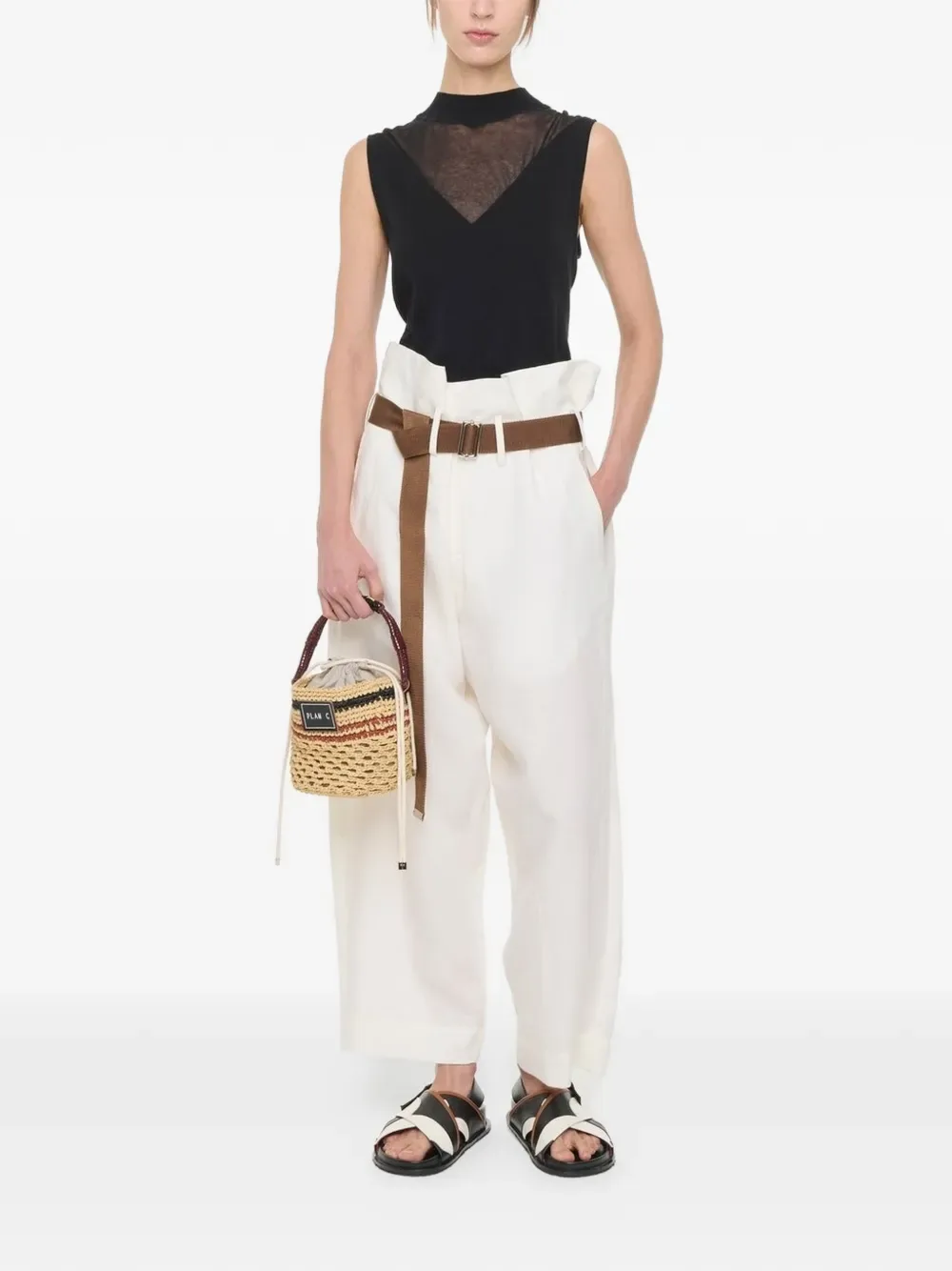 Белые укороченные брюки с поясом-ремнем, талией в стиле "пейпербэг" и прорезными карманами
