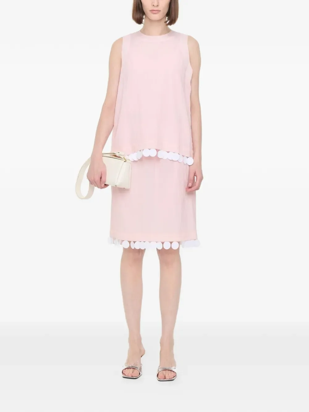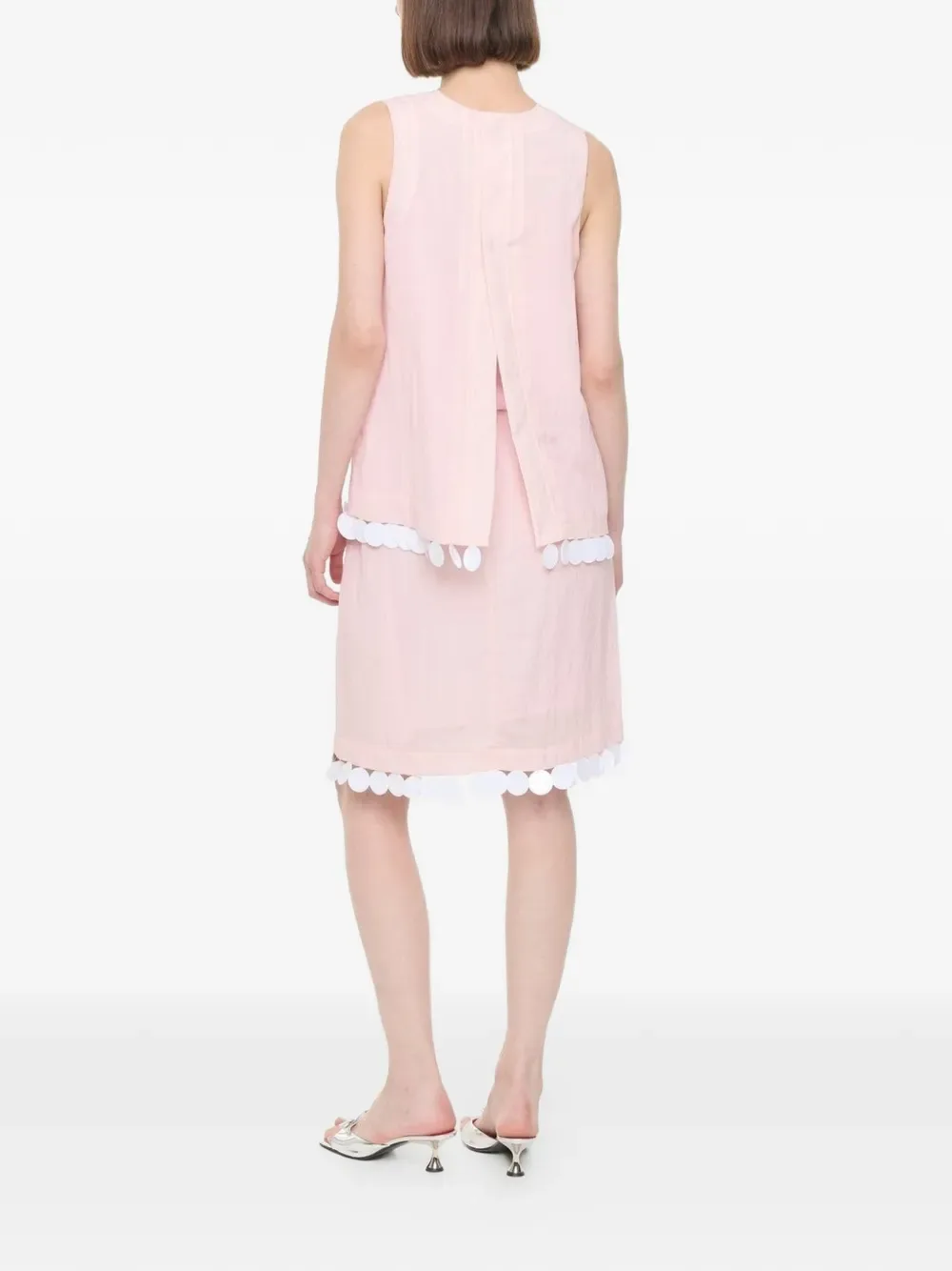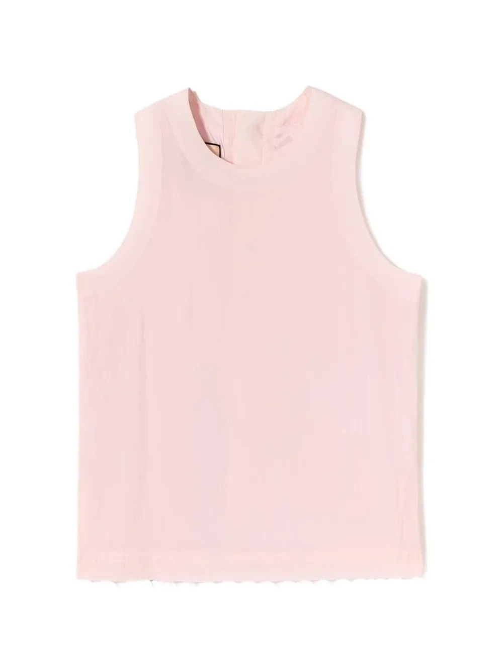Розовая безрукавка с круглым вырезом и отделкой в виде помпонов