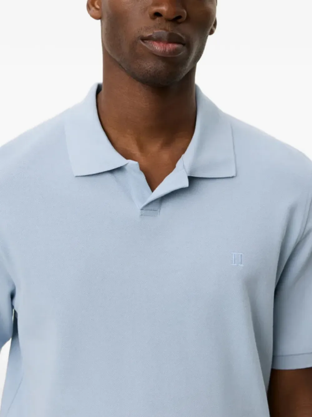 Светло-голубое поло с короткими рукавами, вышитым логотипом и воротником