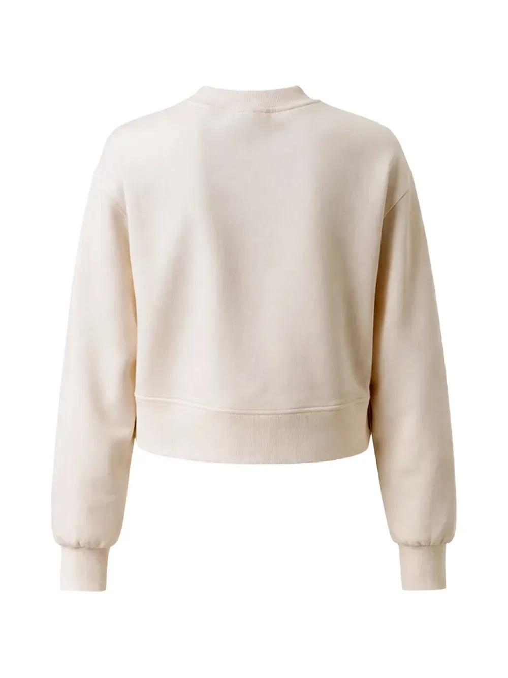 Бежевый свитер с круглым вырезом, рубчатой отделкой низа и манжет