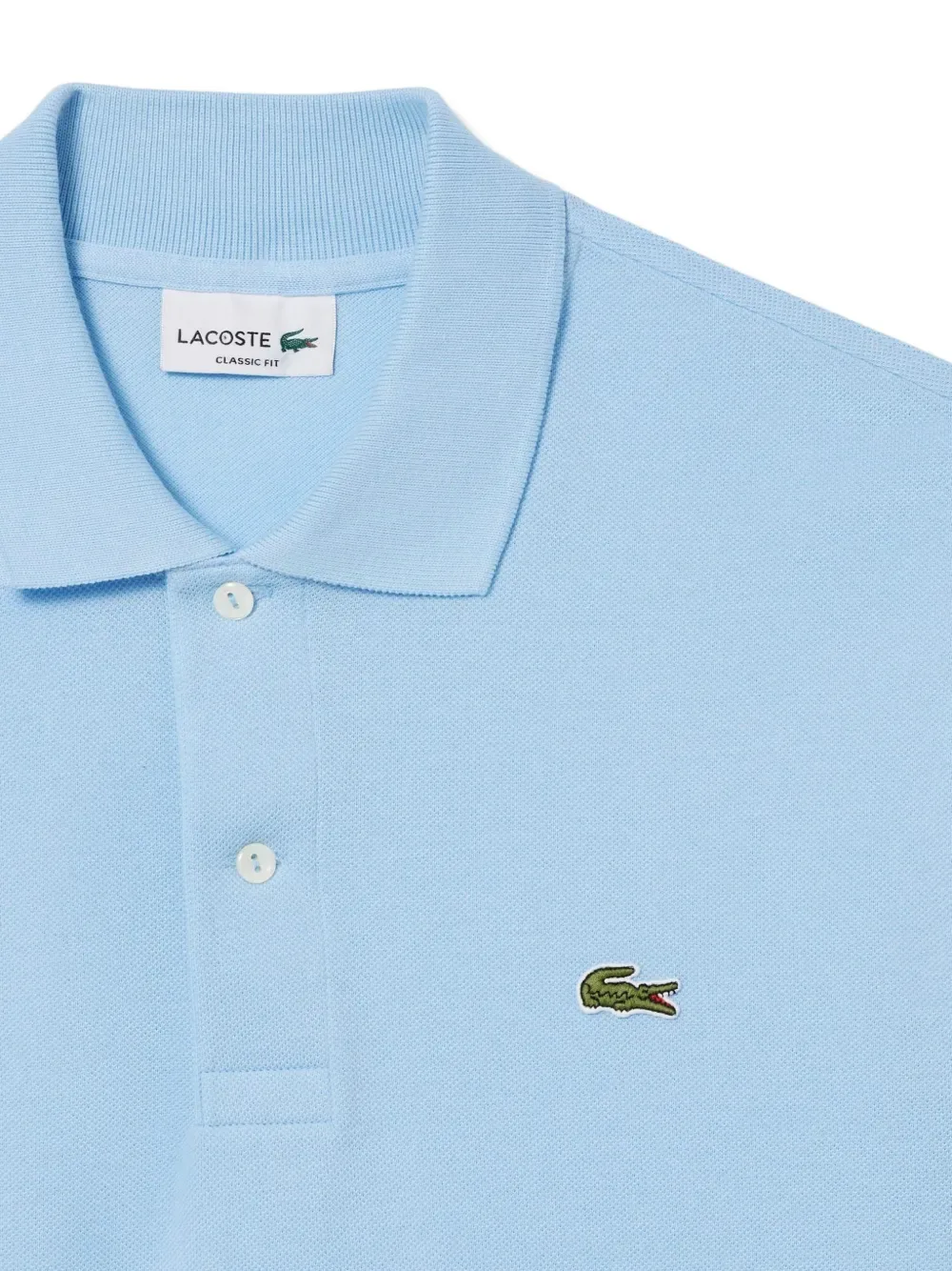 Голубая хлопковая футболка на пуговицах с короткими рукавами и логотипом крокодила