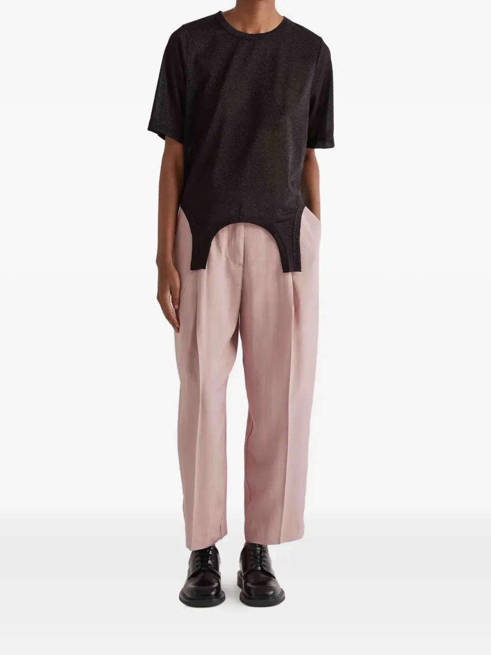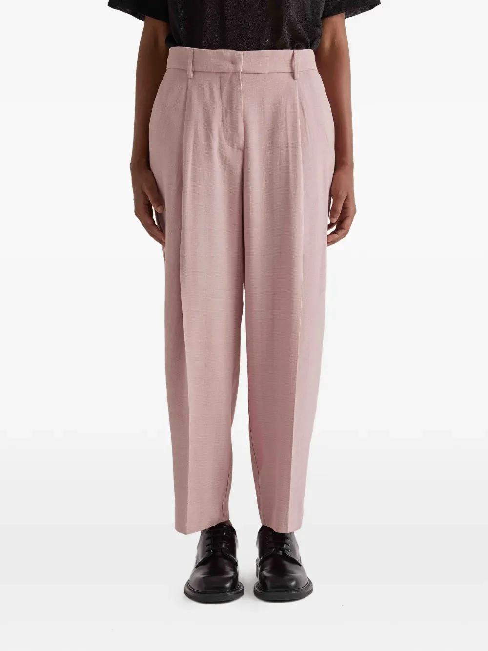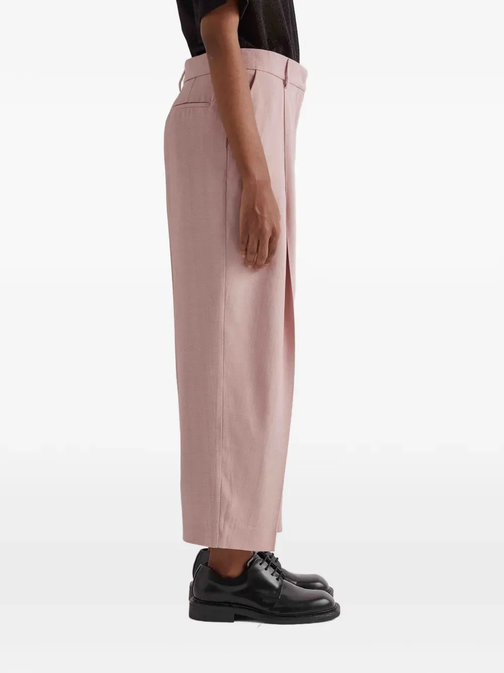 Пыльно-розовые складки, шлевки для пояса, скрытая застежка