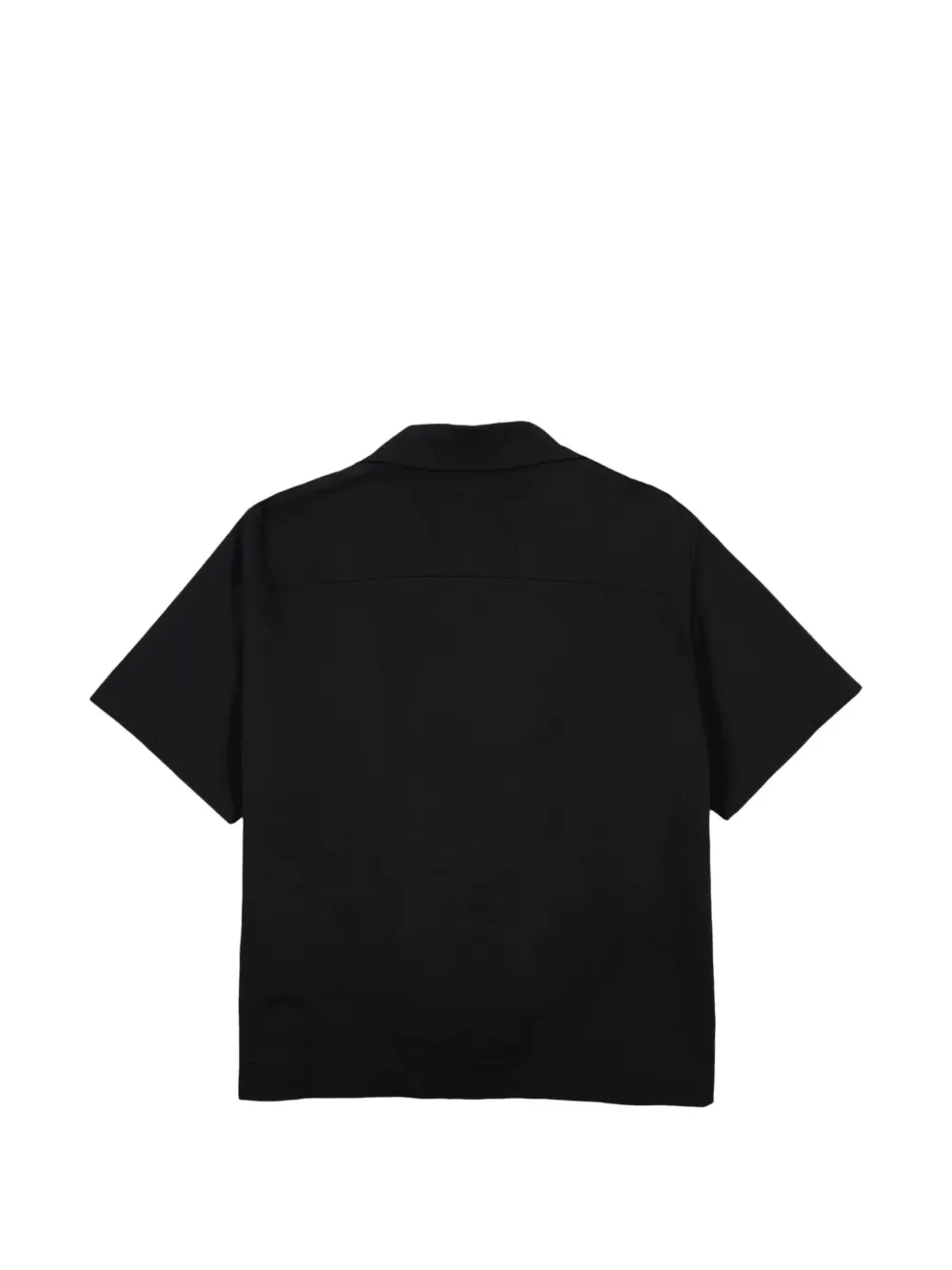 Черная рубашка с короткими рукавами, застежкой на пуговицы и принтом-логотипом