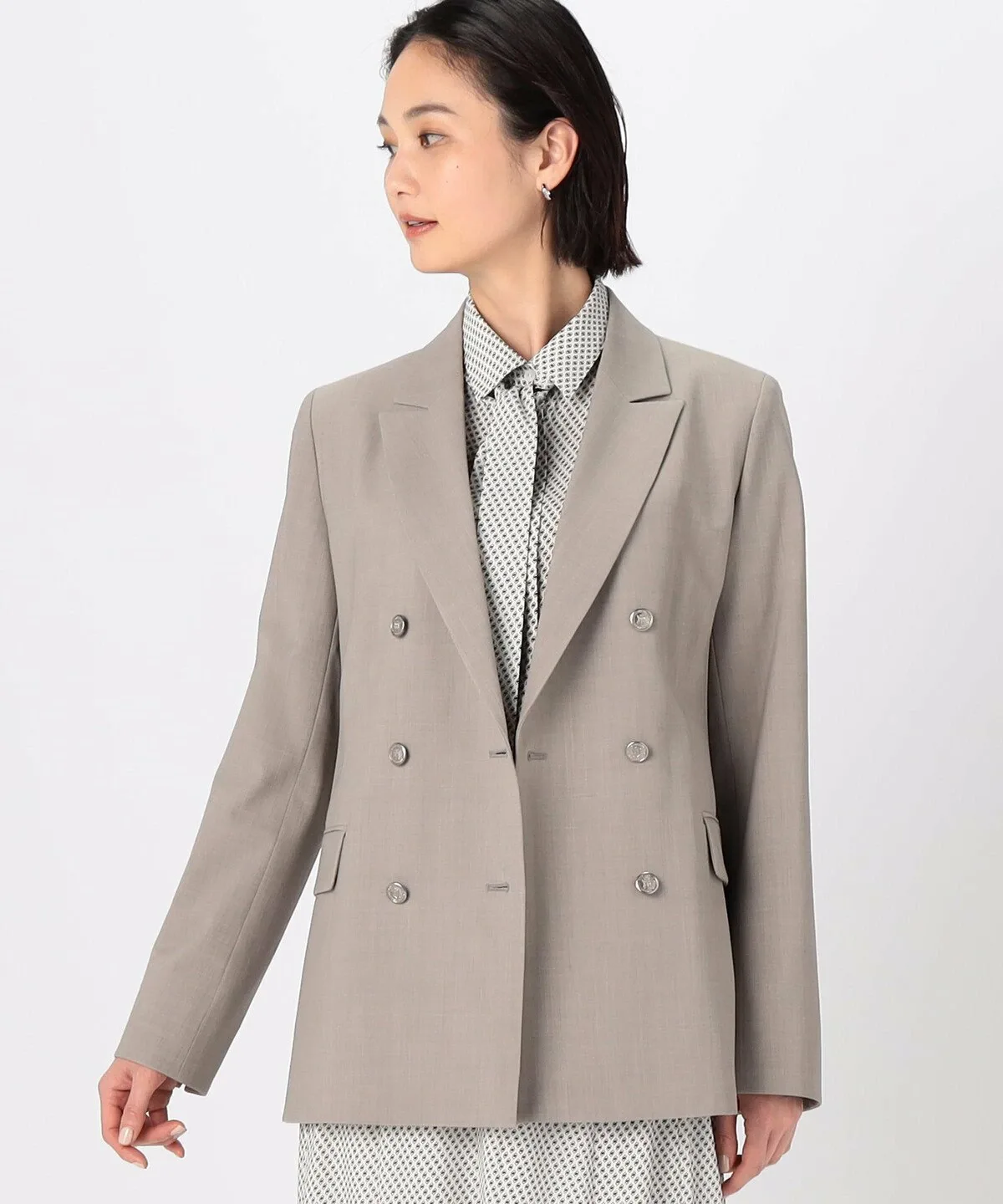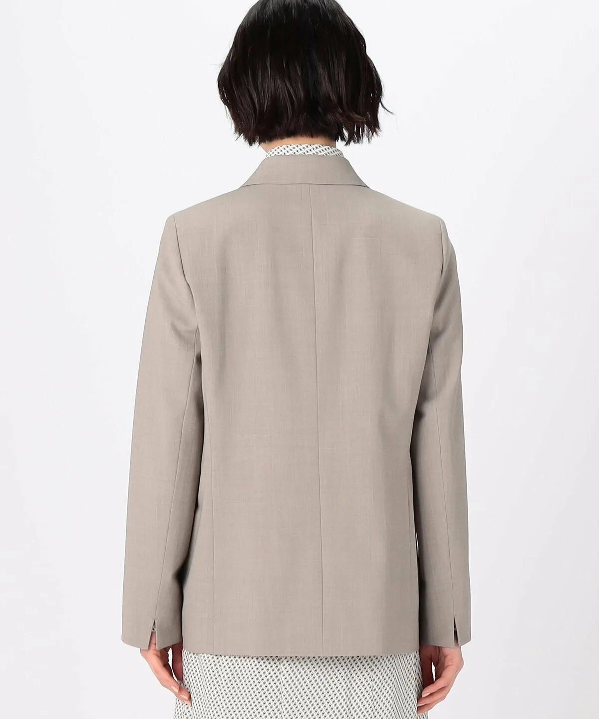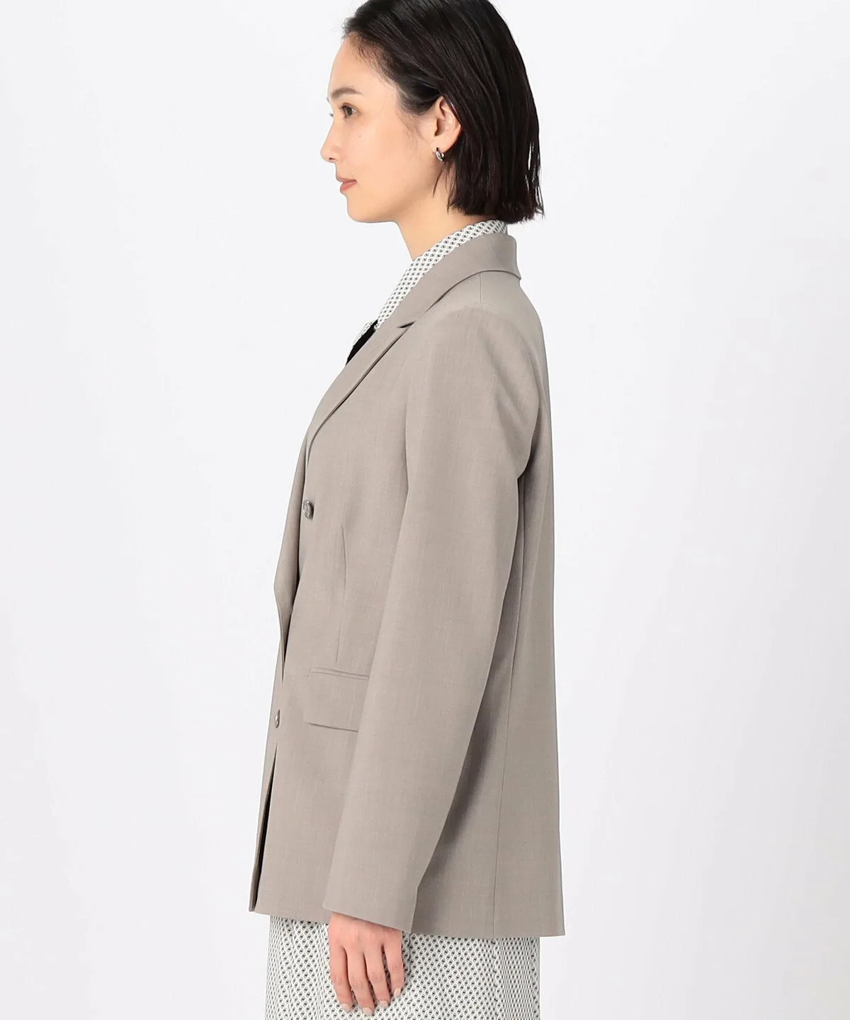 Силуэт тщательно разработан таким образом, чтобы передняя часть пиджака аккуратно ниспадала в расстегнутом виде.