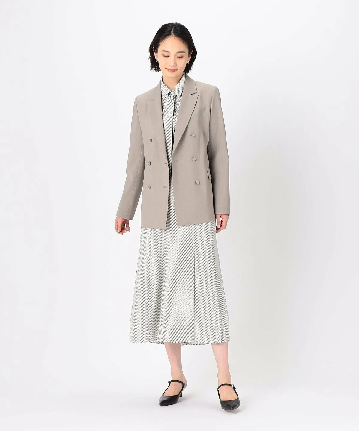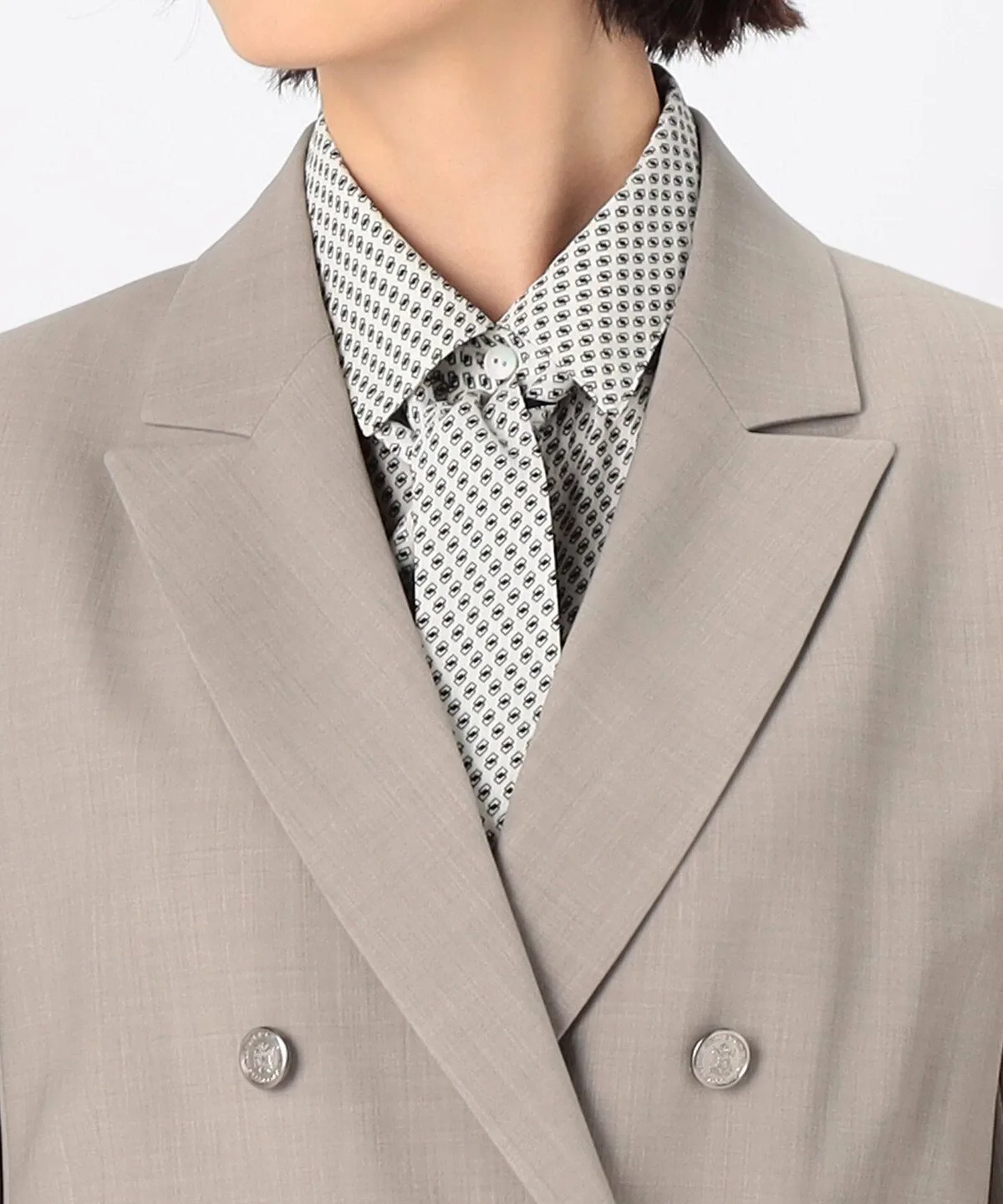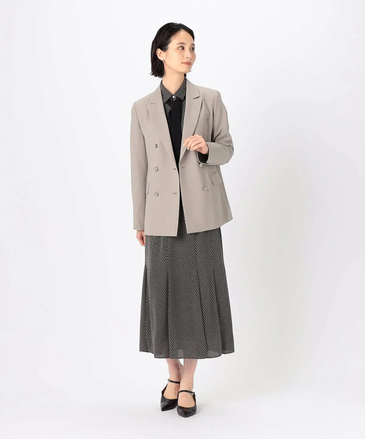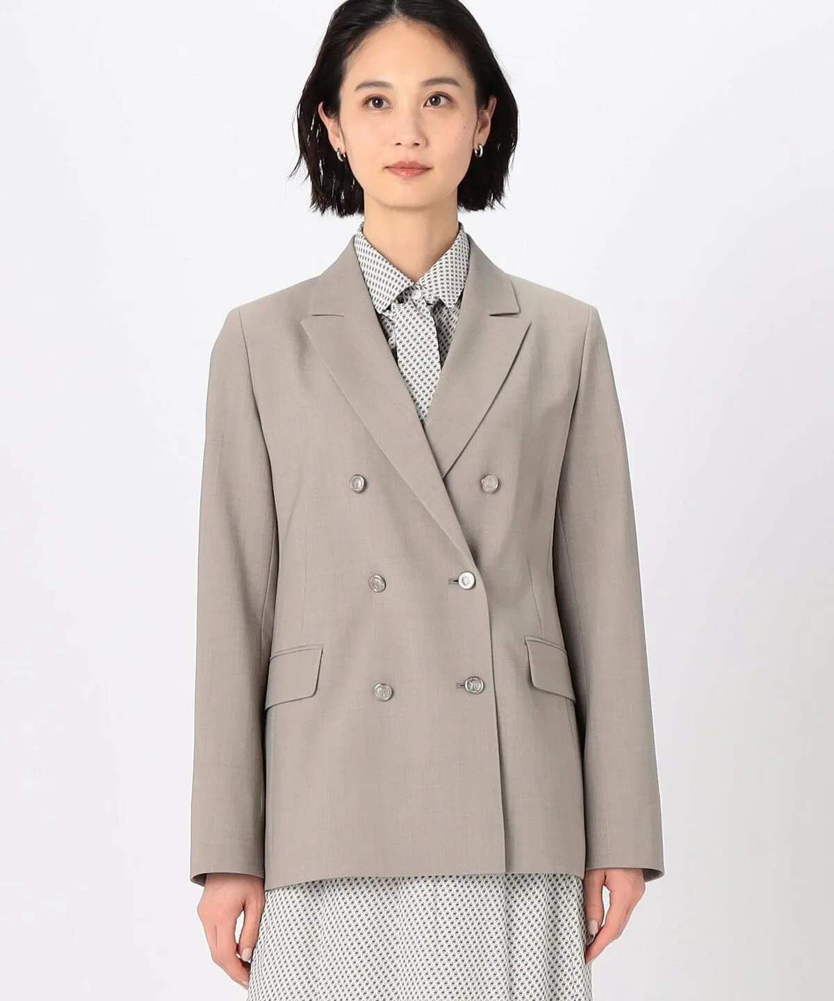 Силуэт тщательно разработан таким образом, чтобы передняя часть пиджака аккуратно ниспадала в расстегнутом виде.
