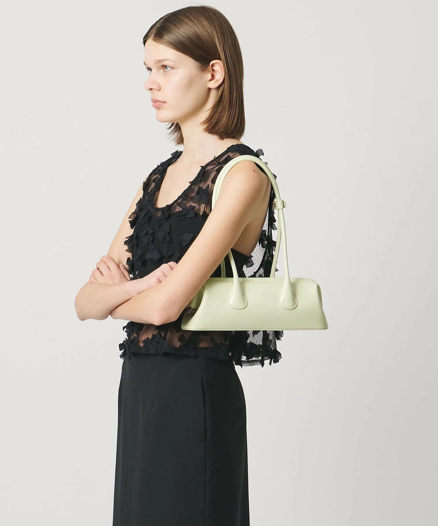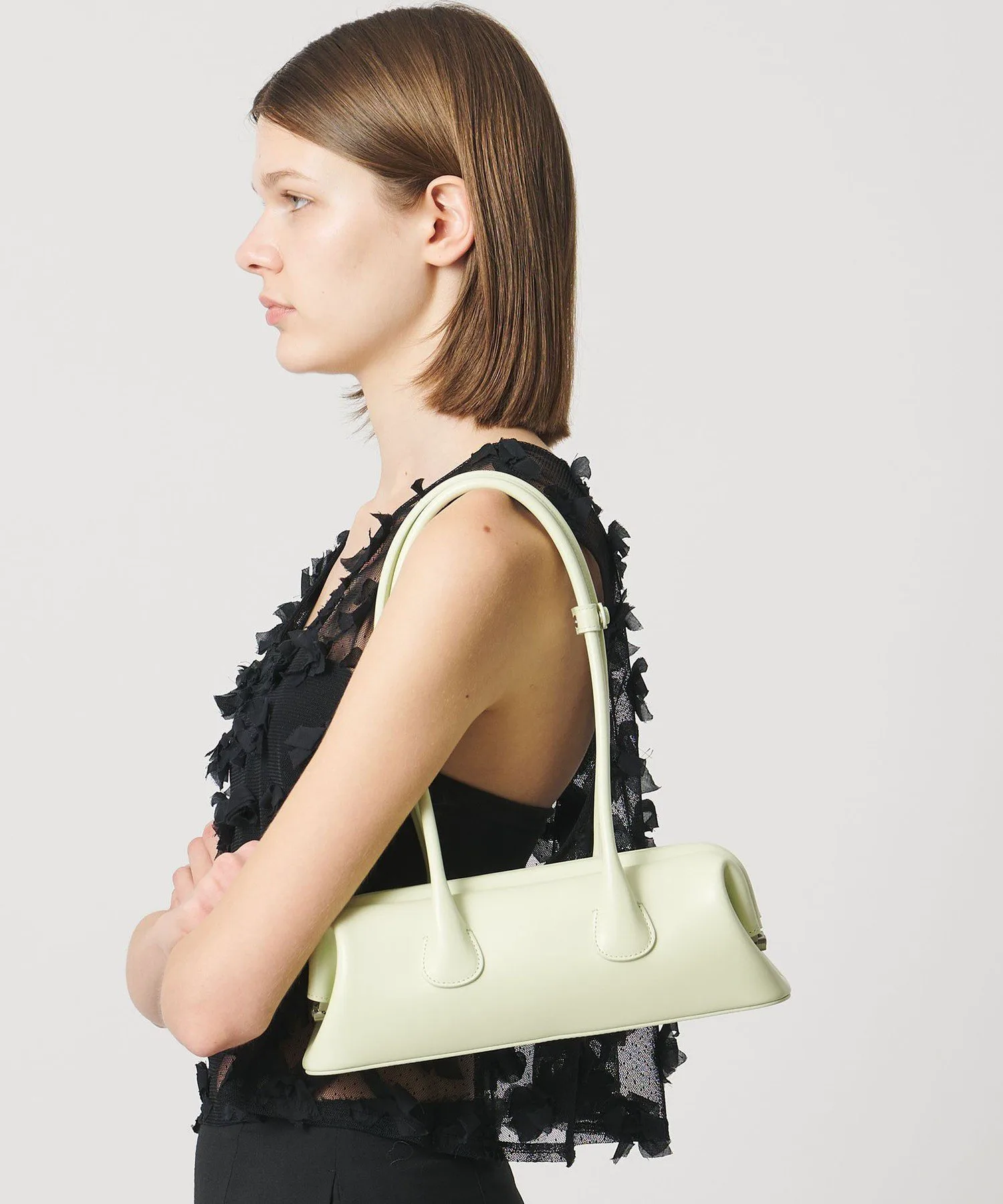 Уникальный дизайн с плавными изгибами и каркасной структурой делает ее минималистичной сумкой, подходящей для любого времени года.