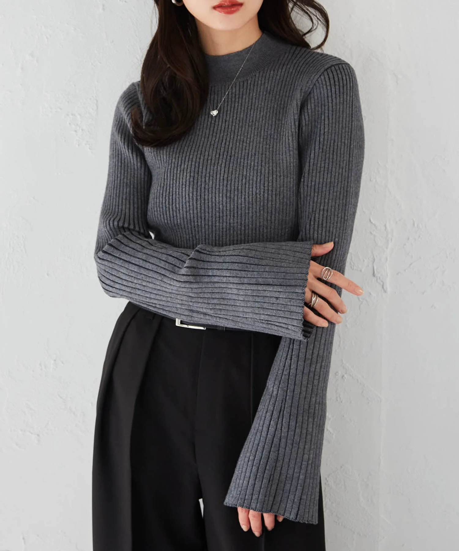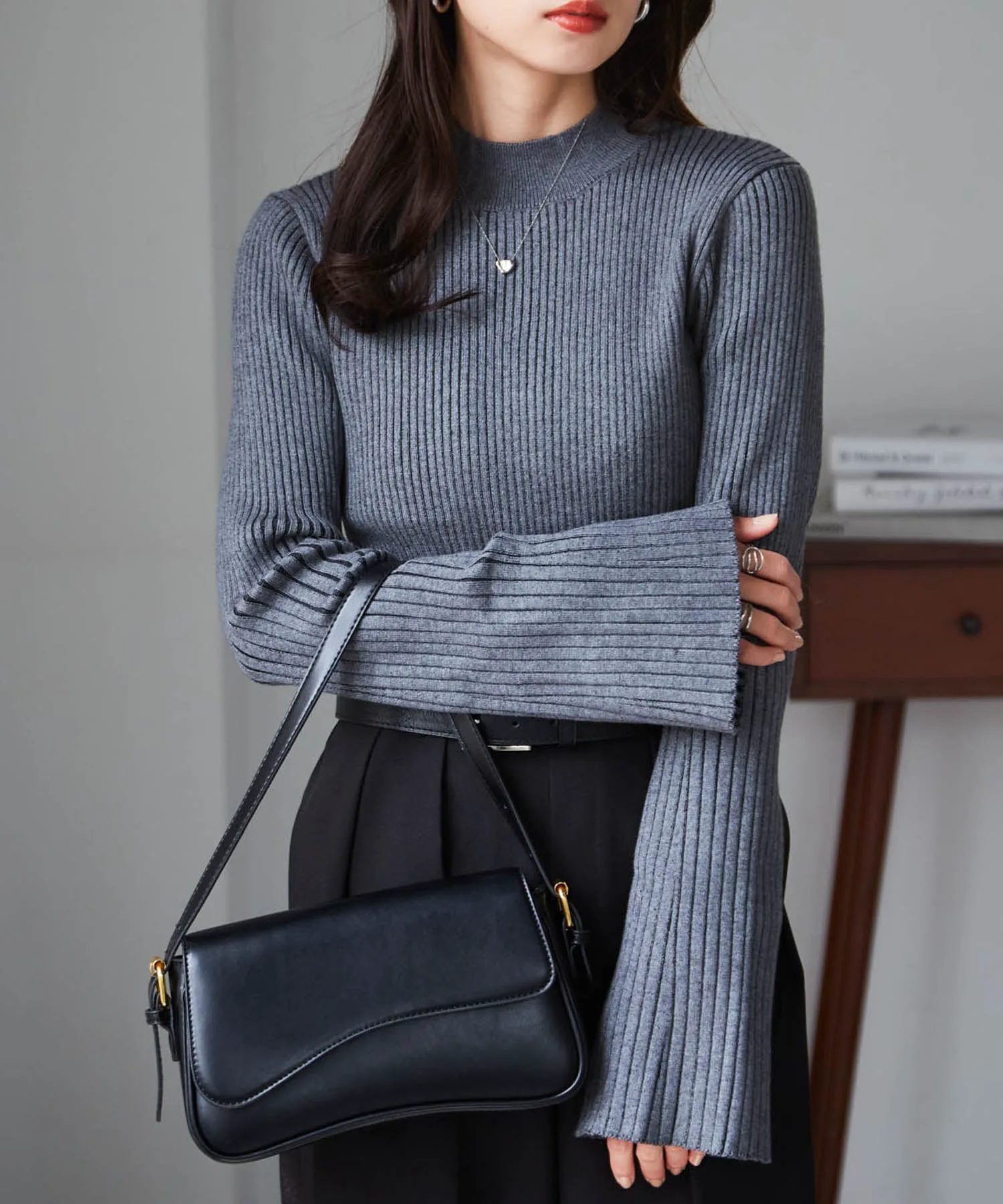 Вязаный пуловер с расклешенными рукавами, которые добавляют изюминку
