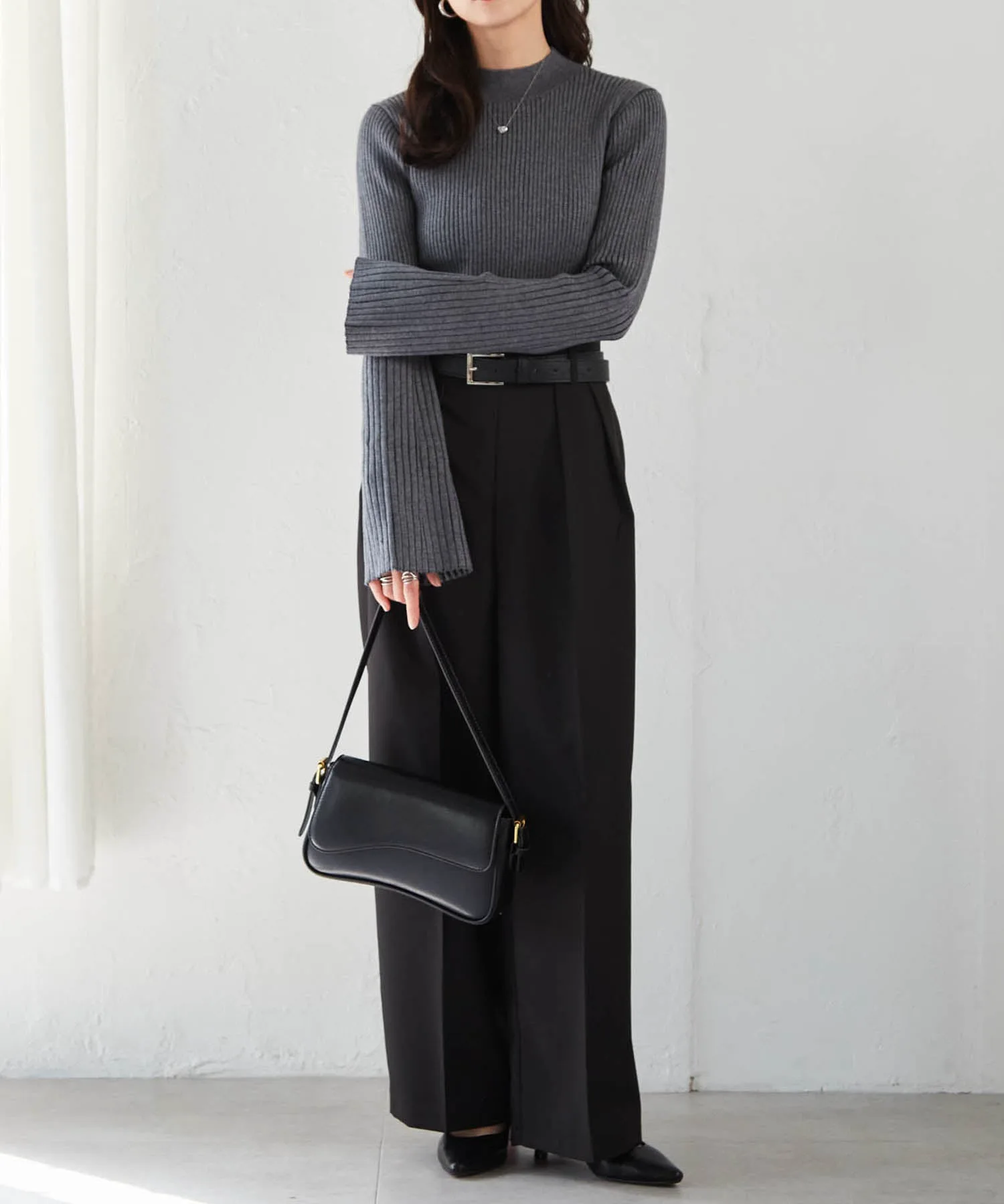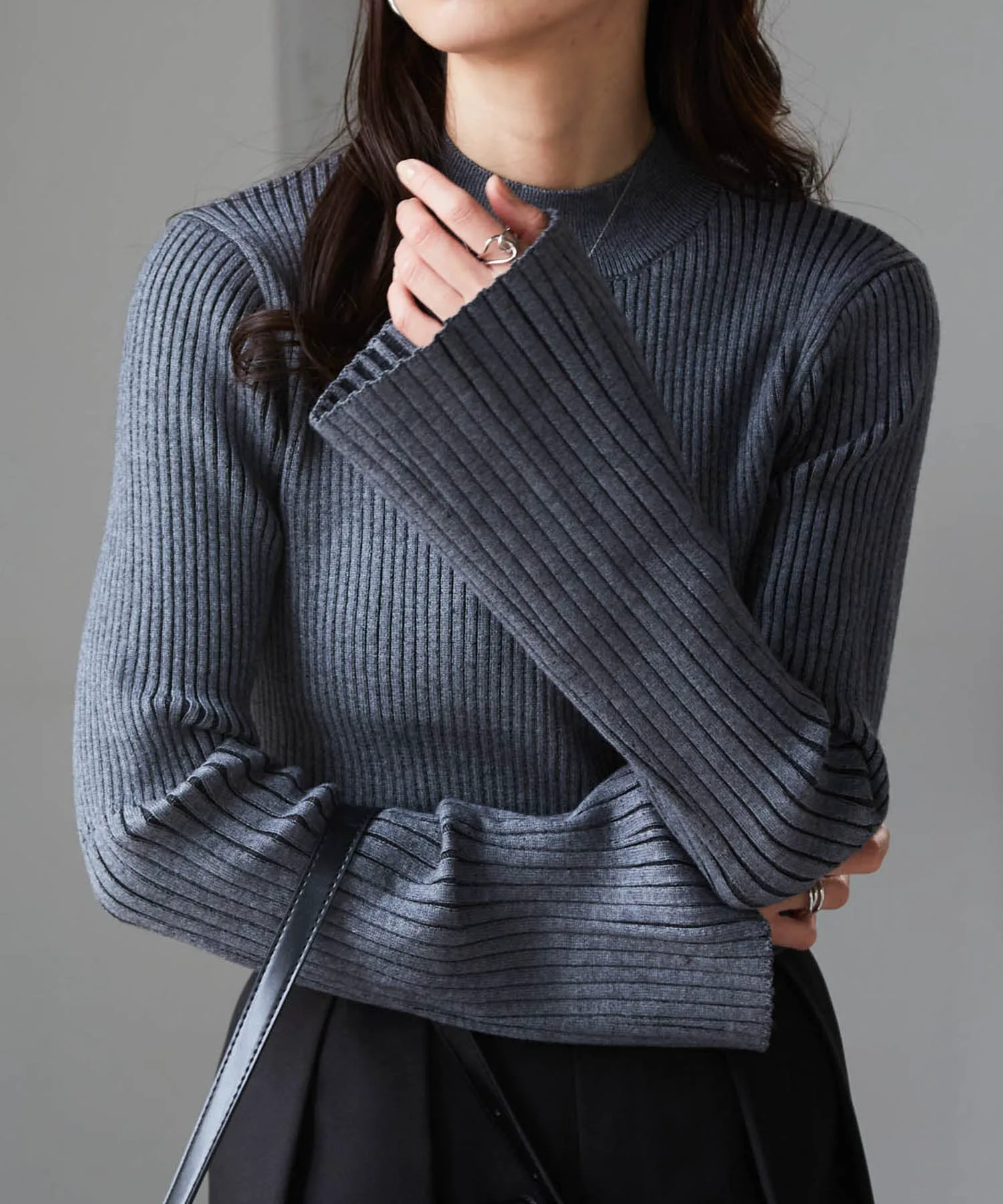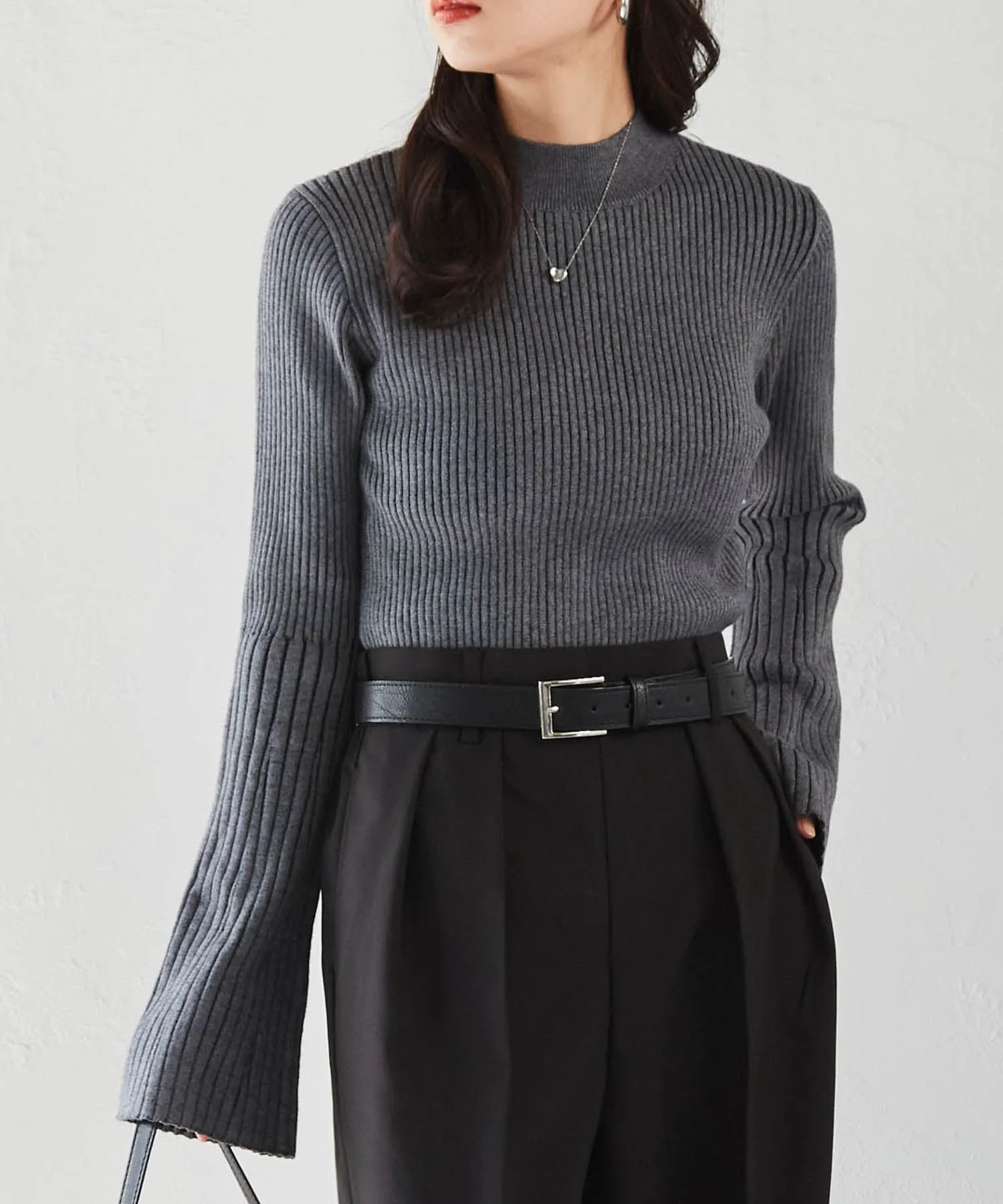 Несмотря на простой дизайн, трехмерная двухцветная гамма добавляет изюминку. Длинные расклешенные рукава с резинкой, расширяющейся к манжетам, являются изюминкой этой модели. ◎ Можно носить в сочетании с комбинезоном или платьем-майкой. ♪ Ткань