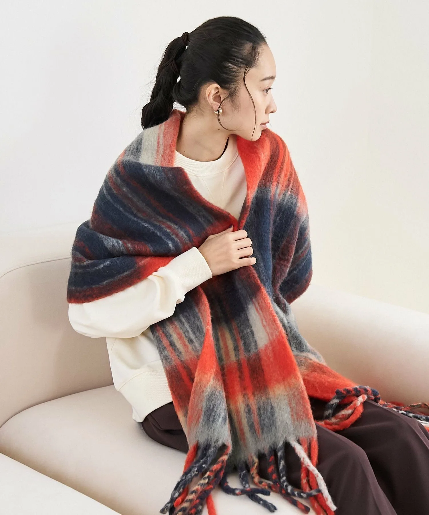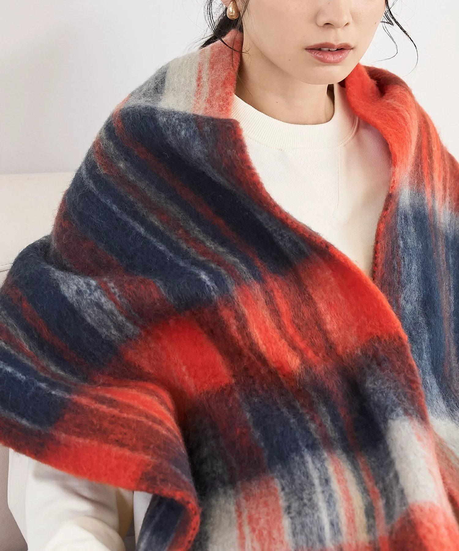 Объемный шарф PANKAJ отличается впечатляющим, красочным крупным клетчатым узором.