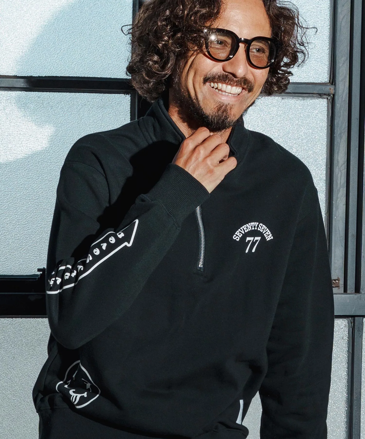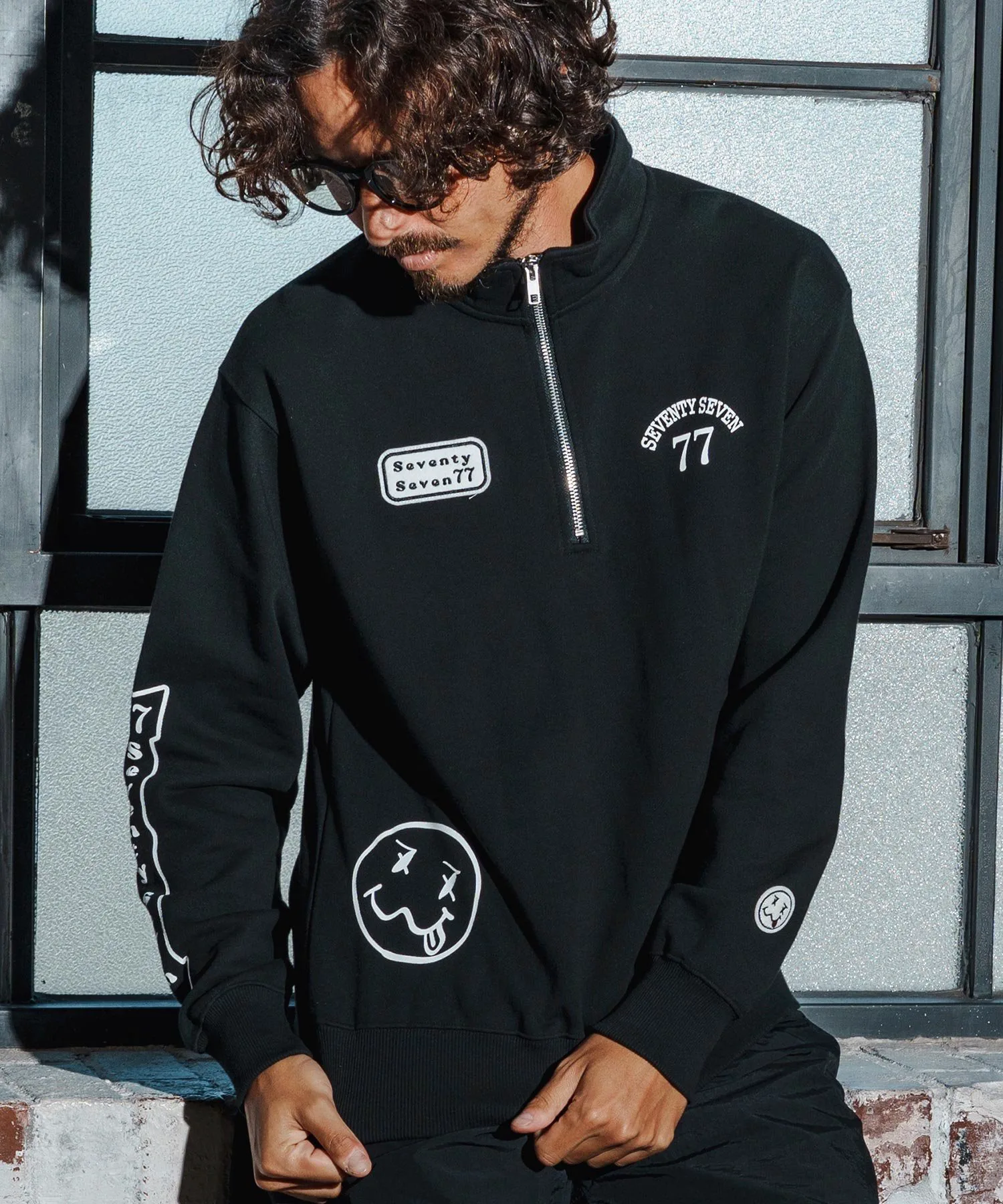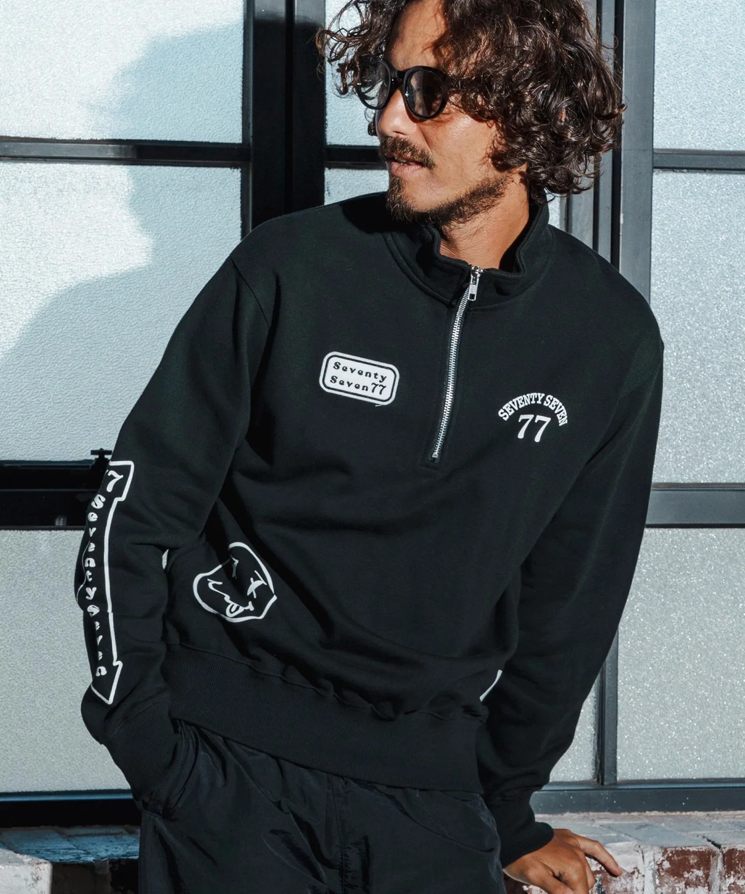 Свитшот с застежкой-молнией до середины груди, изготовленный из флисовой ткани средней плотности.