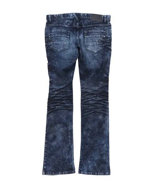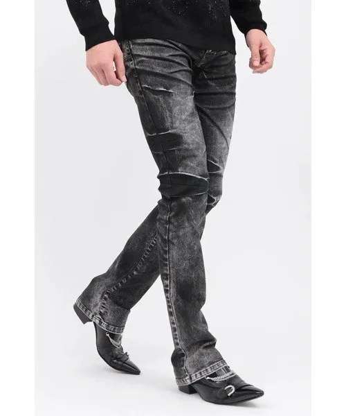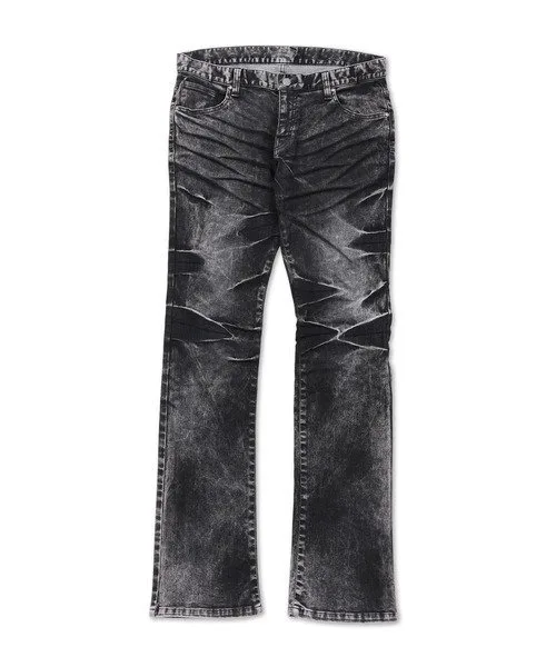 Контраст между выбеленными участками от базовой стирки и темными участками, созданными закалкой, создает эффектный образ.