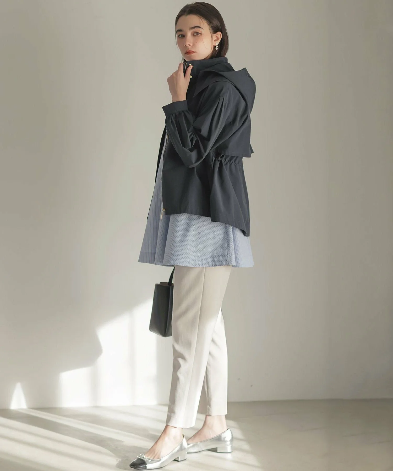 Капюшон с воротником отстегивается на молнию, что делает его отличным выбором для ношения в двух направлениях. Шнурок на талии сзади позволяет регулировать силуэт, создавая различные образы, подходящие к вашему наряду.