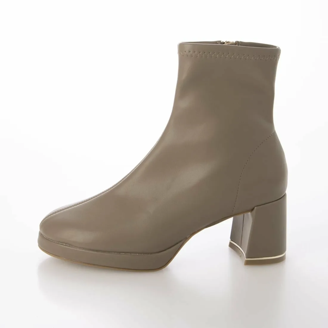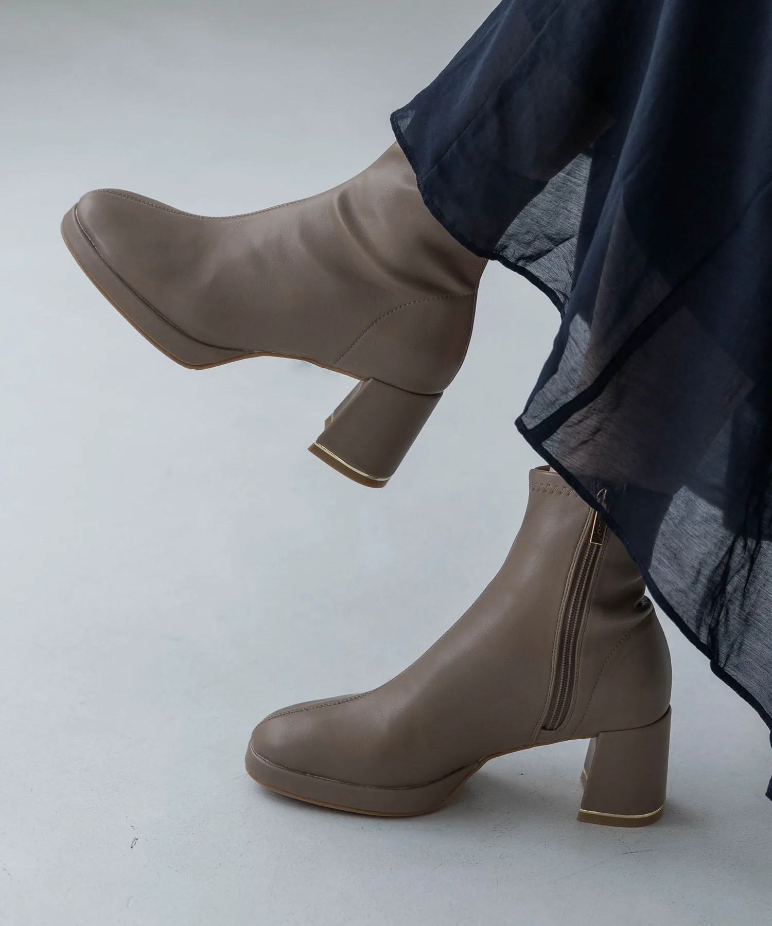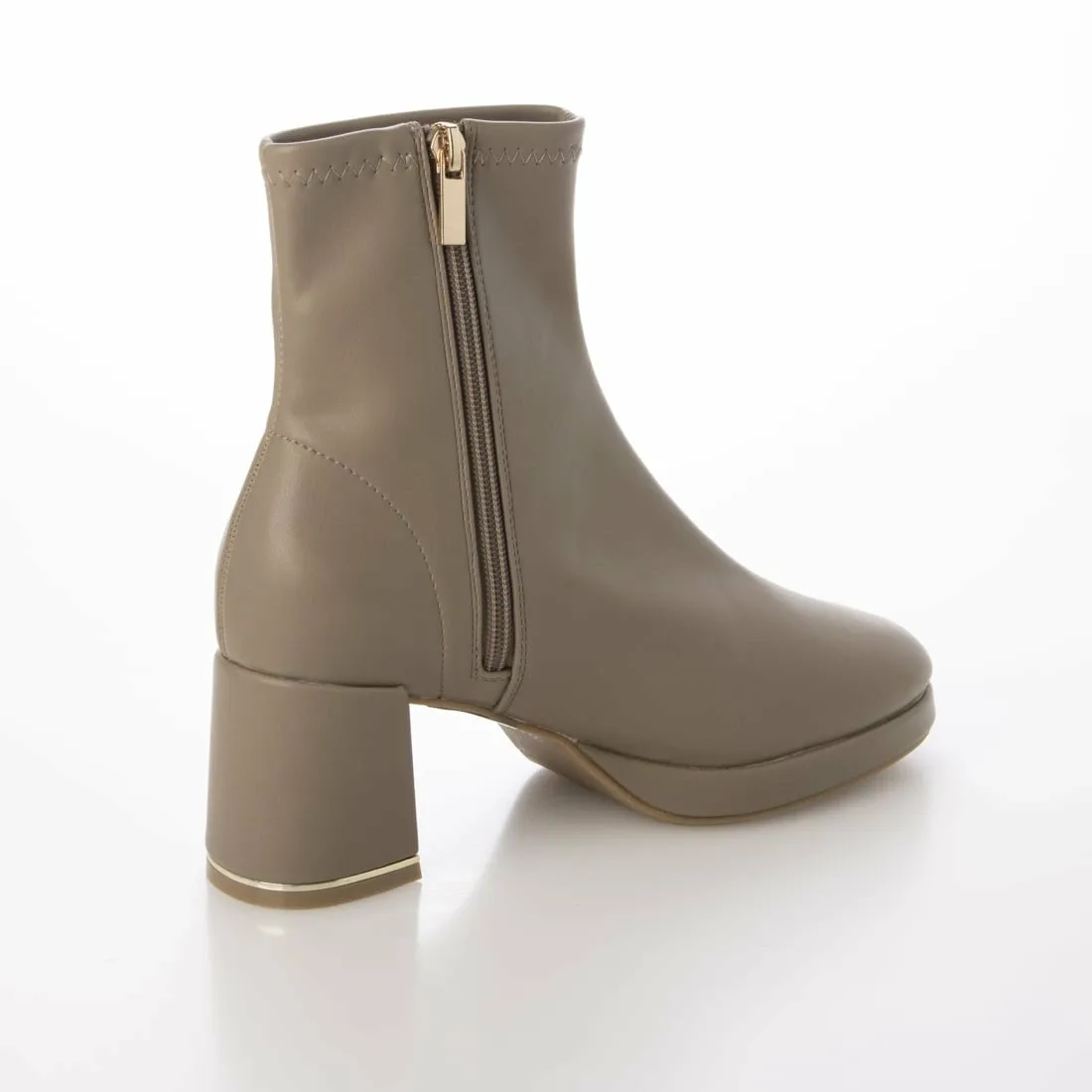 Эти короткие сапоги украшены изящной золотой линией на каблуке, что придает им утонченный и роскошный вид. Простые короткие сапоги — это базовый элемент осенне-зимнего гардероба, отлично сочетающийся с любым нарядом! Эластичный материал исключает излишки ткани вокруг голенища, что является приятным бонусом, поскольку сапоги плотно облегают стопу. Благодаря плавному изгибу их легко носить даже на каблуке высотой 7 см, и они не так сильно устают. ◎