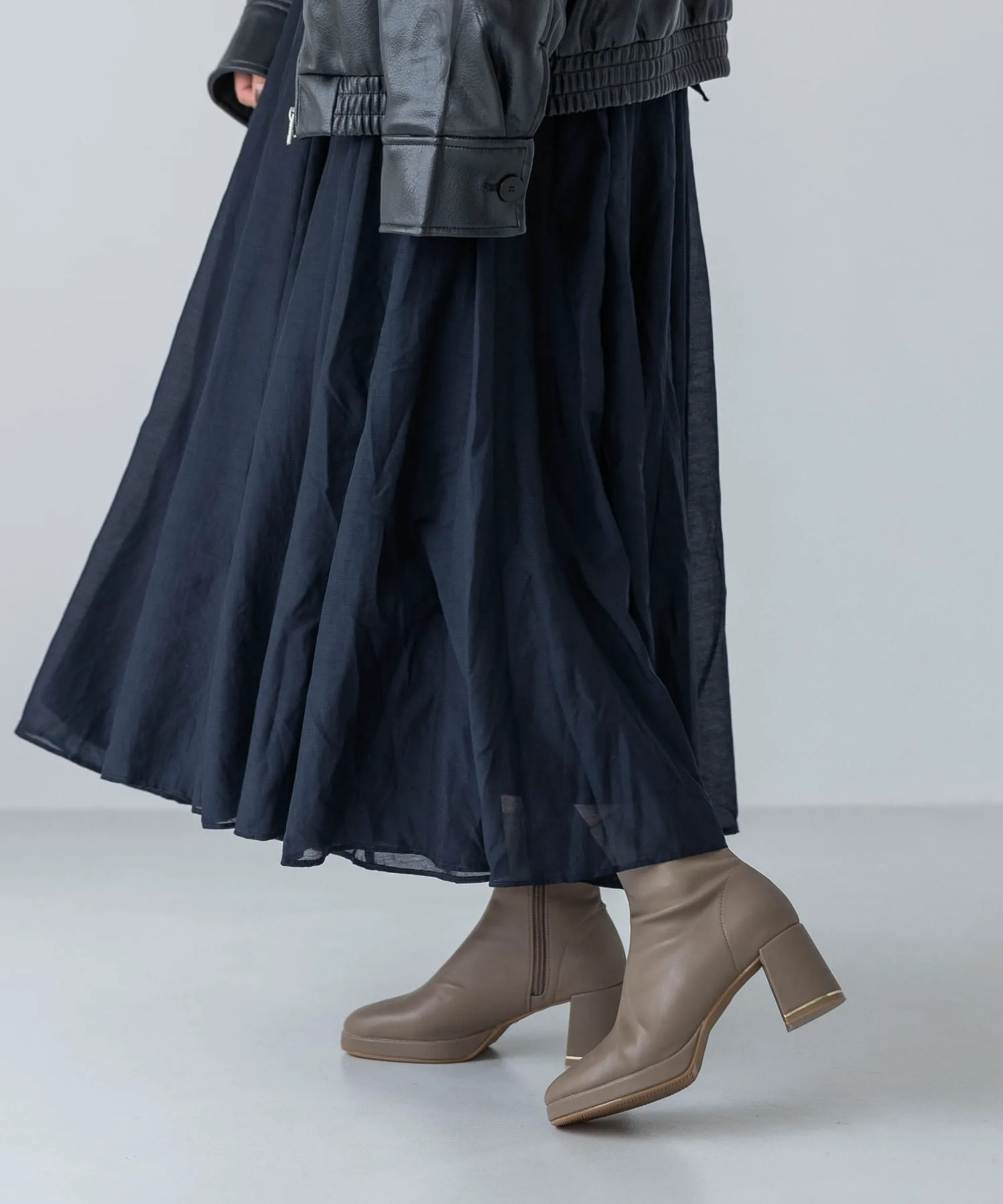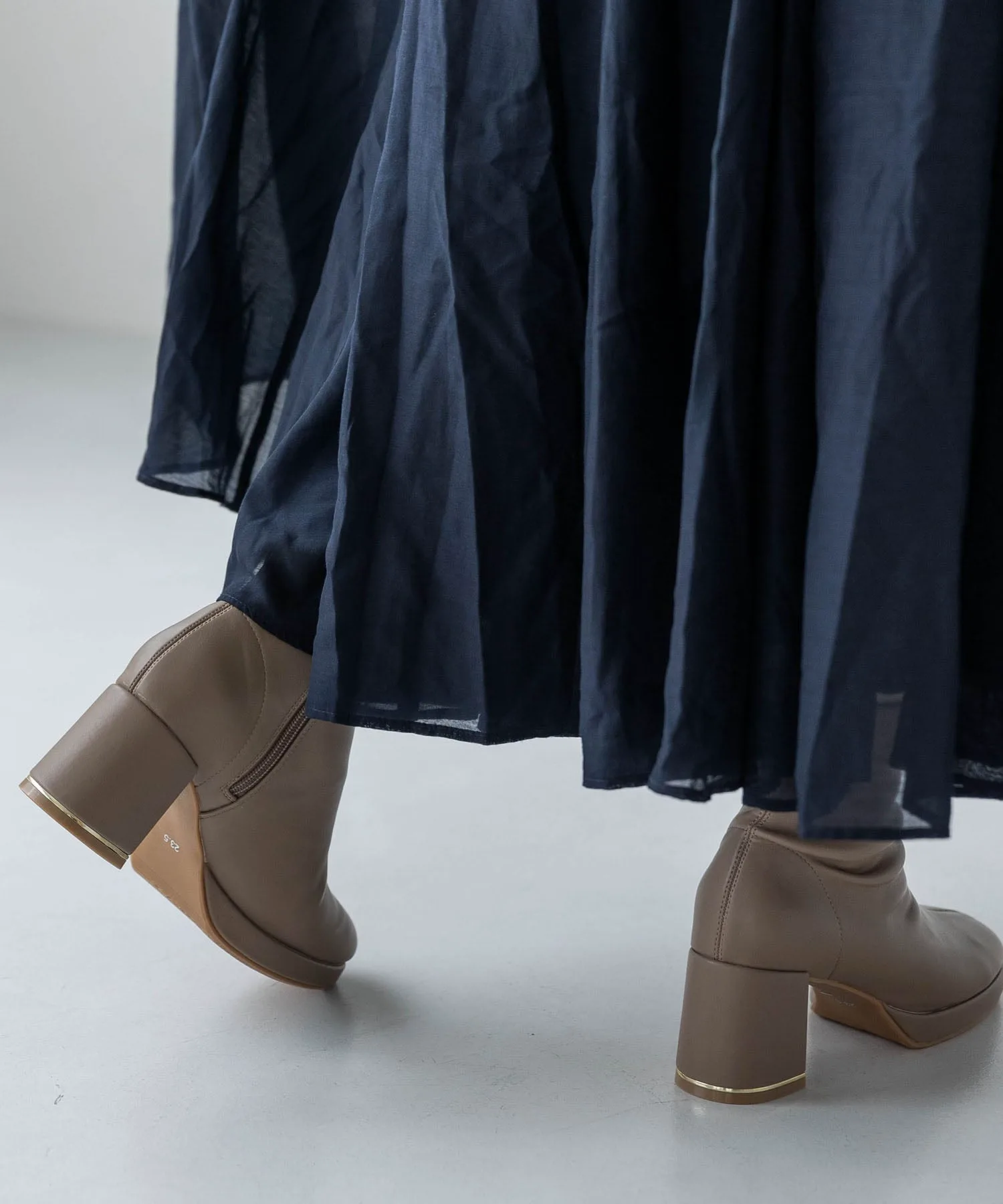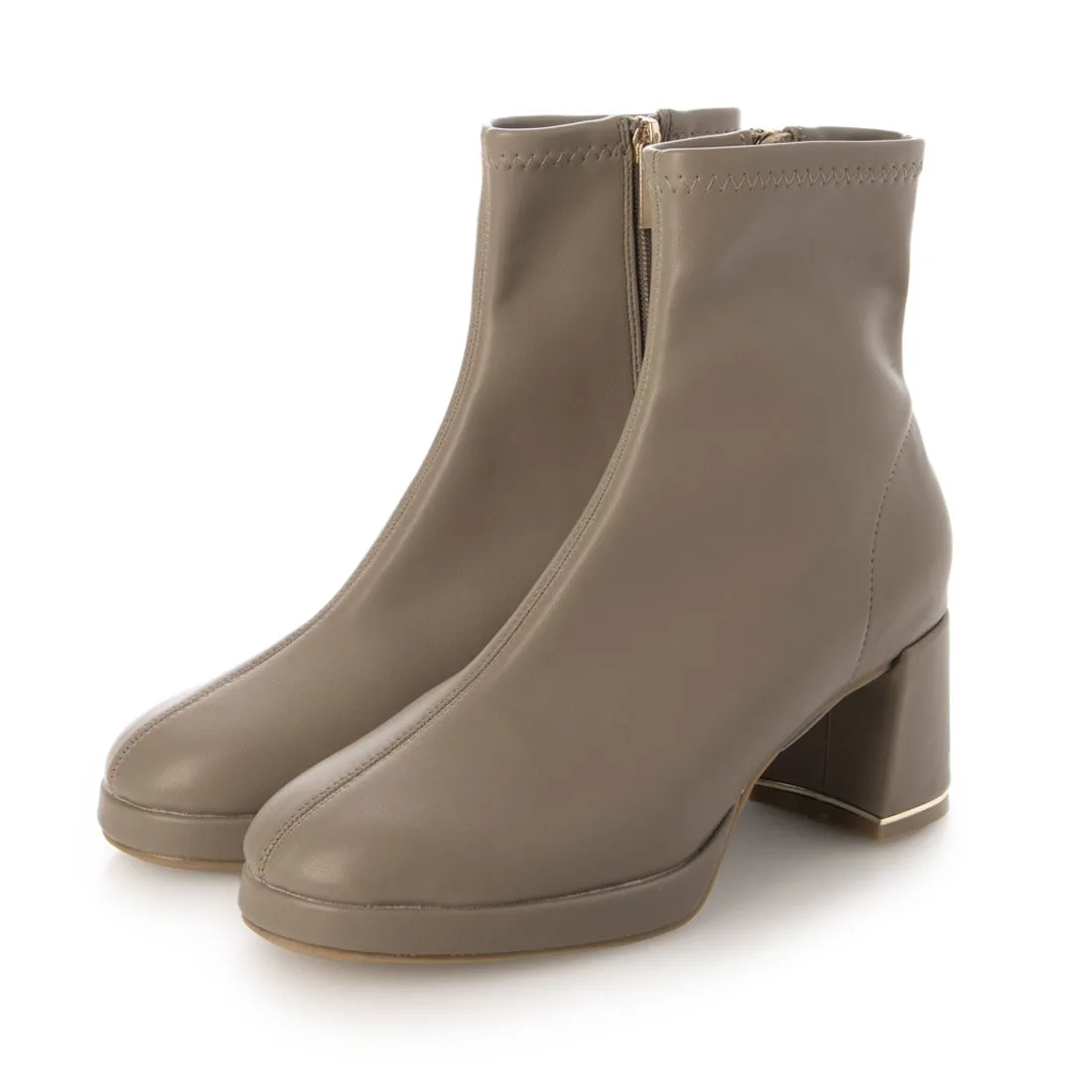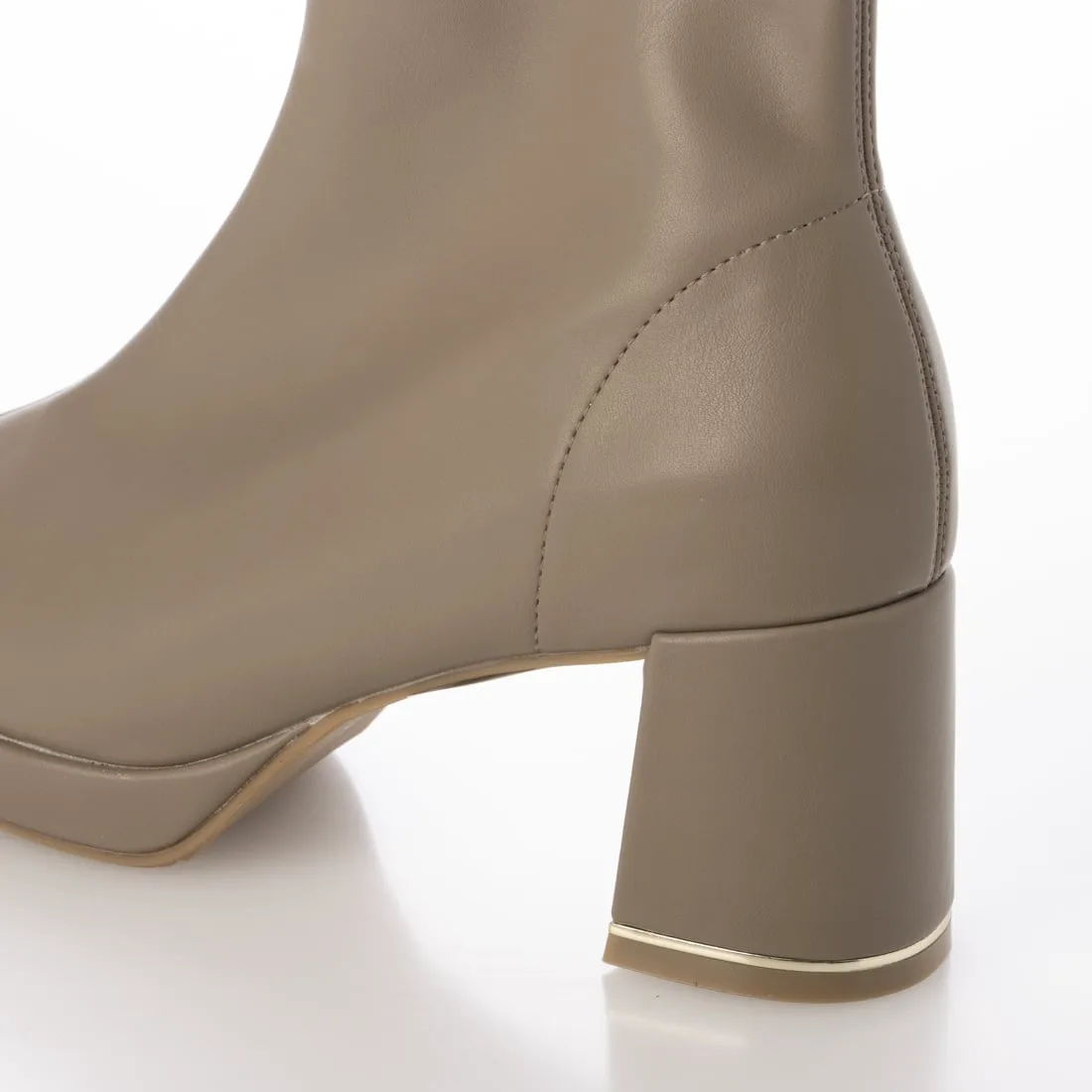 Эти короткие сапоги украшены изящной золотой линией на каблуке, что придает им утонченный и роскошный вид. Простые короткие сапоги — это базовый элемент осенне-зимнего гардероба, отлично сочетающийся с любым нарядом! Эластичный материал исключает излишки ткани вокруг голенища, что является приятным бонусом, поскольку сапоги плотно облегают стопу. Благодаря плавному изгибу их легко носить даже на каблуке высотой 7 см, и они не так сильно устают. ◎