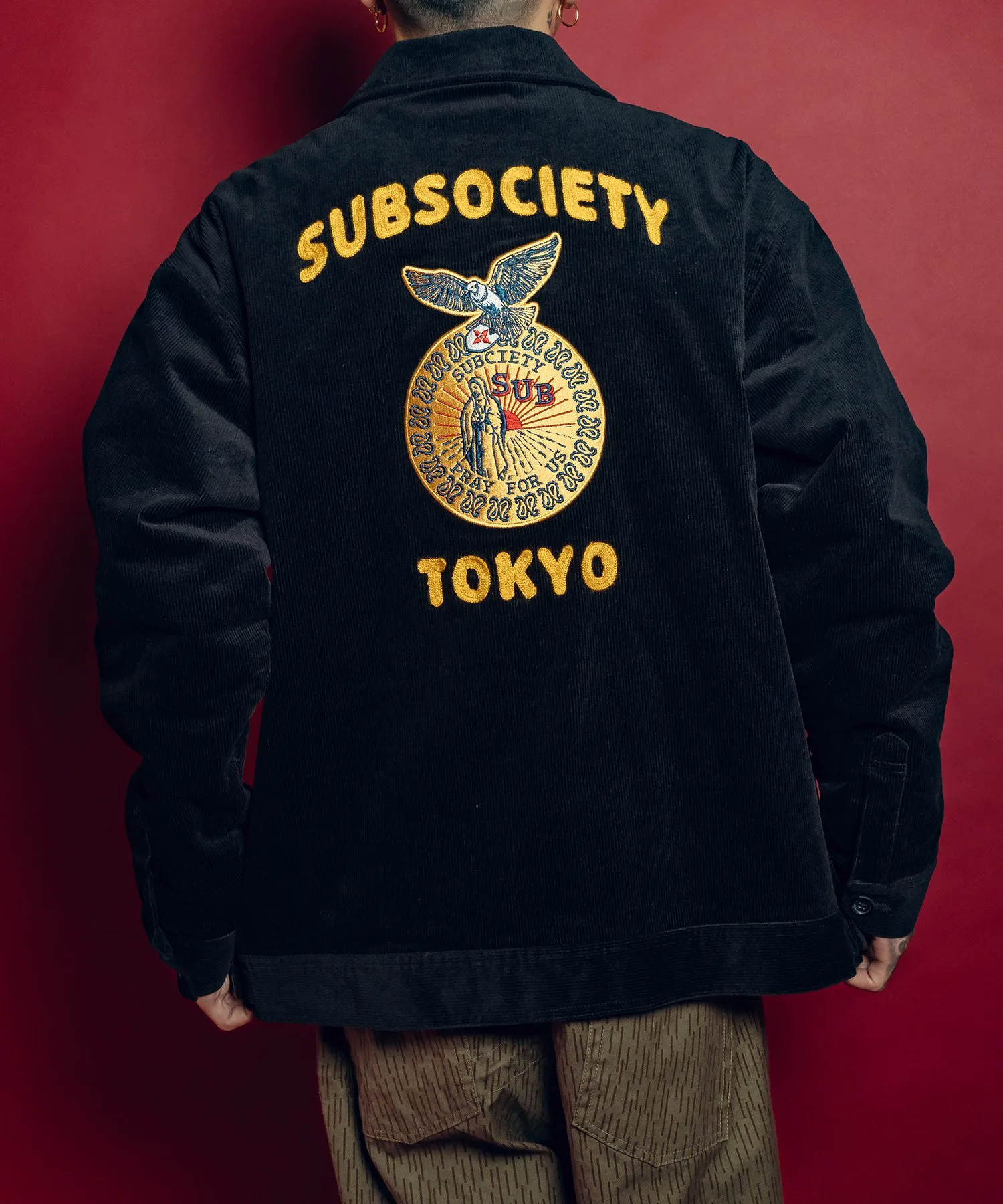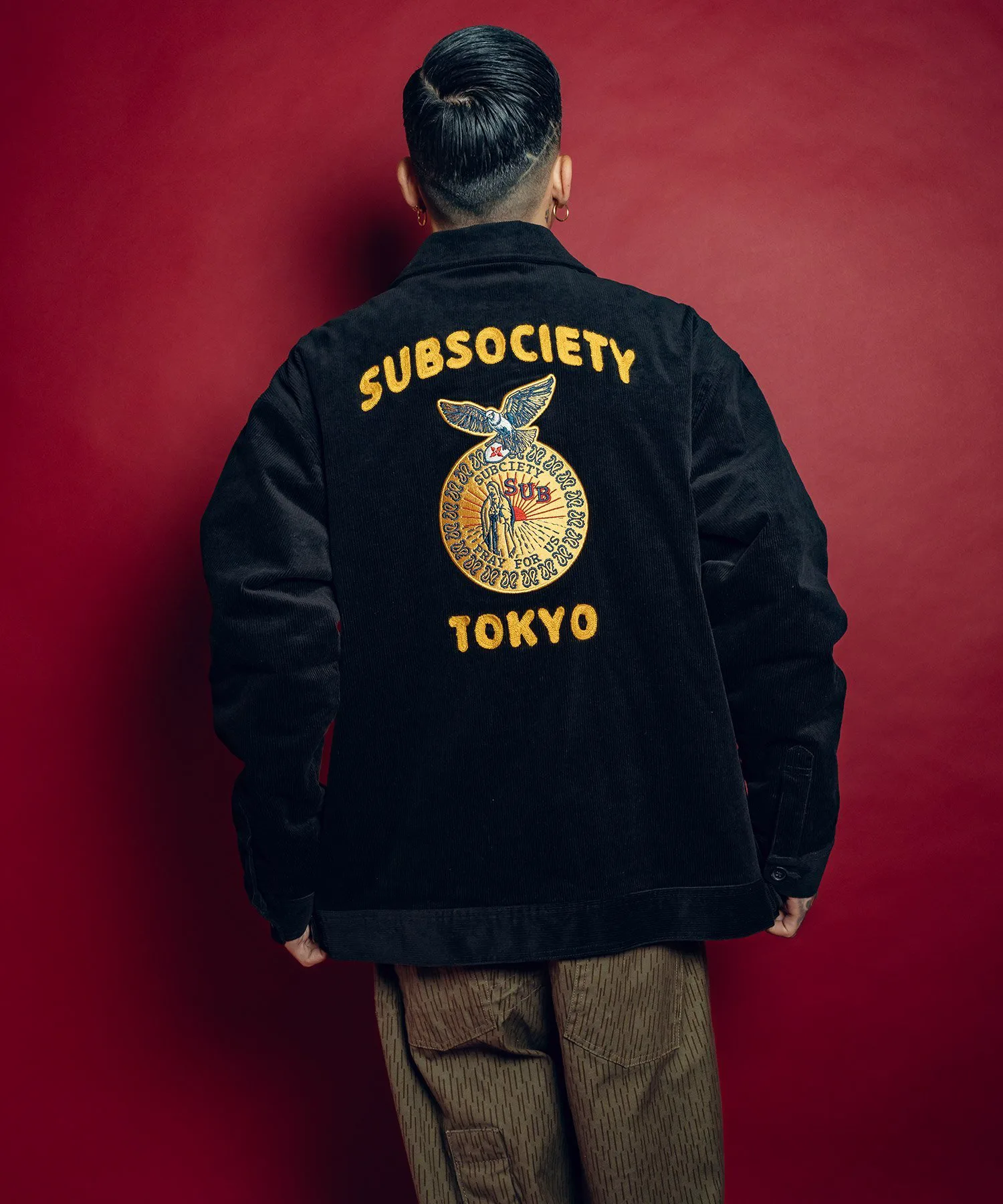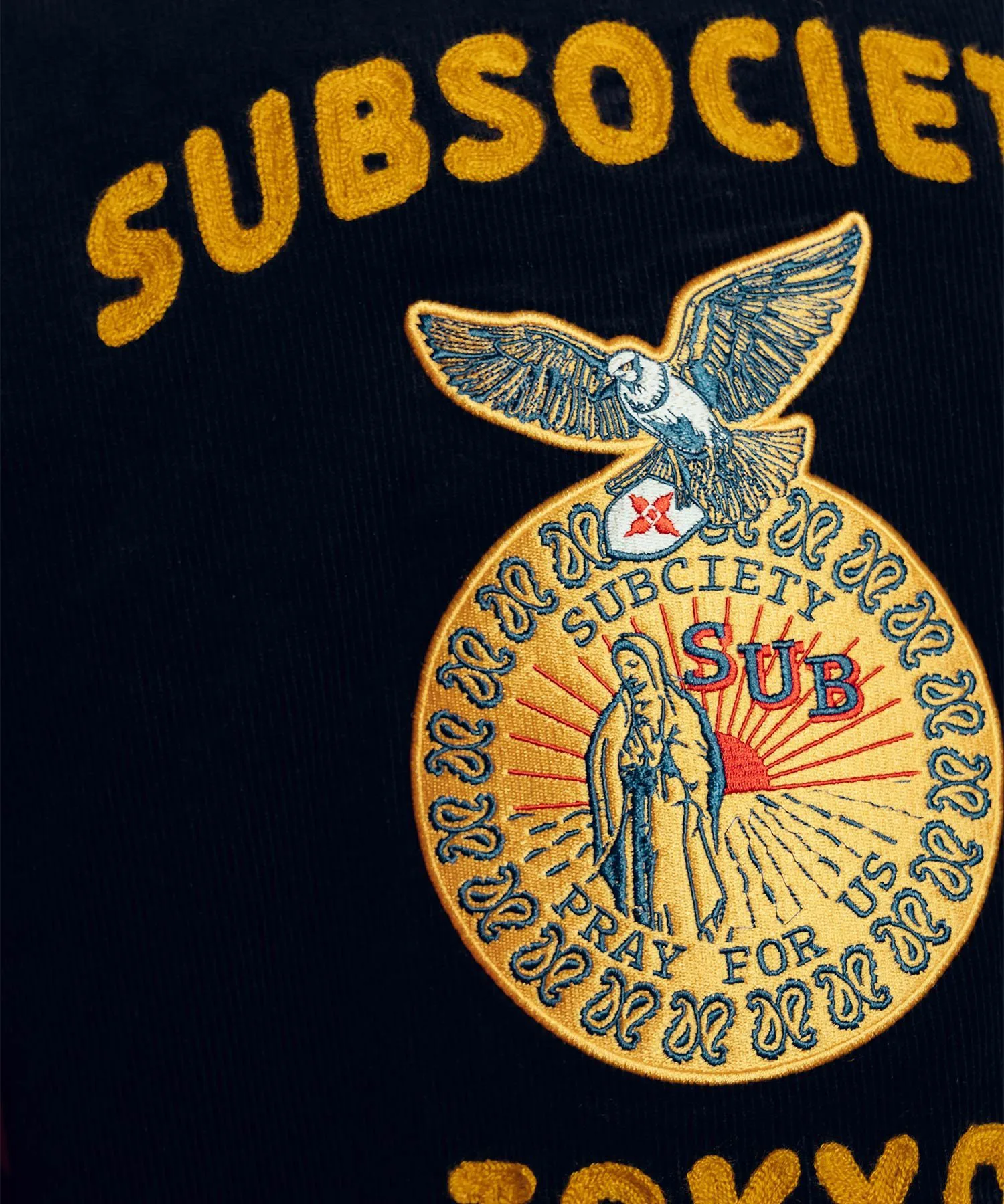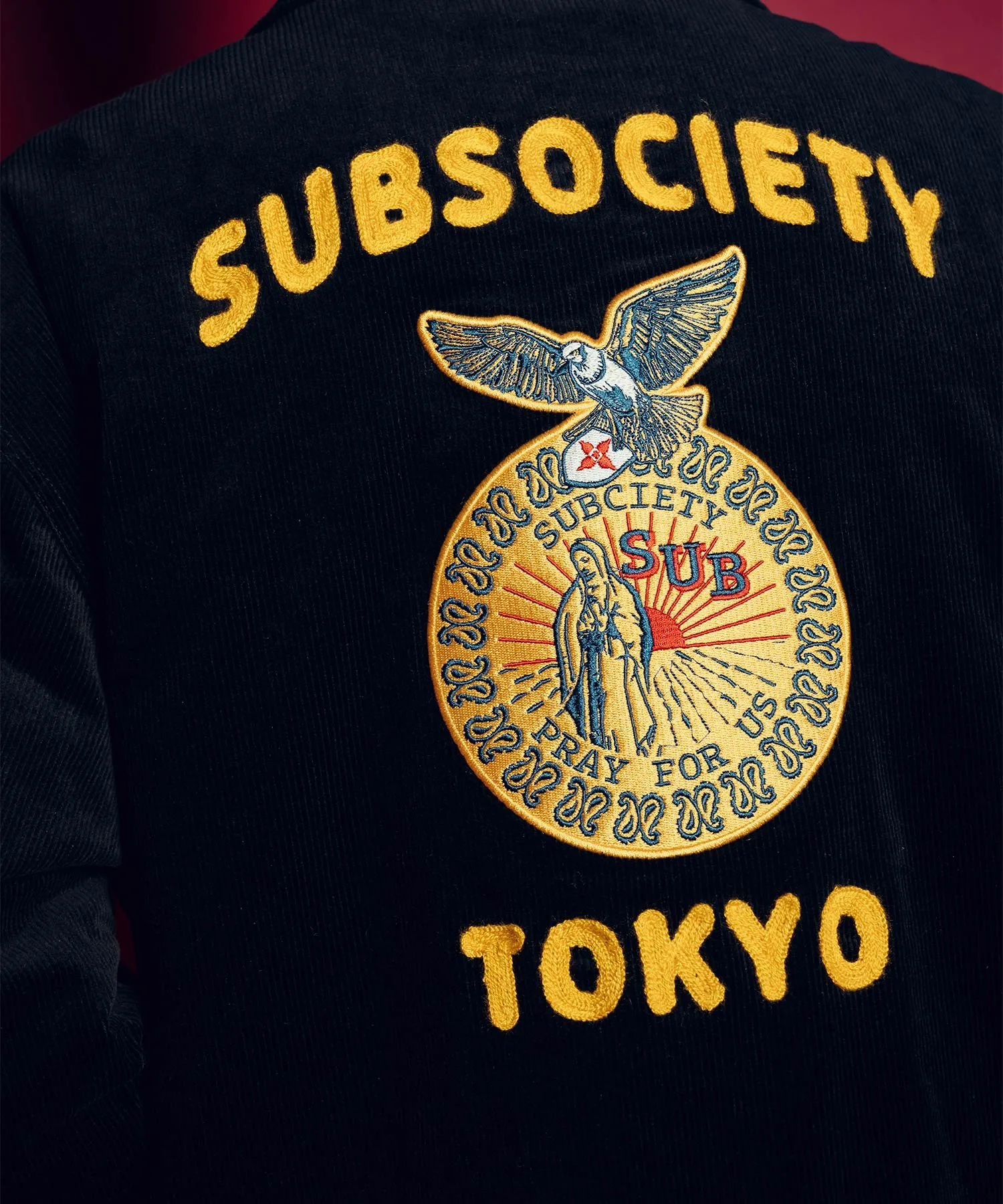 На левой стороне груди, а также над и под нашивкой на спине вышиты слова «SUBSOCIETYTOKYO».