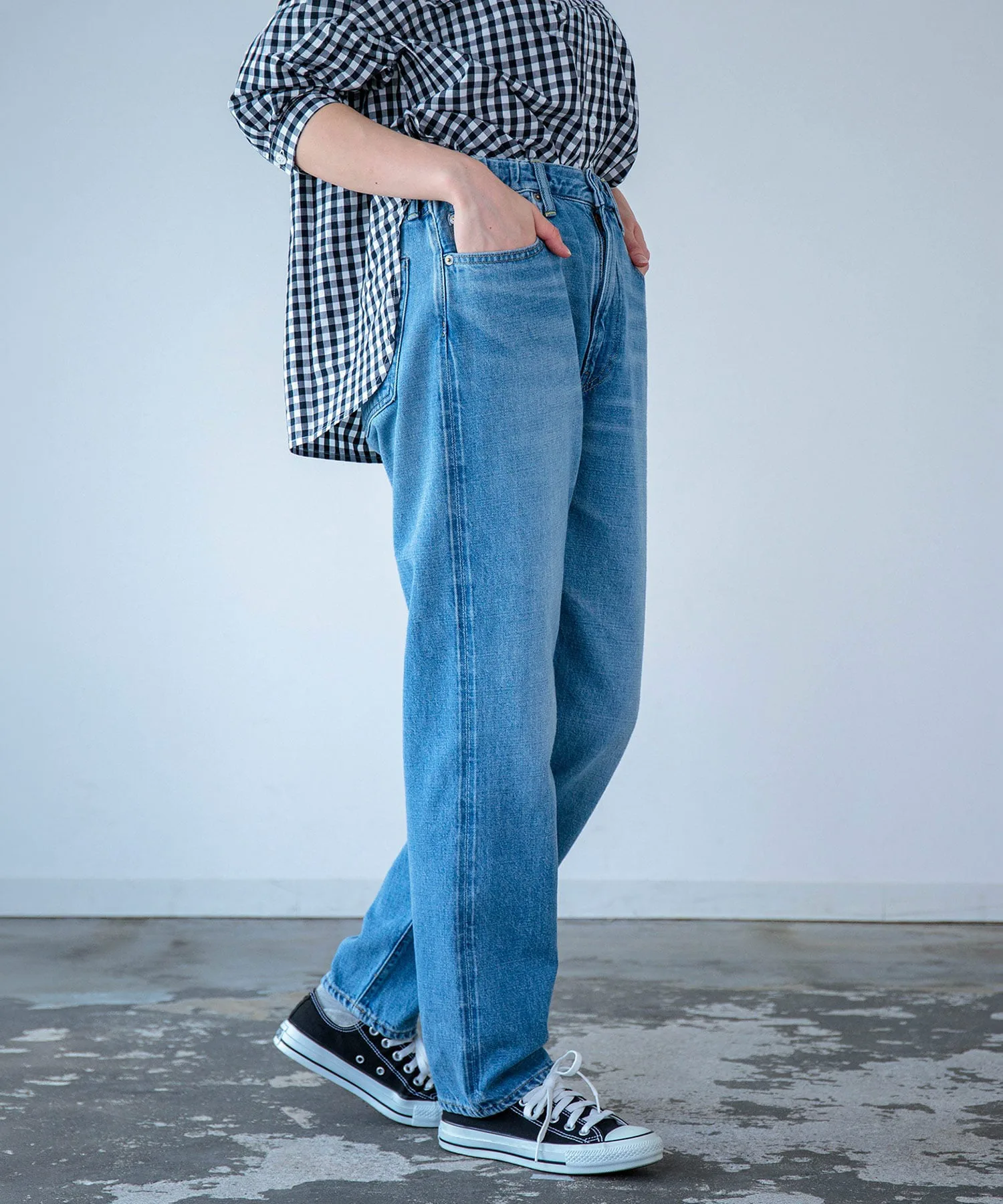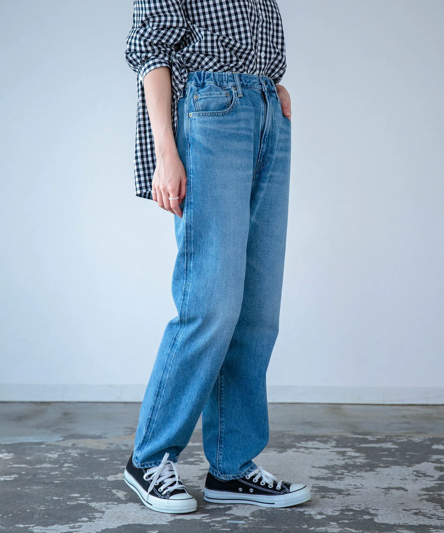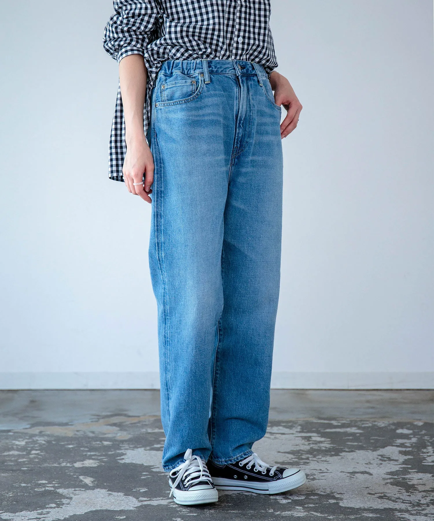 ・Естественная потертость, которая разнашивается с первой же носки・Легкая текстура денима, которую можно носить круглый год・Эластичный пояс на шнуровке для комфортной посадки・Свободный крой в области бедер・Узкие зауженные штанины・Деним Окаяма/Джинсы Кодзима