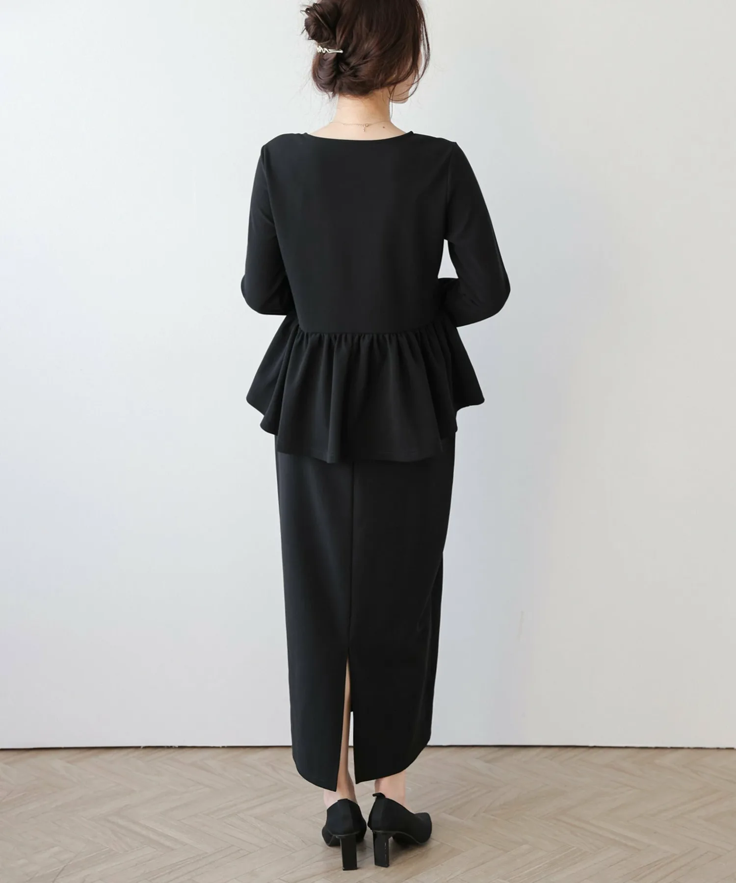 Высокая талия и расклешенная баска естественным образом