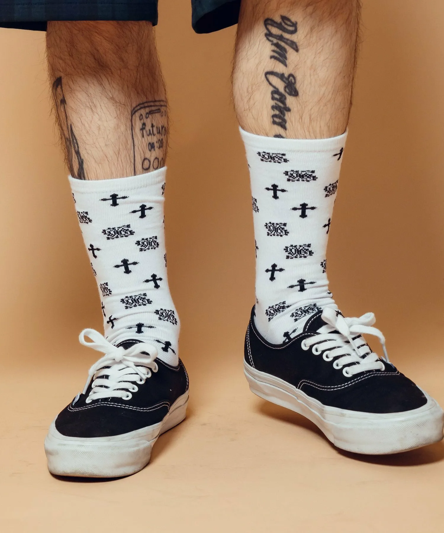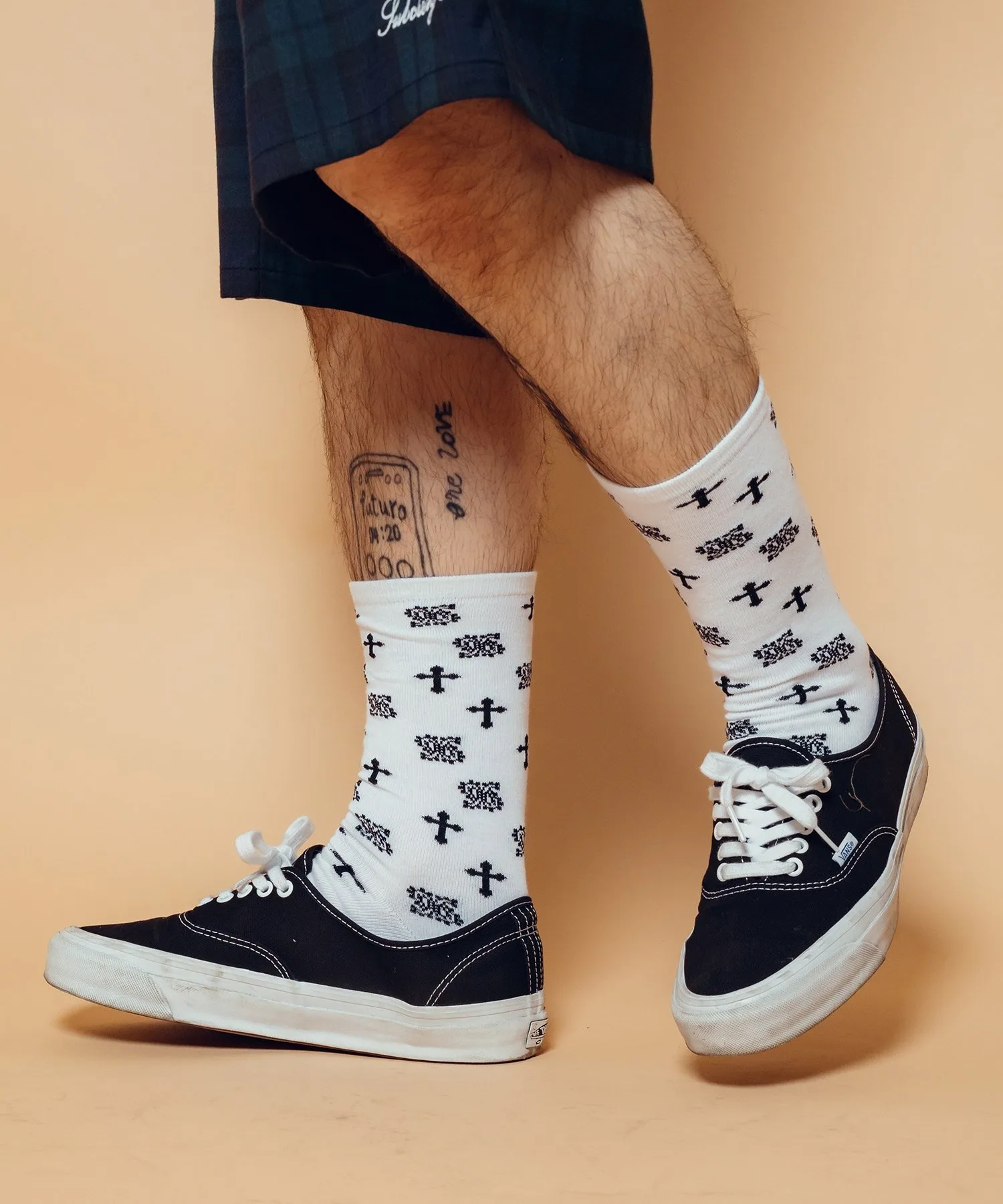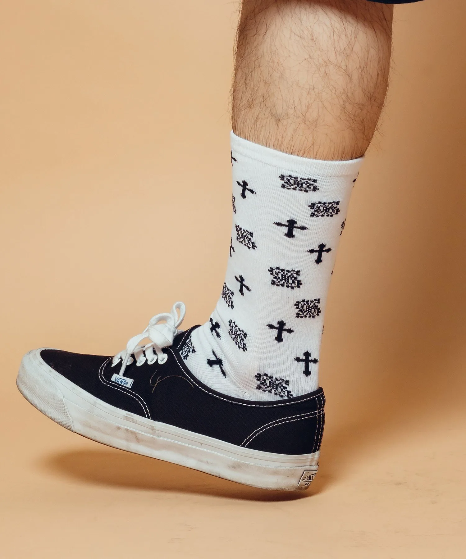 Носки с принтом по всей поверхности, украшенные фирменными узорами пейсли и креста, выполненными жаккардовым плетением.