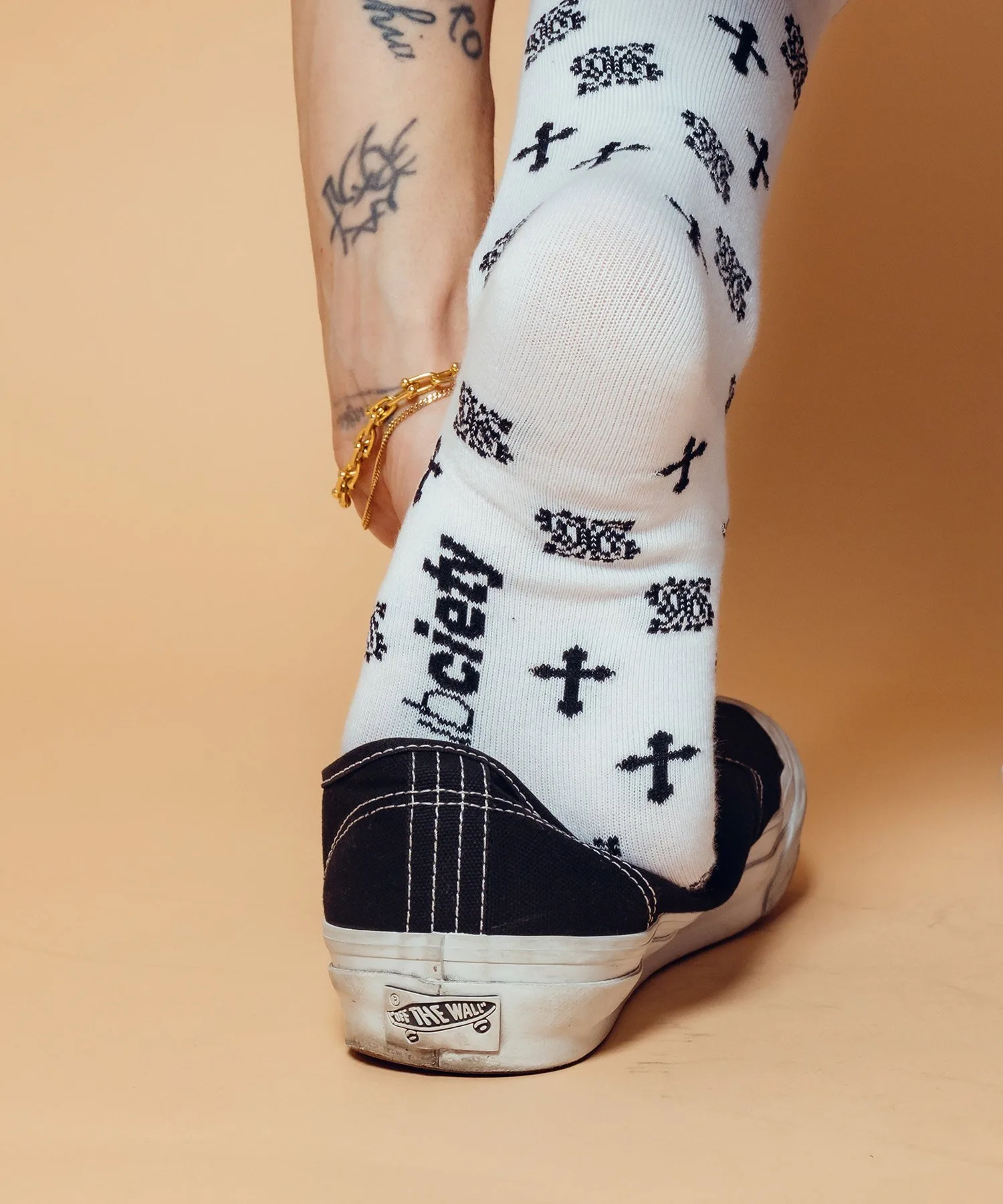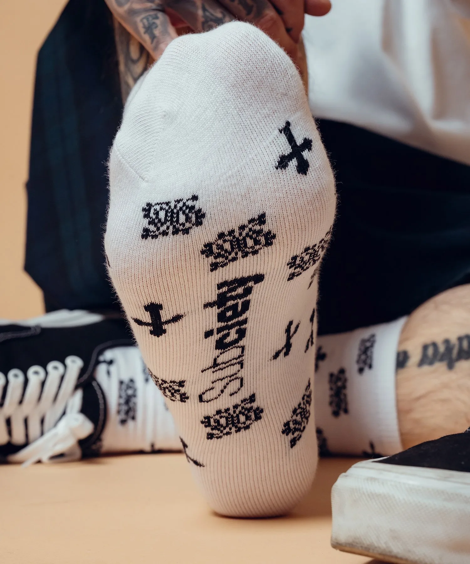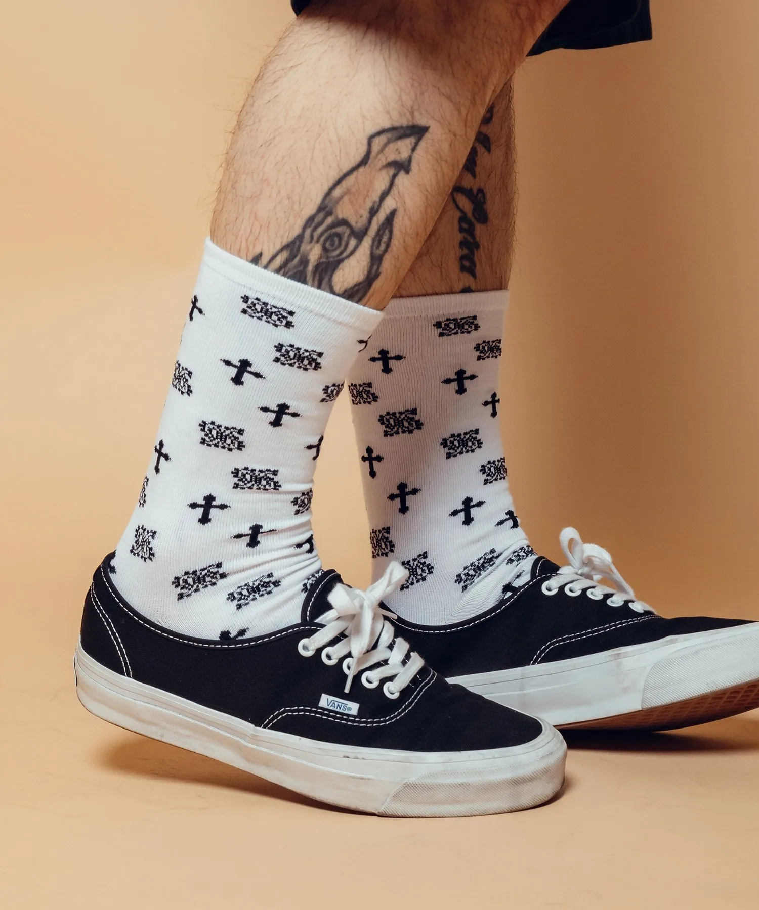 Носки с принтом по всей поверхности, украшенные фирменными узорами пейсли и креста, выполненными жаккардовым плетением.