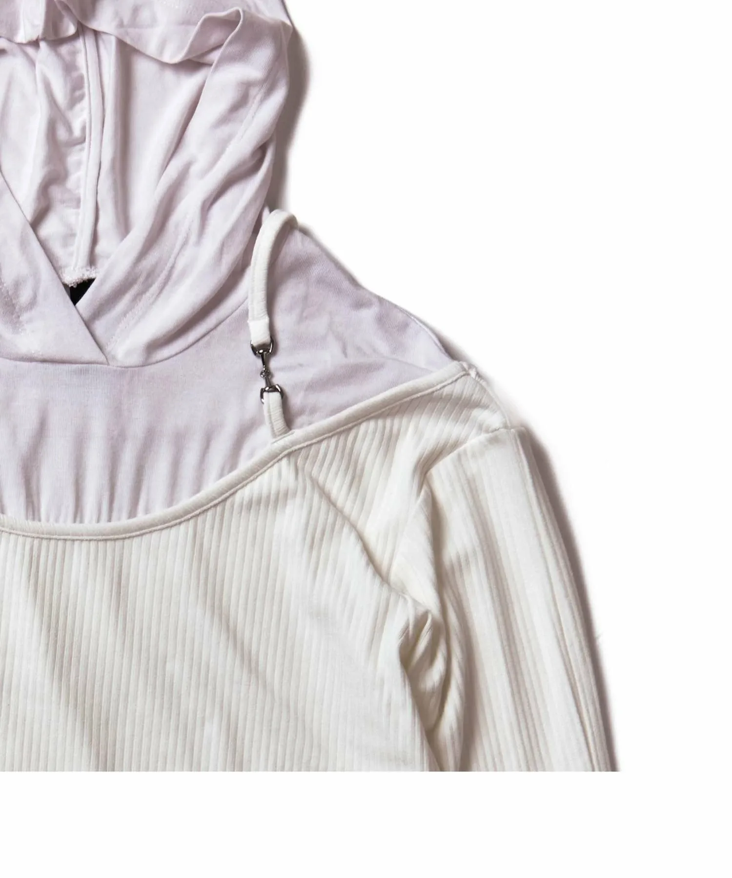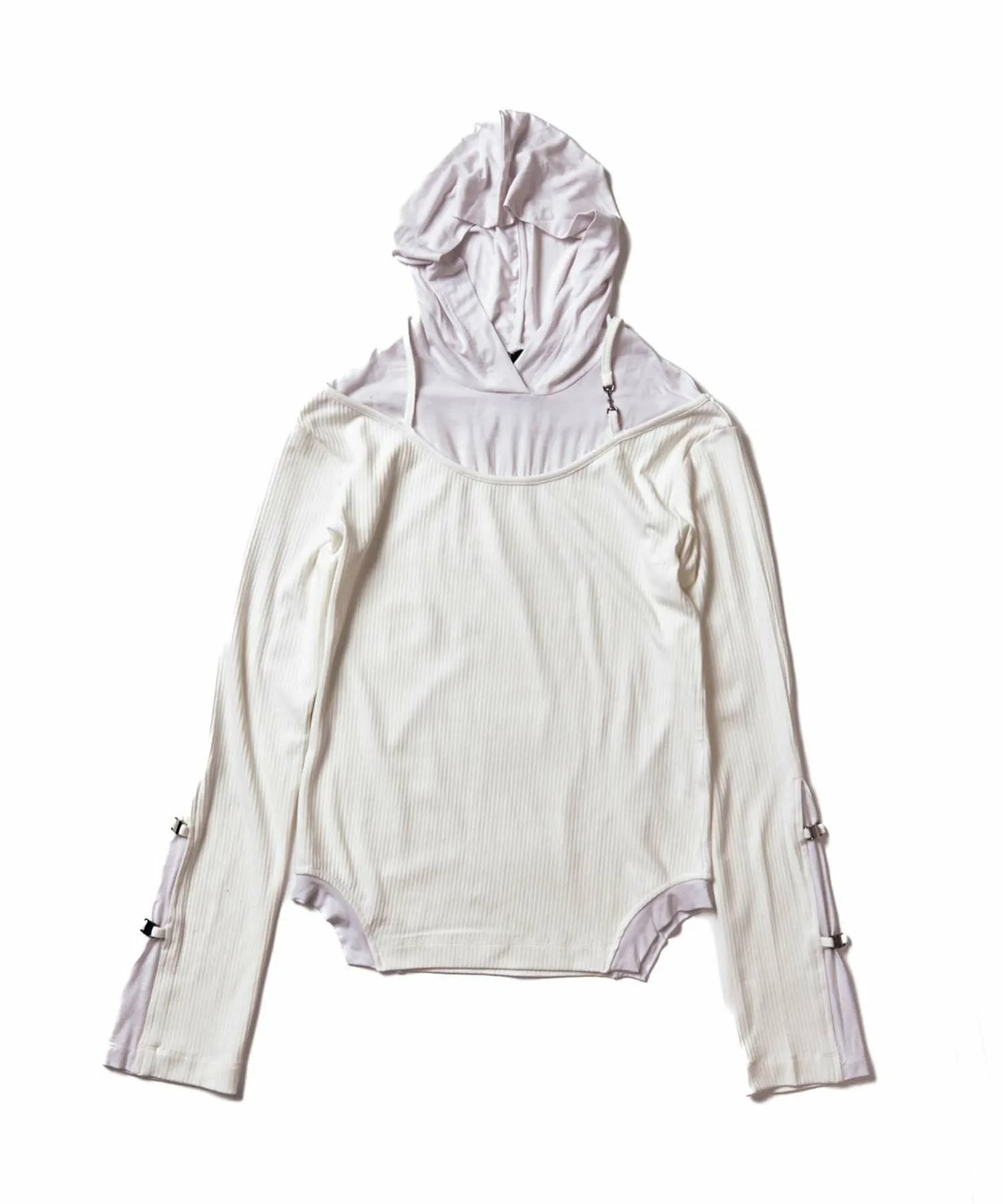 Этот топ позволяет создавать многослойные образы, а капюшон, прикрепленный к облегающему верху, придает ему современный вид.