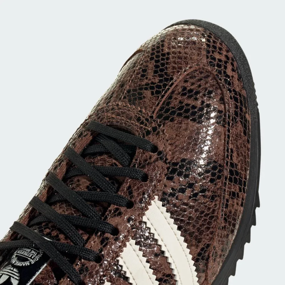 Кроссовки adidas Sleeveless 72 OG вдохновлены архивной моделью 1972 года, которая произвела революцию в индустрии легкой обуви. Гладкий кожаный верх украшен змеиным принтом, создающим едва заметную текстуру. Классическая низкопрофильная межподошва и резиновая подошва различаются по высоте и форме, напоминая об оригинальном дизайне.