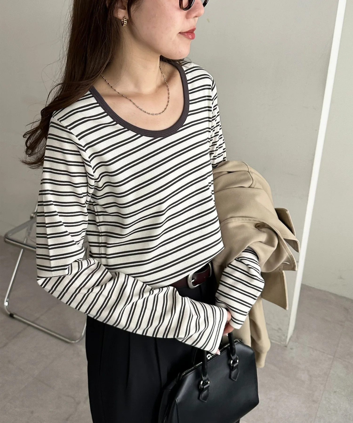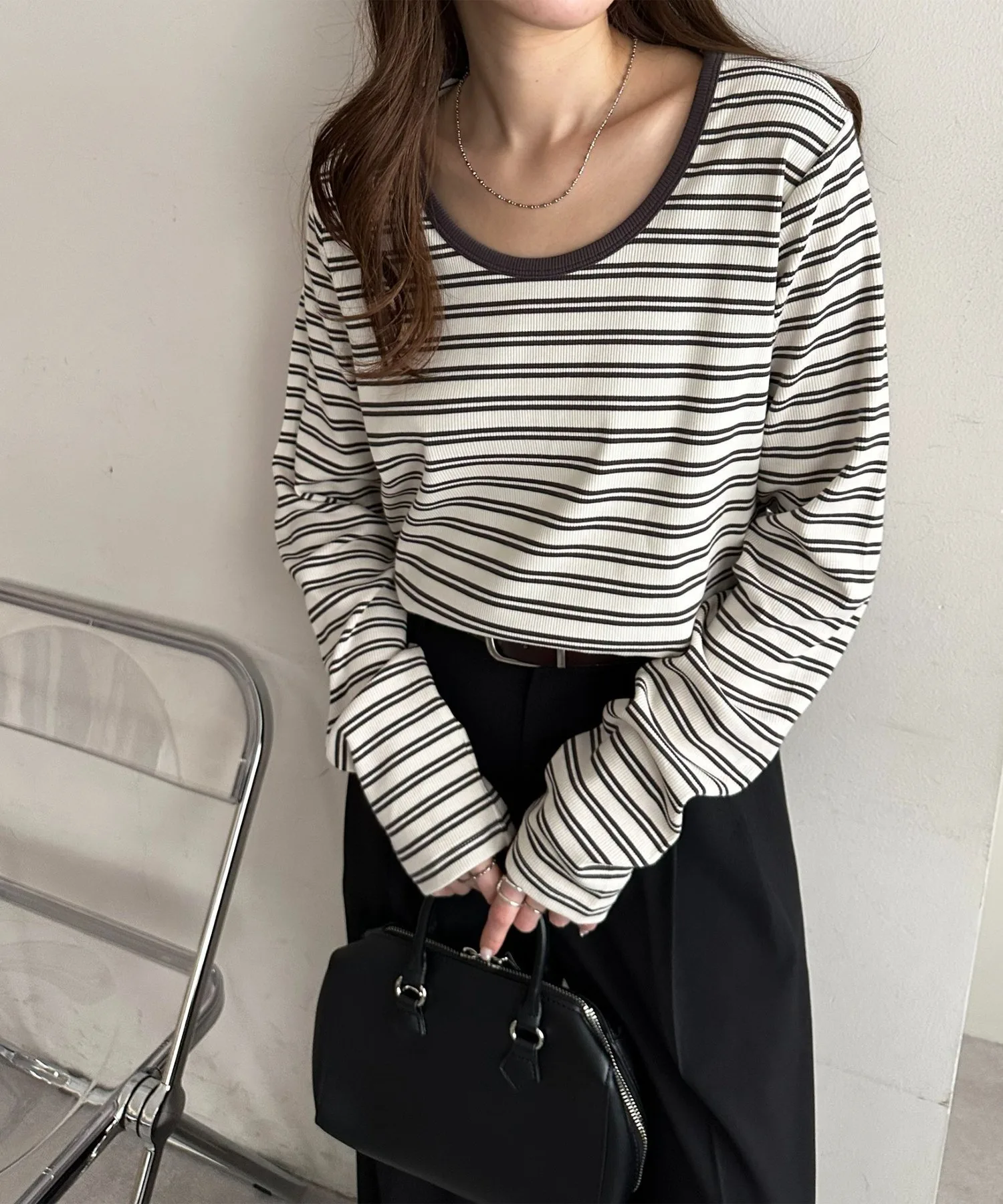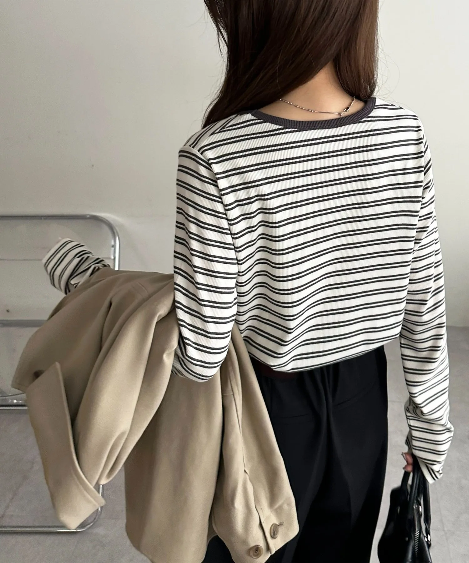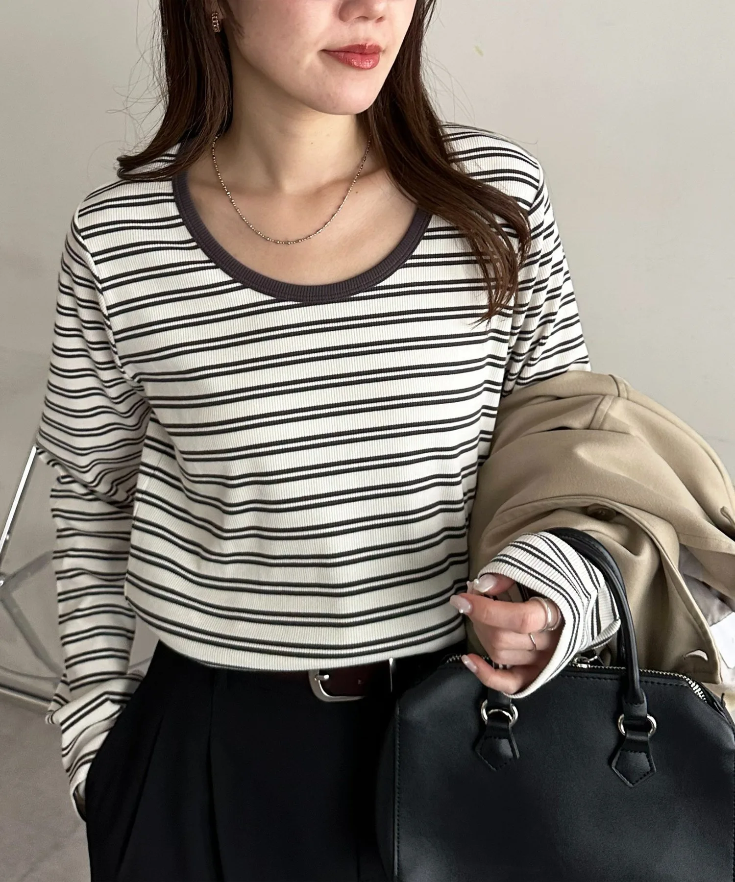 155 см: Несмотря на то, что она сделана из ребристого материала, она не слишком обтягивает, поэтому ее удобно носить весь день.◎ Это базовая вещь, поэтому вам захочется приобрести ее в разных цветах.