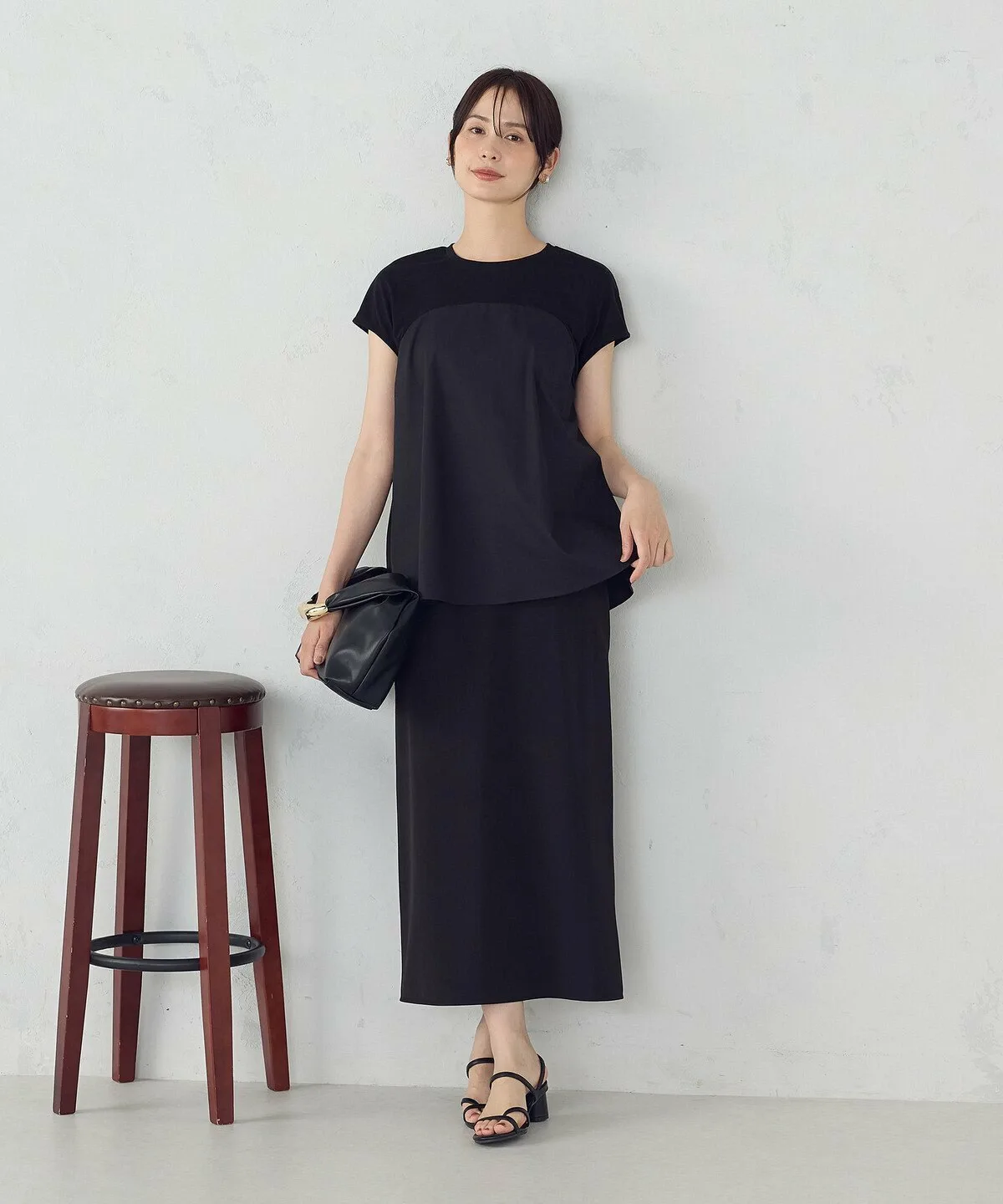 Триггерный материал обеспечивает комфортную посадку, а мягкие французские рукава, облегающие плечи, создают женственный образ.