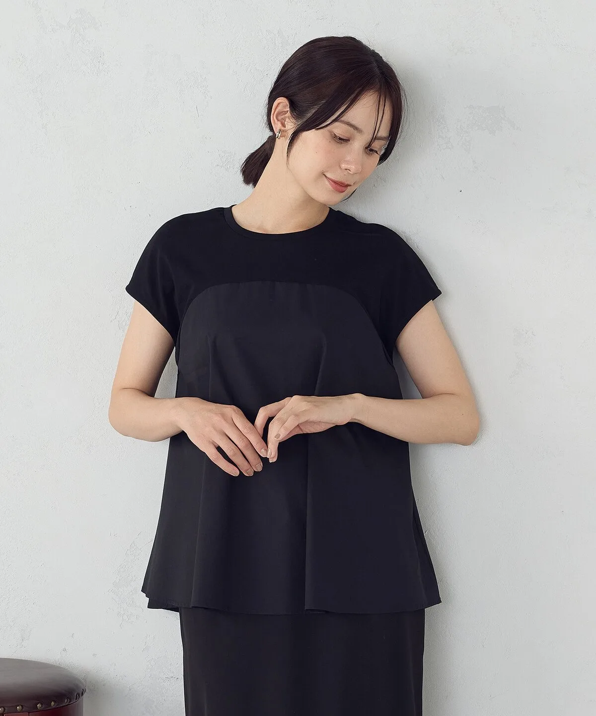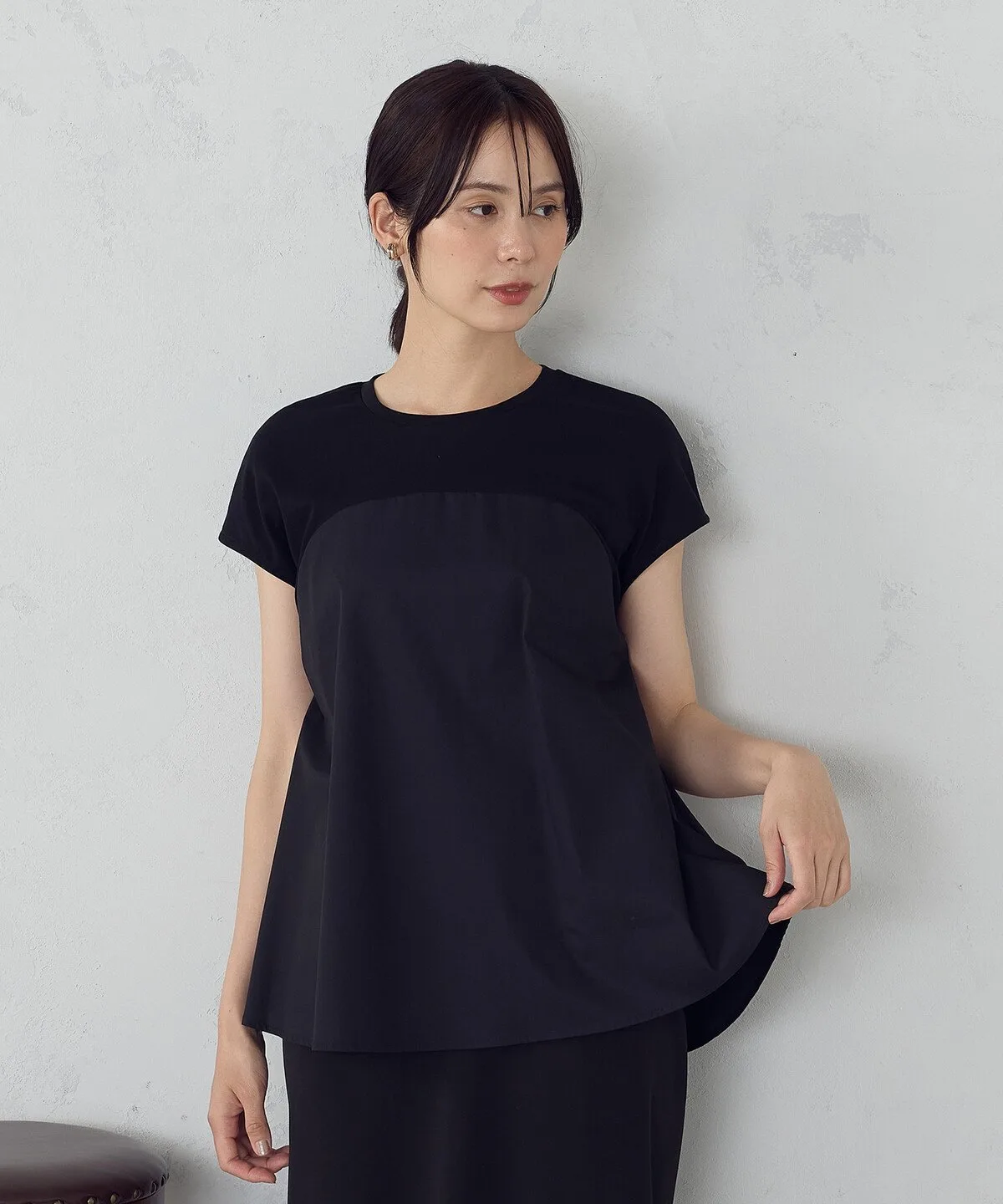 Футболка в стиле бюстье с тканым вставкой на груди.